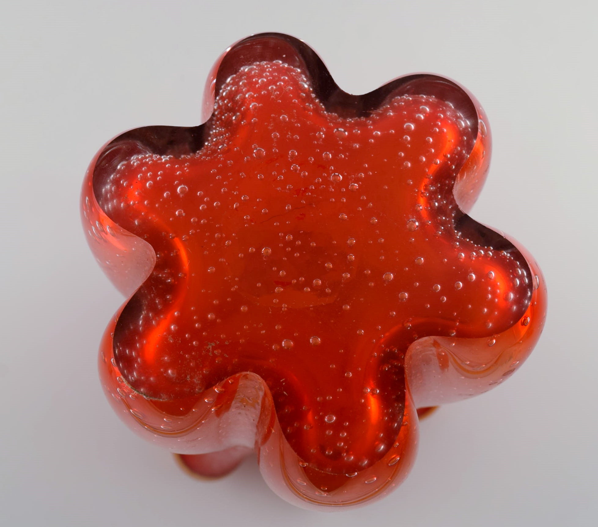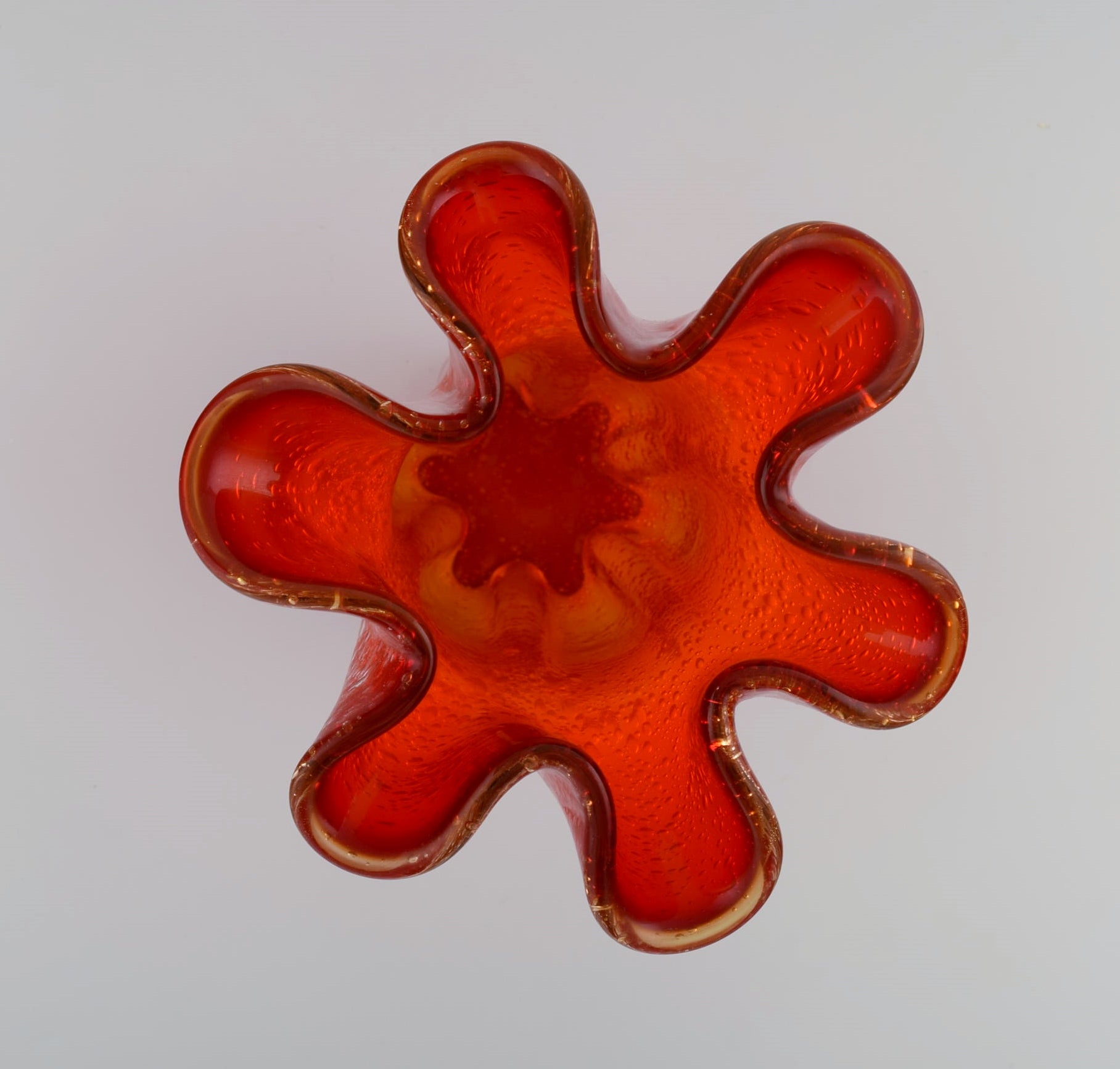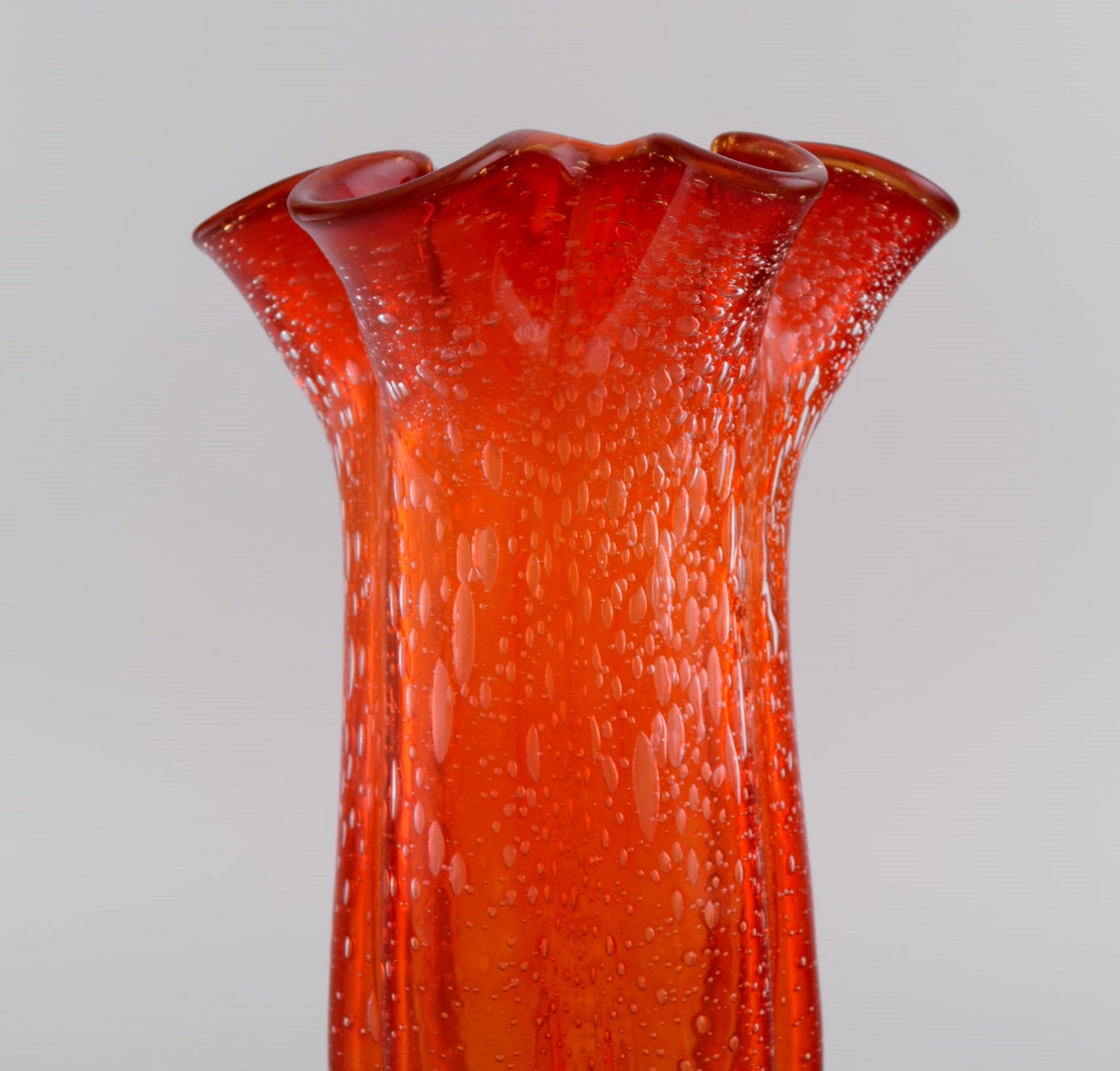 Large Murano vase in mouth blown art glass. Wavy edge and inlaid bubbles. Italian design, 1960s / 70s.