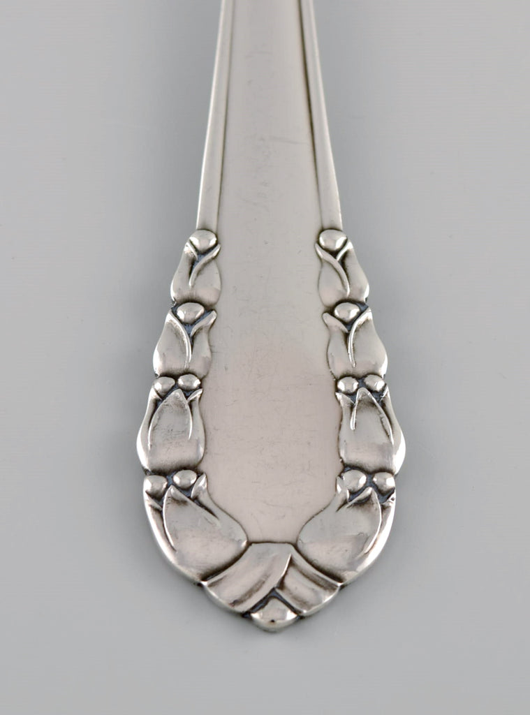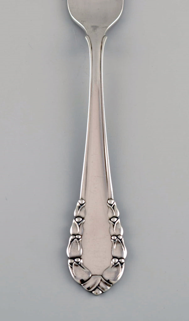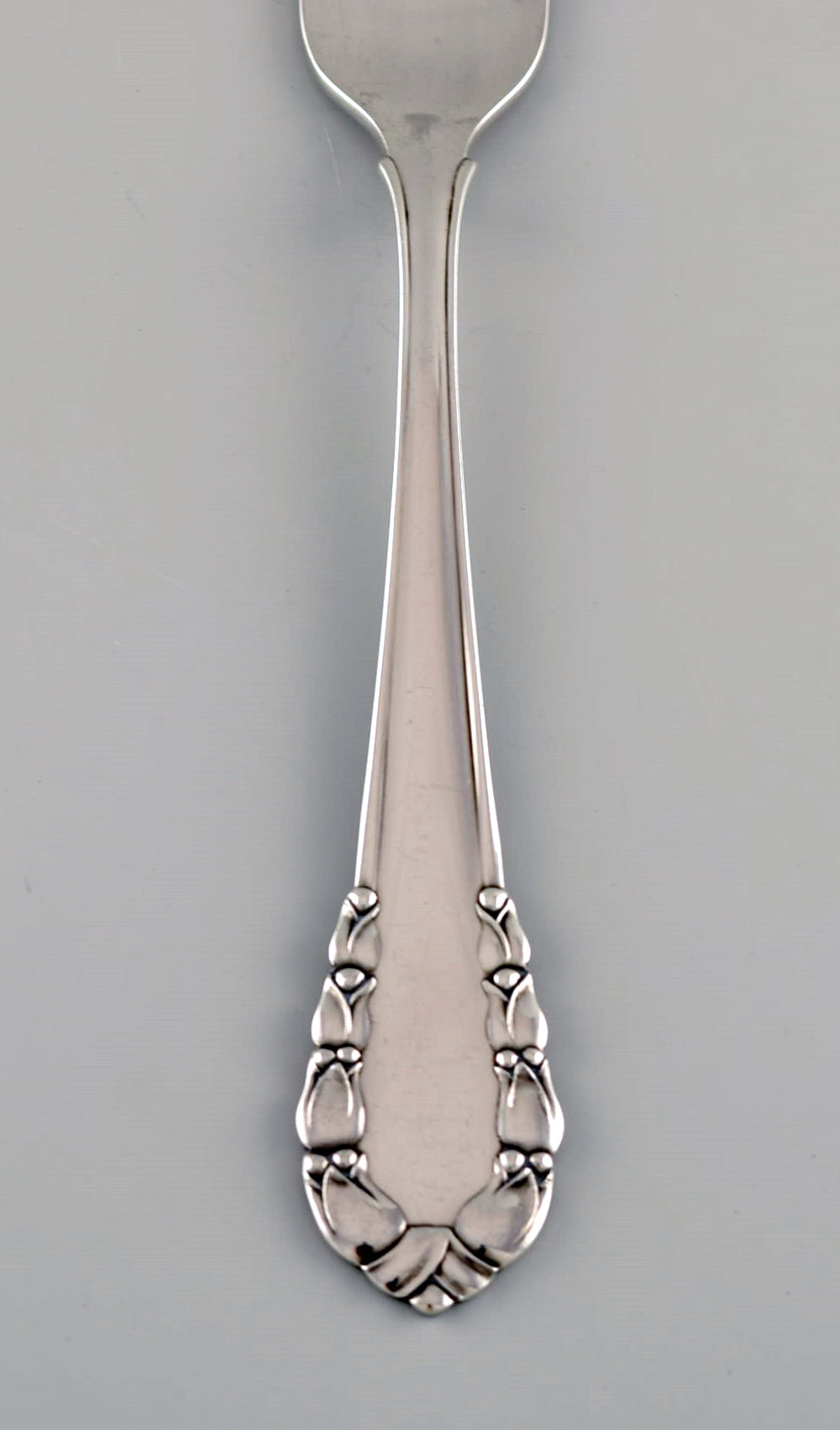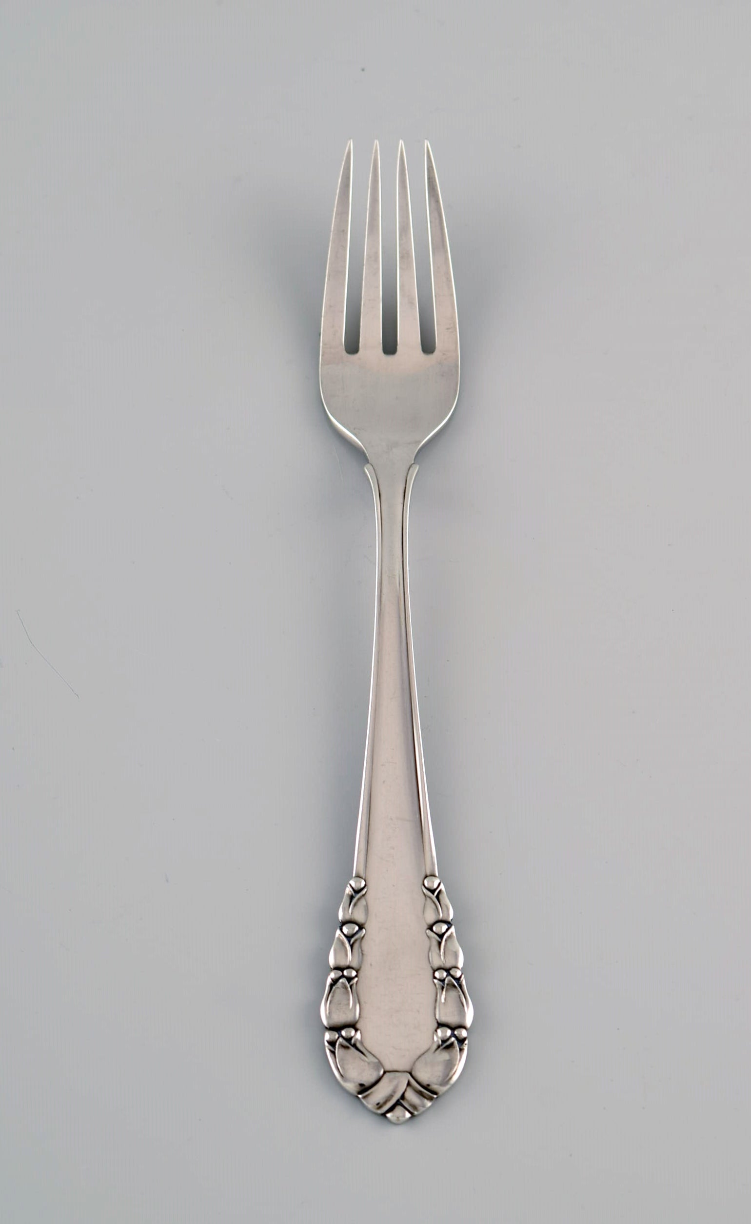 Georg Jensen Lily of the Valley lunch fork in sterling silver. Seven pieces in stock.