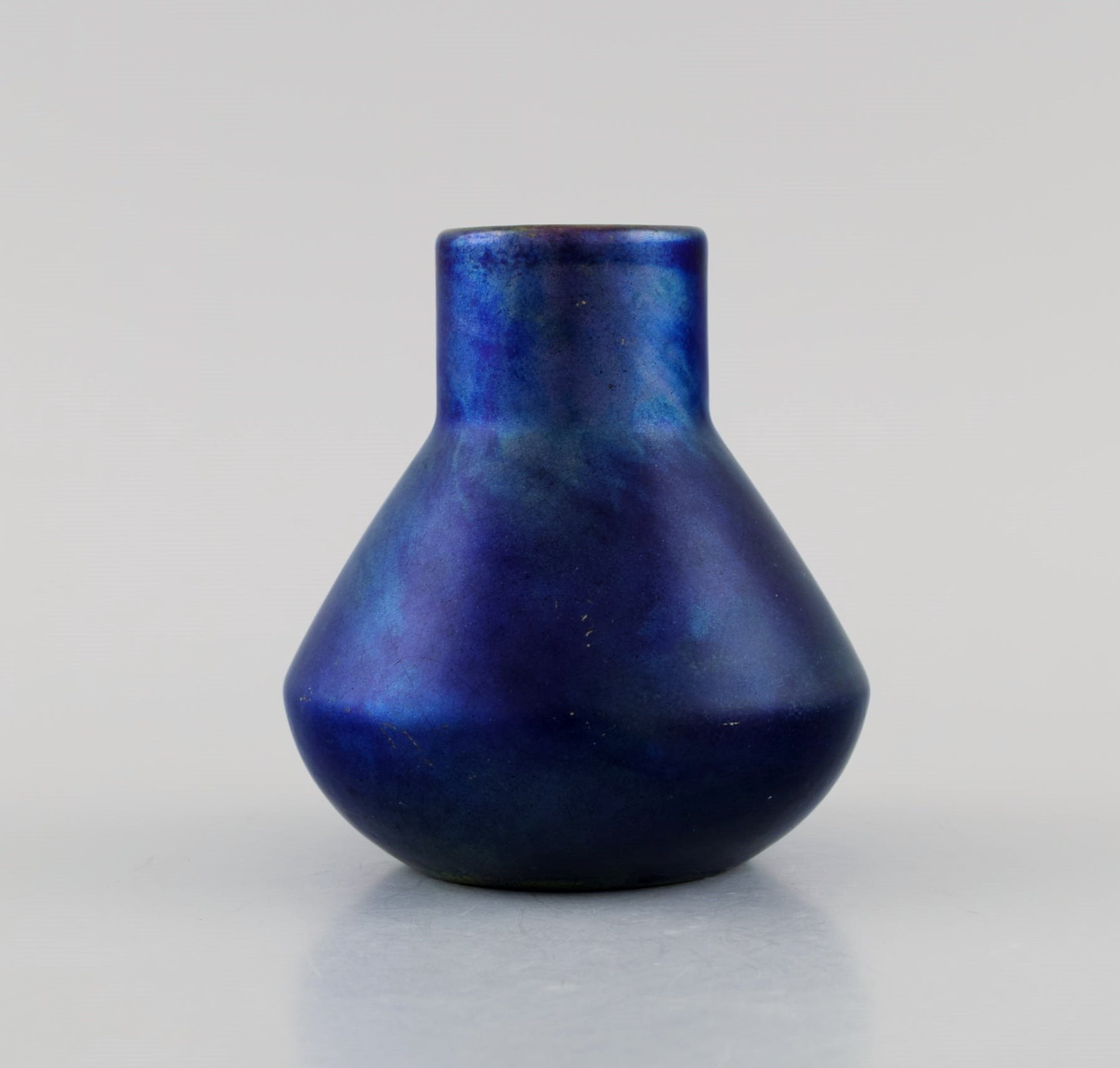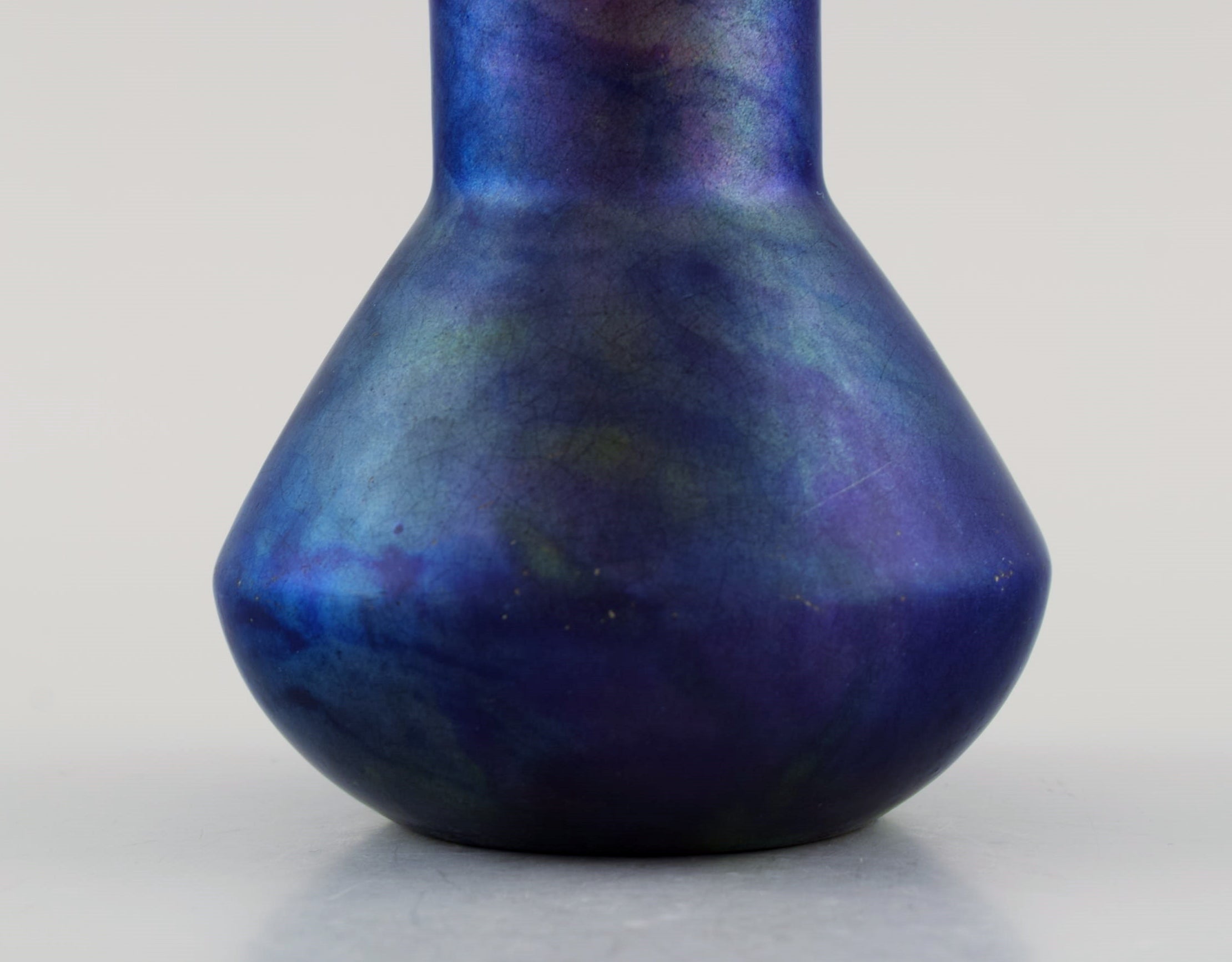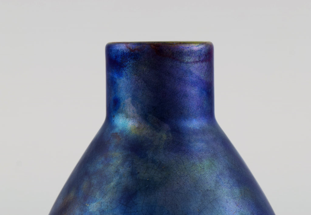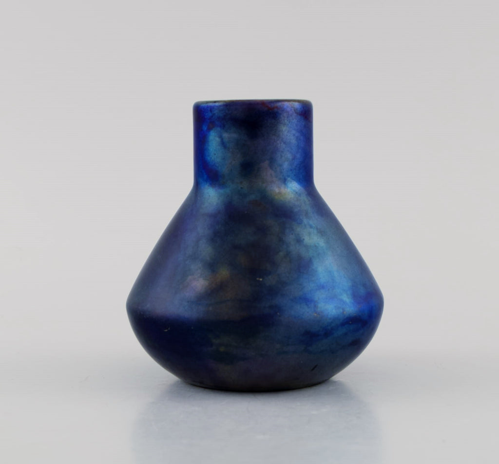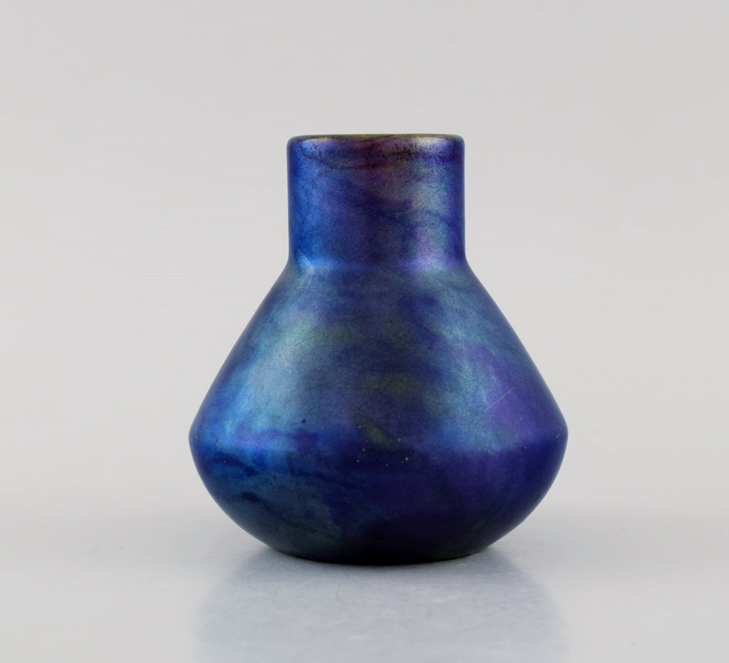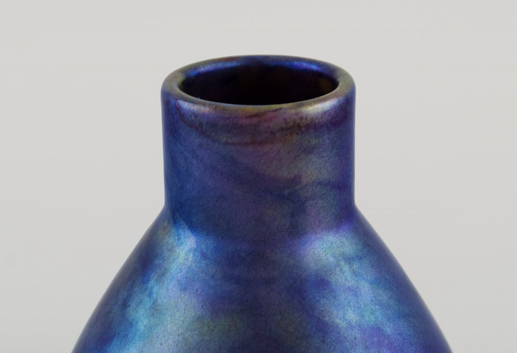 Antique and rare Zsolnay vase in glazed stoneware. Beautiful luster glaze in deep purple shades. Approx. 1900.