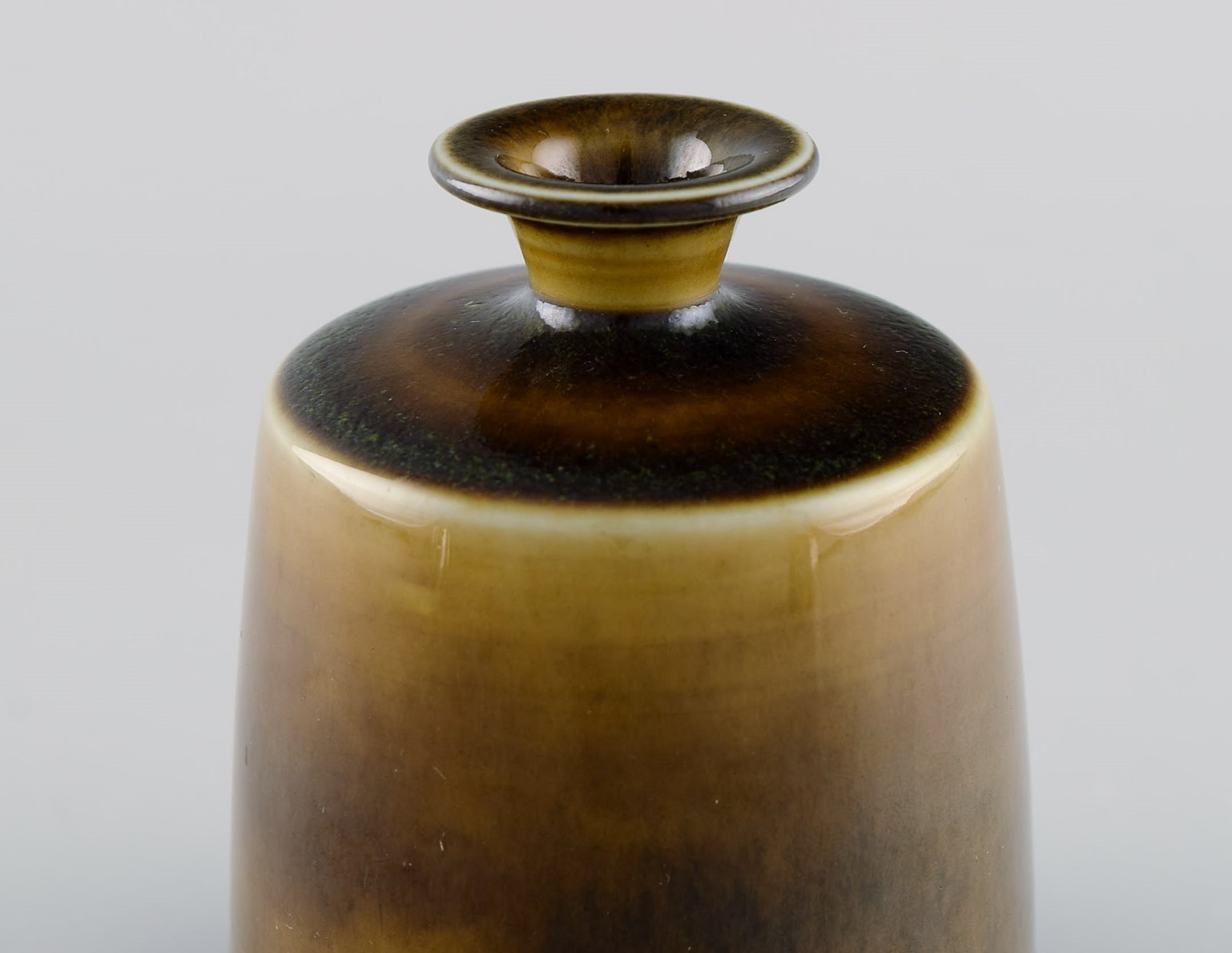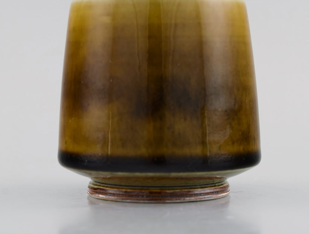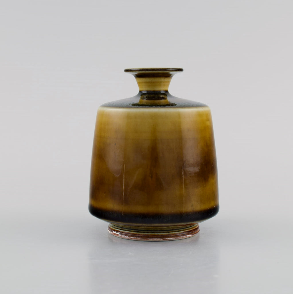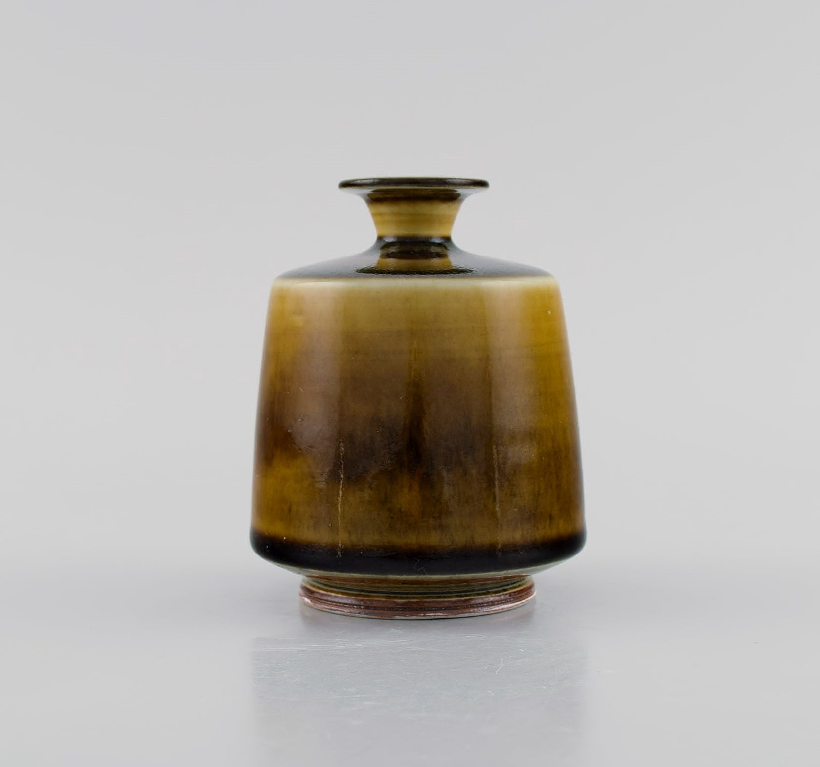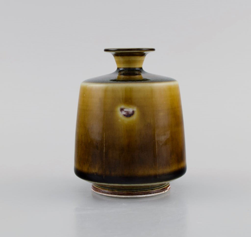 Berndt Friberg (1899-1981) for Gustavsberg Studiohand. Vase in glazed ceramics. Beautiful glaze in light hazel shades. Dated 1971.