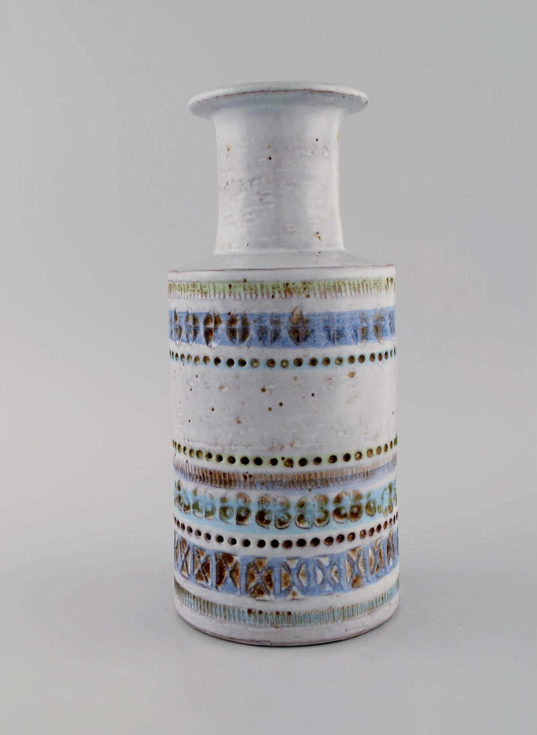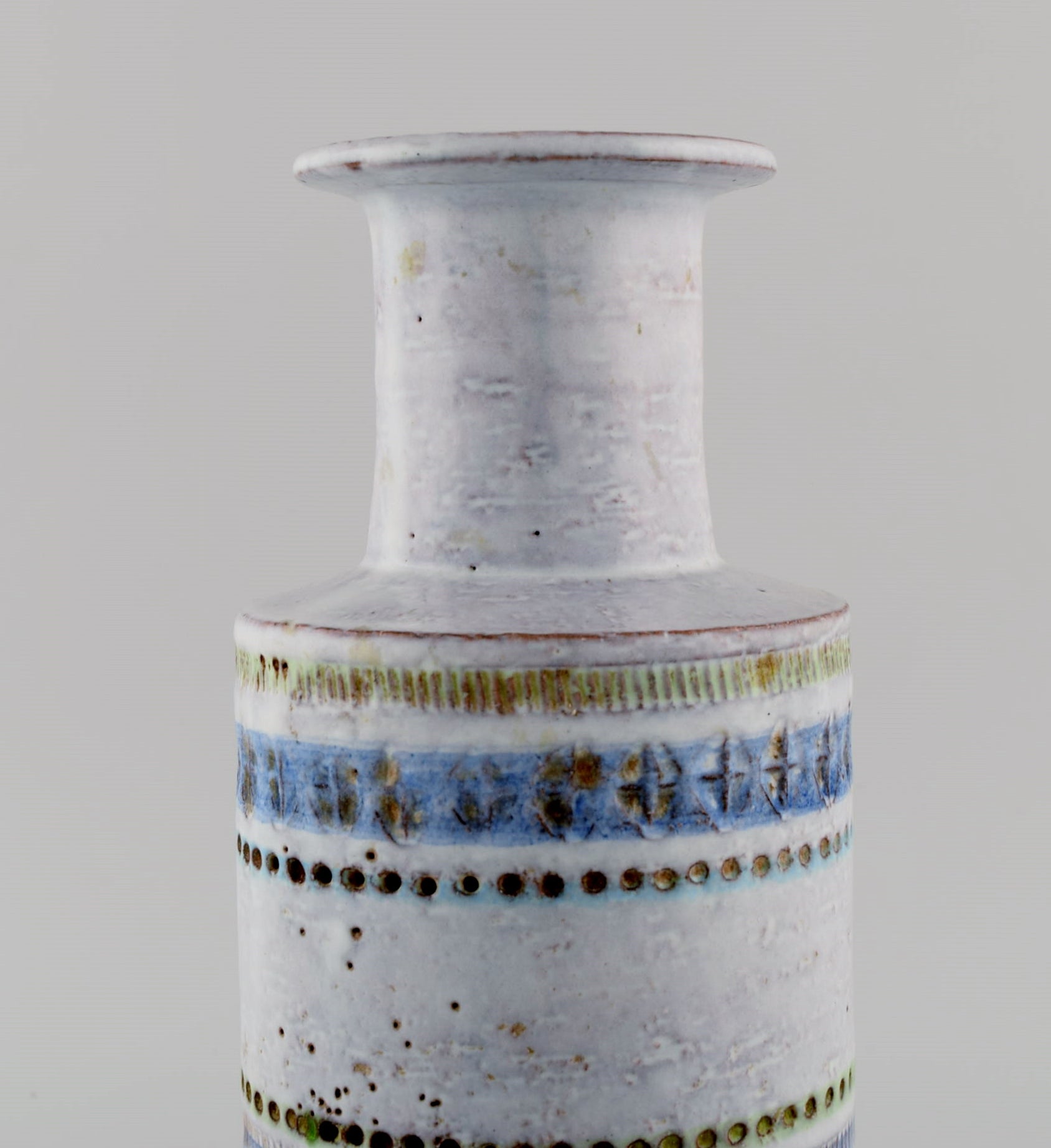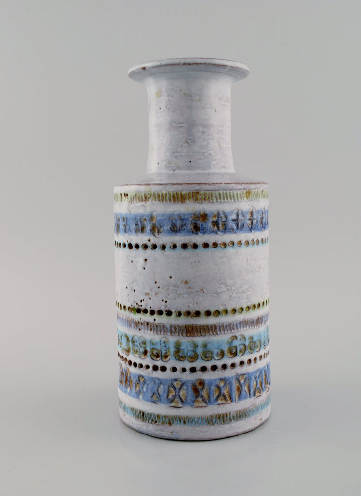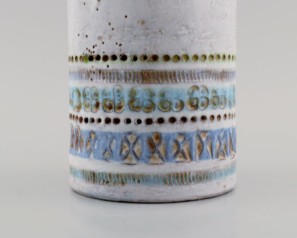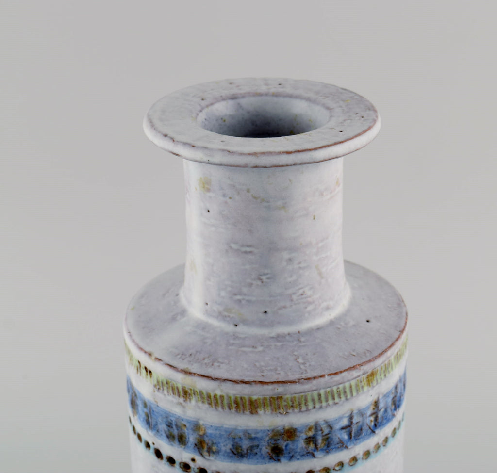 Upsala-Ekeby vase in glazed ceramics. Beautiful glaze in light blue shades. Striped design. Mid-20th century.