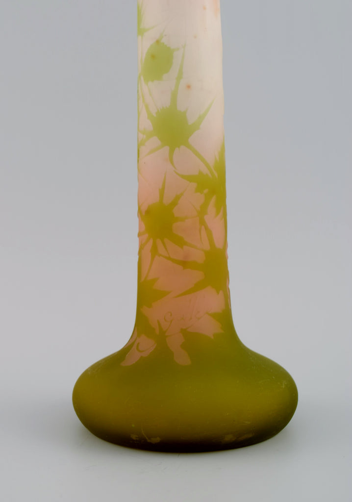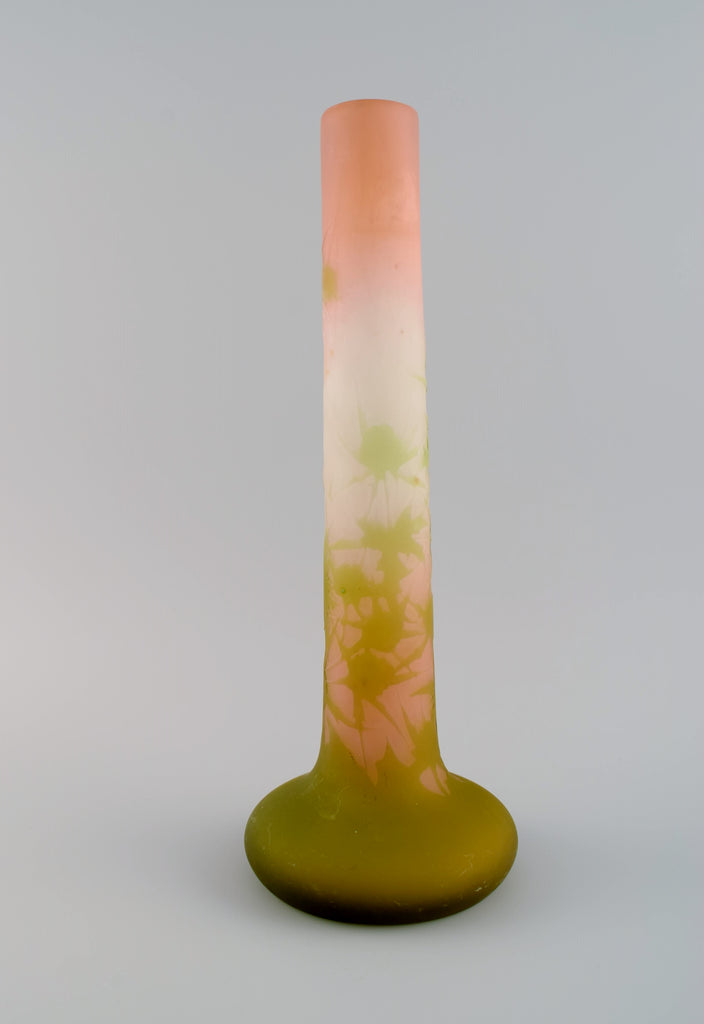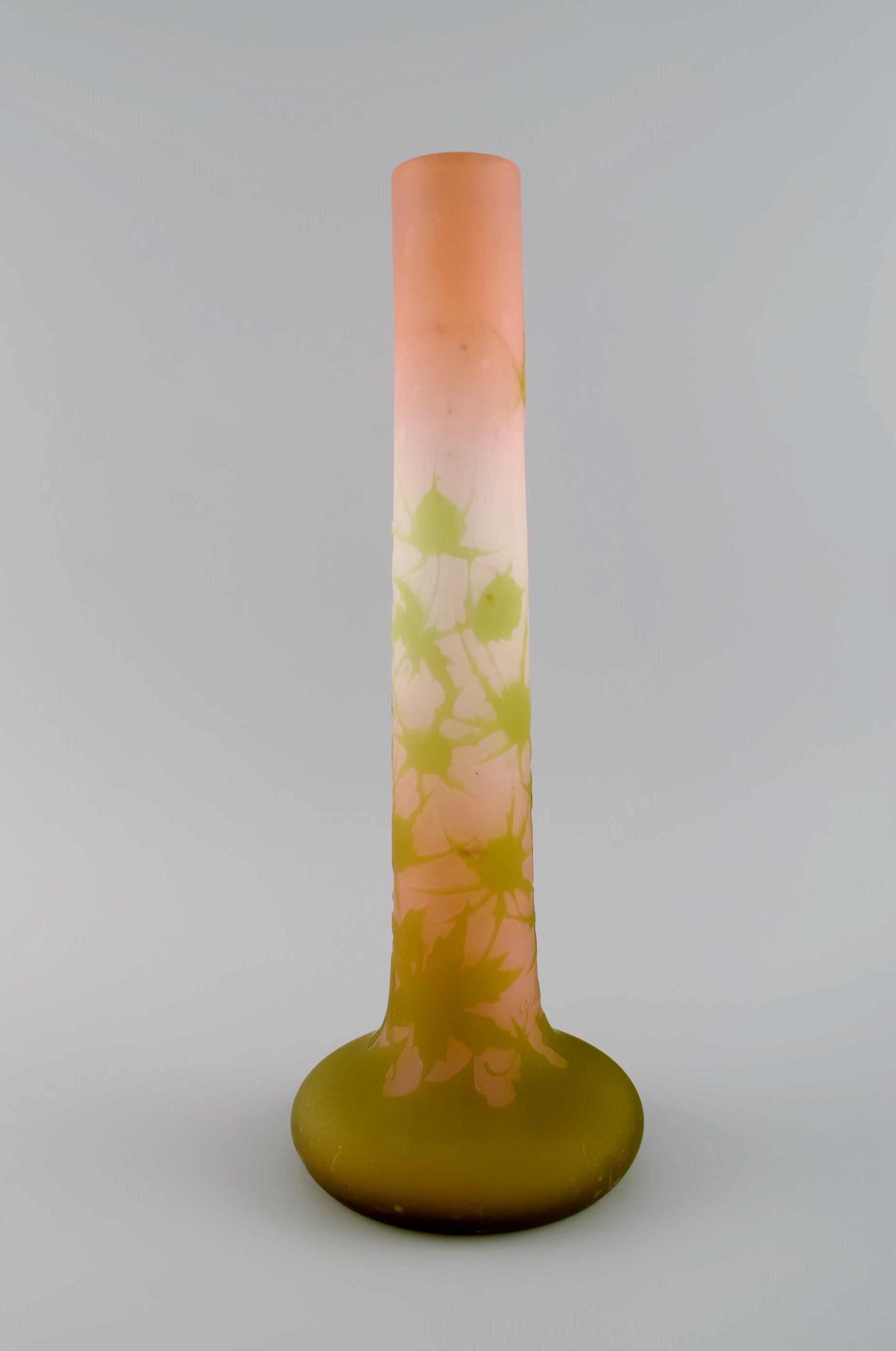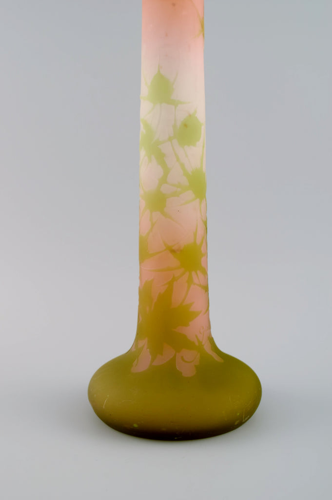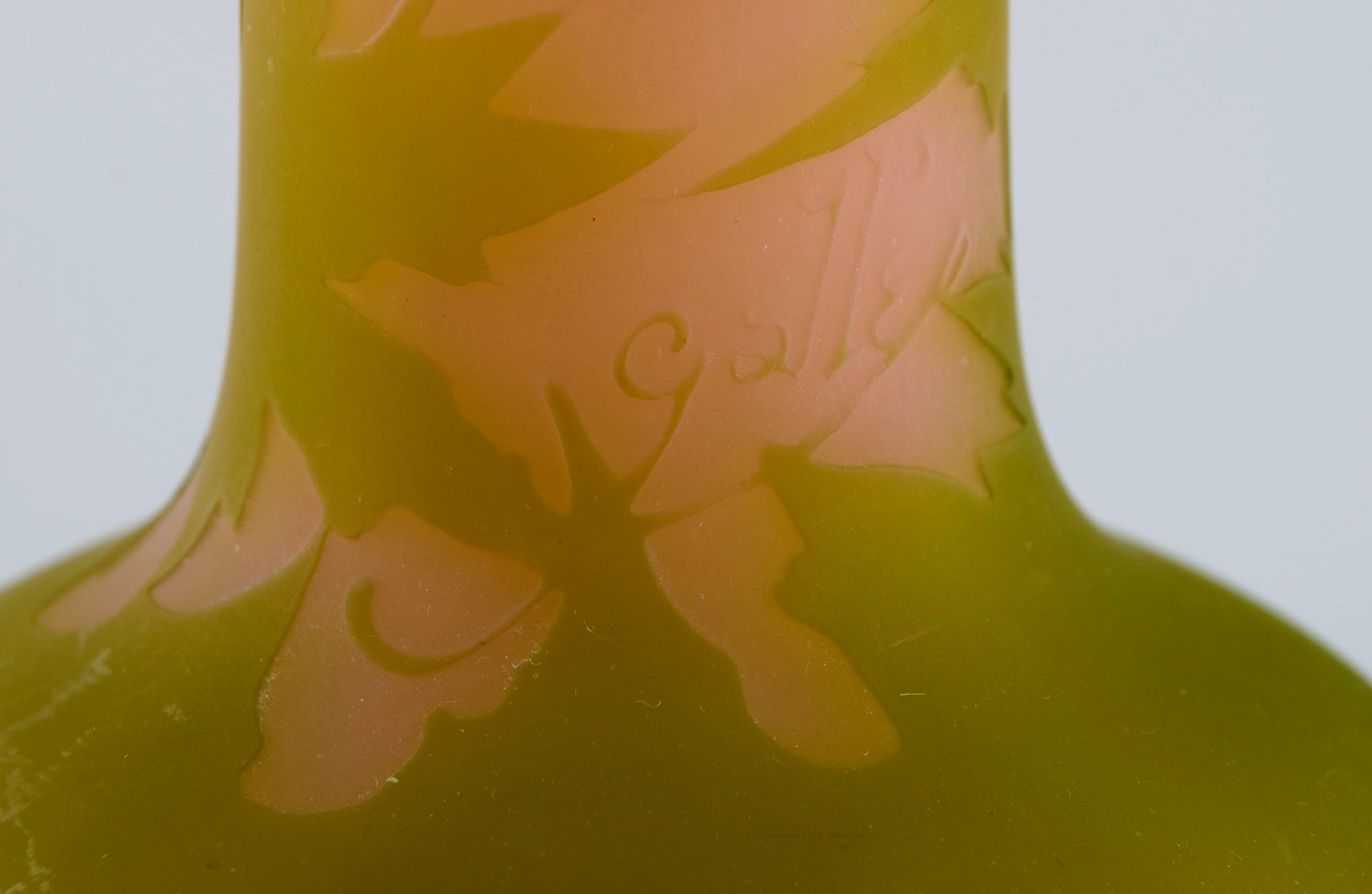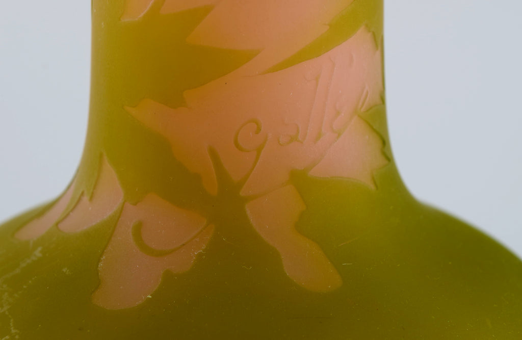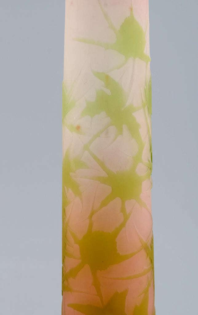 Émile Gallé (1846-1904), France. Vase in frosted and light green art glass carved in the form of foliage. Approx. 1900.