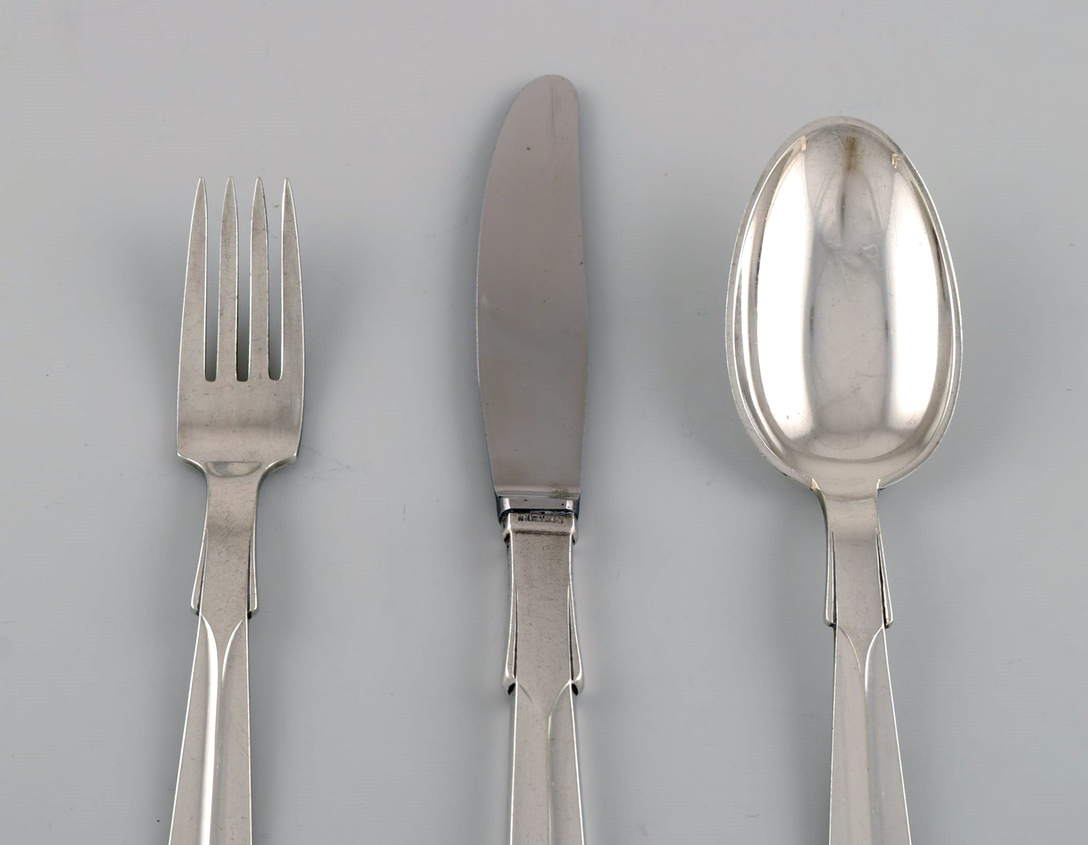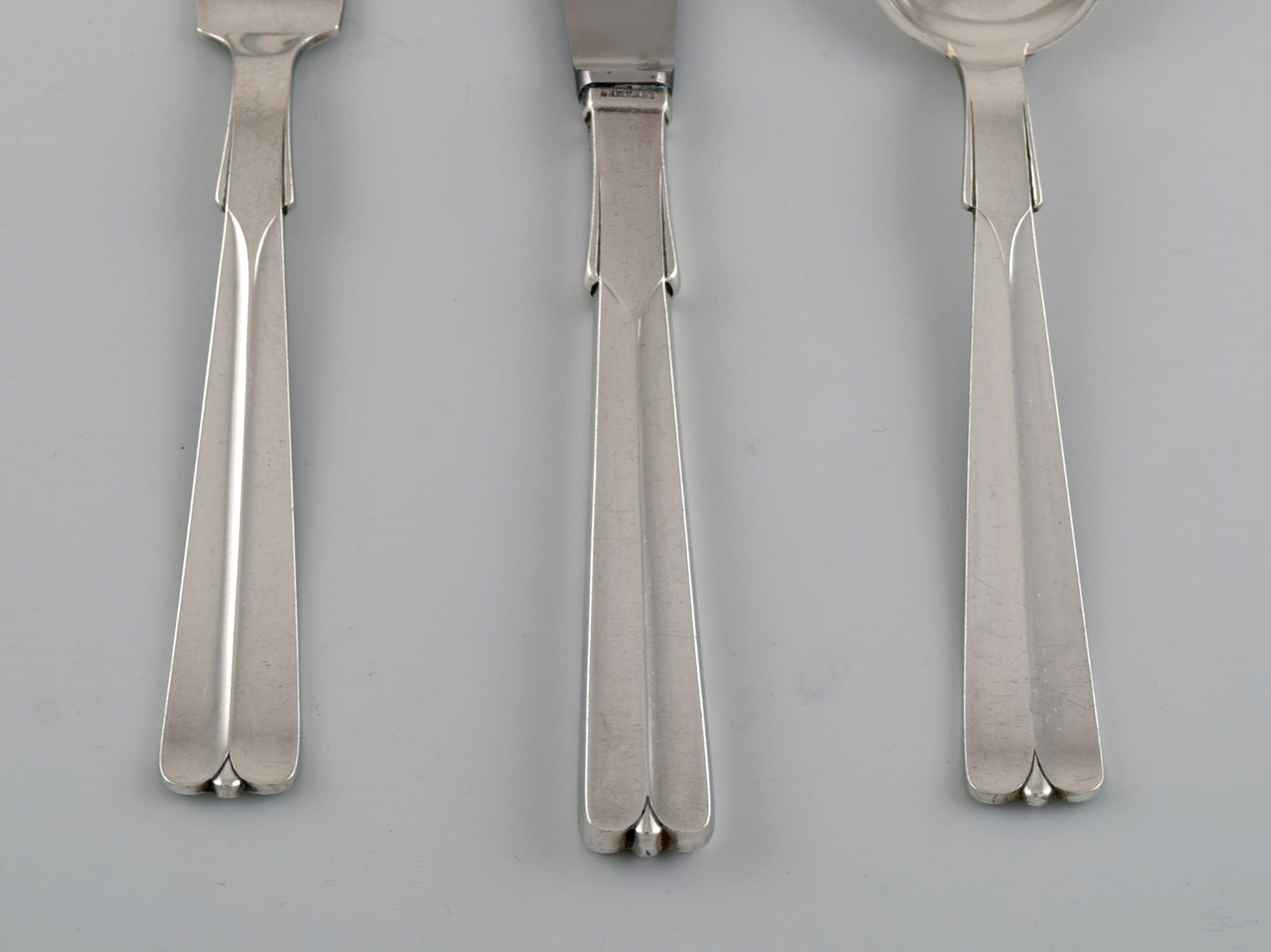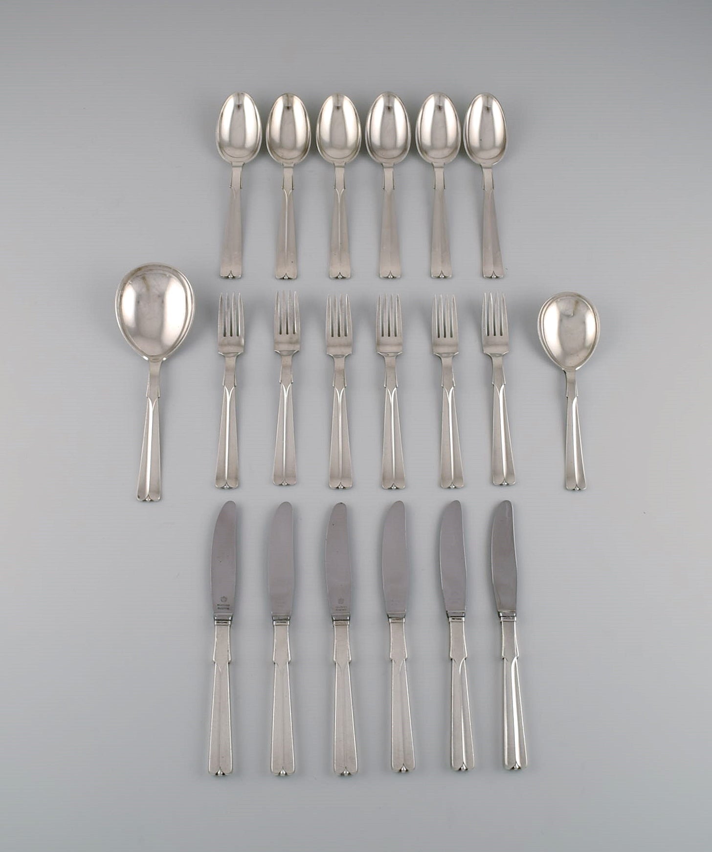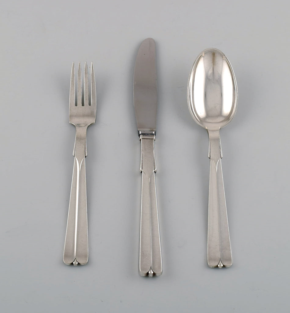 Hans Hansen silverware no. 7. Art deco dinner service in silver (830) for six people. 1930s.