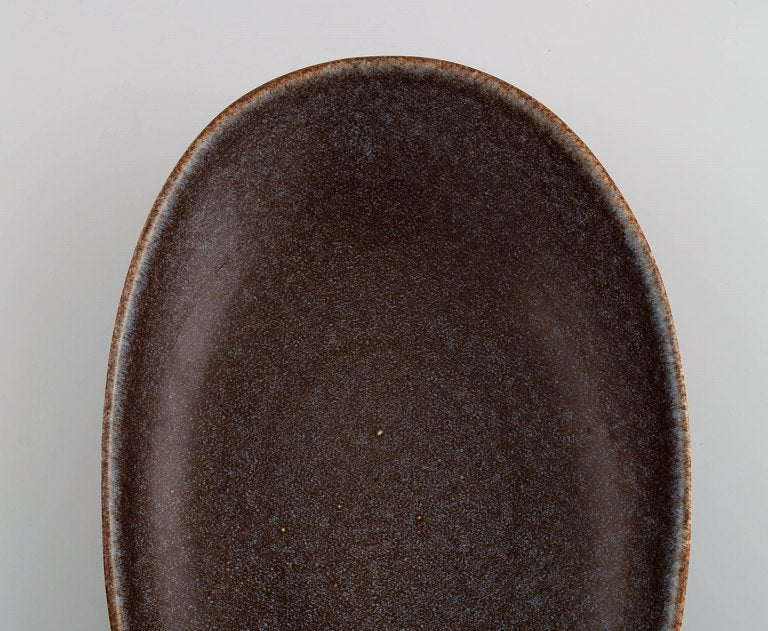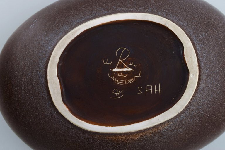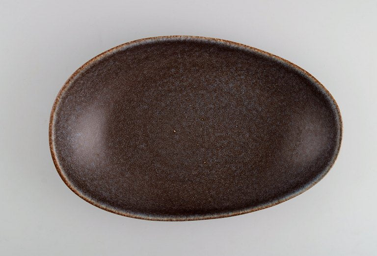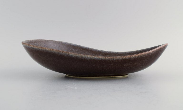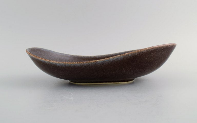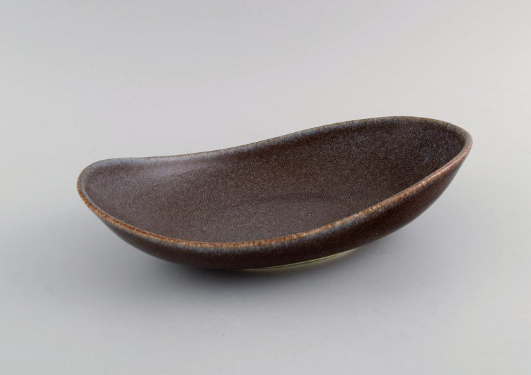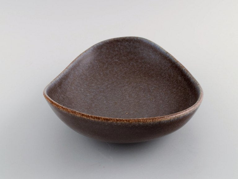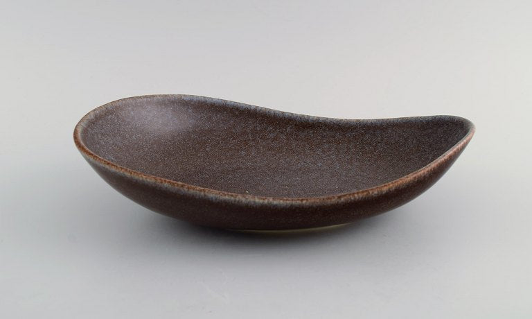 Carl Harry Stålhane (1920-1990) for Rörstrand. Organically shaped bowl in glazed ceramics. Beautiful speckled glaze. Mid-20th century.