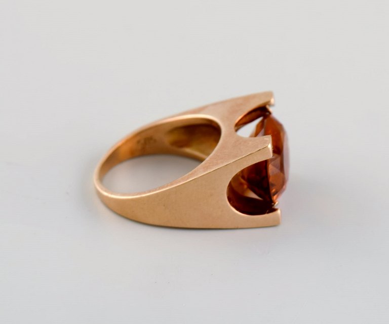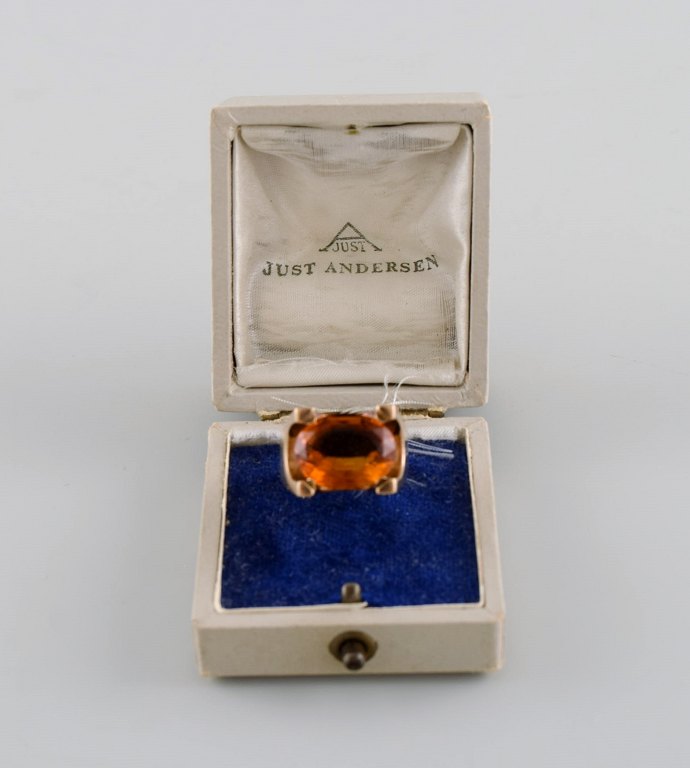 Just Andersen (1884-1943), Denmark. Art deco cocktail ring in 14 carat gold adorned with citrine. Original box. 1920/30s.