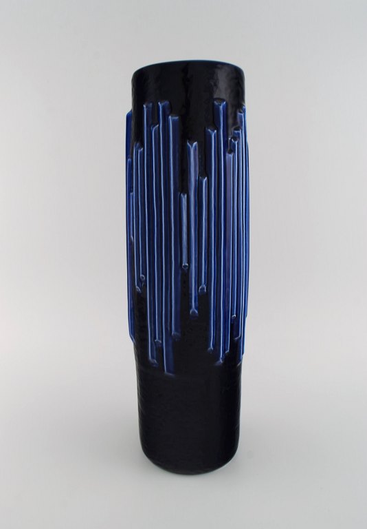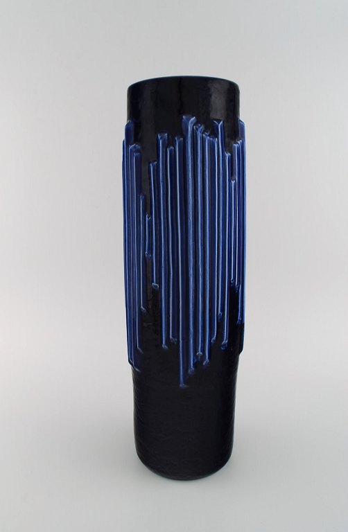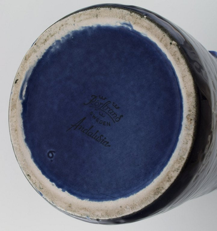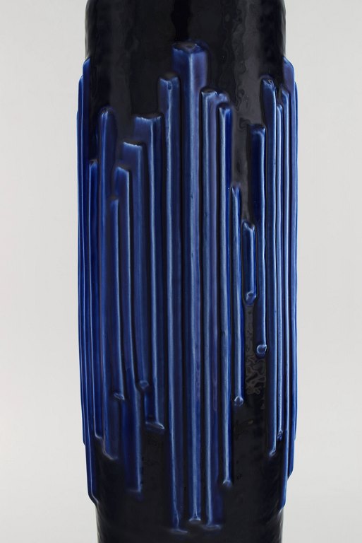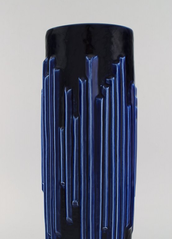Carl Harry Stålhane (1920-1990) for Rörstrand. Large Andalusia vase in glazed ceramics. Beautiful glaze in deep blue shades. 1960s.