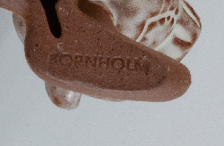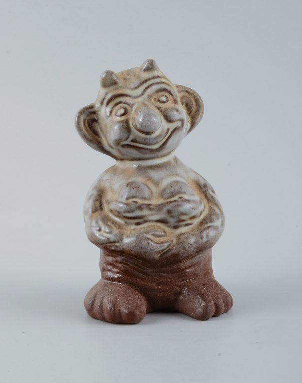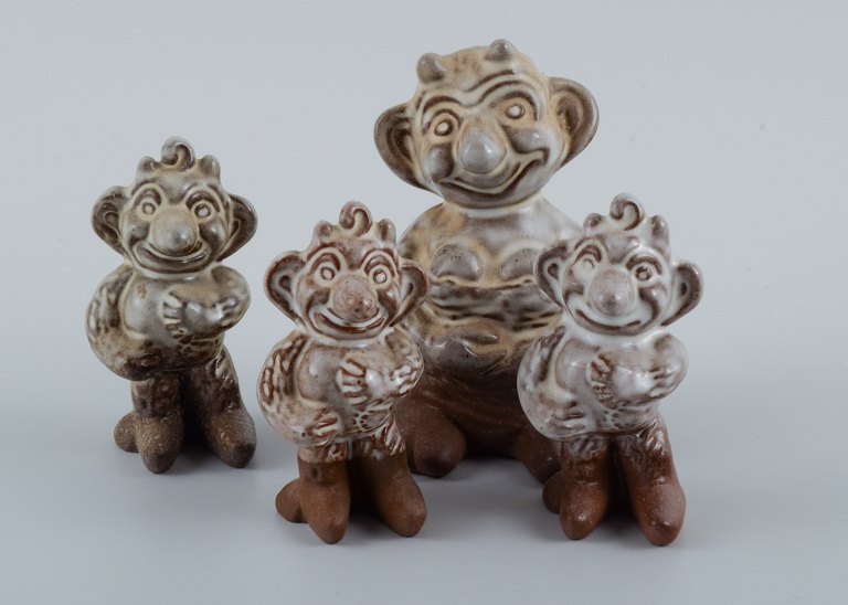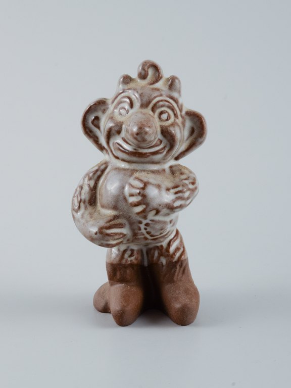 Michael Andersen Ceramics from Bornholm. Three hand-painted figures. Designed by Ludvig Mahler. "Krøllebølle"-family.