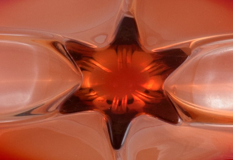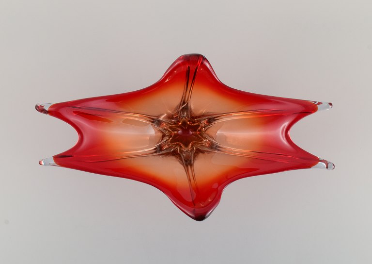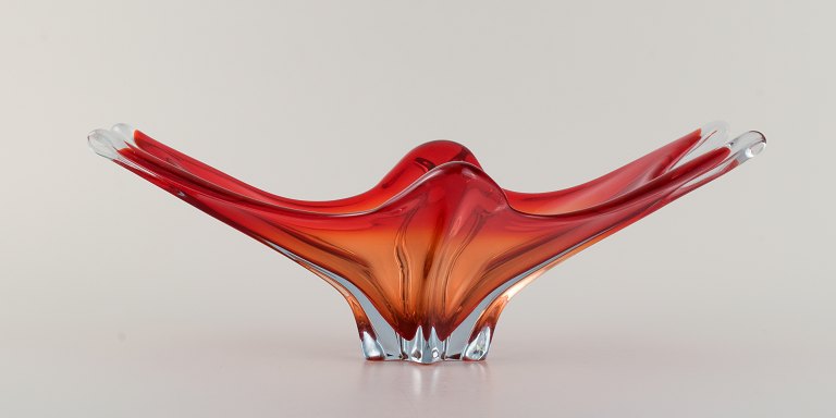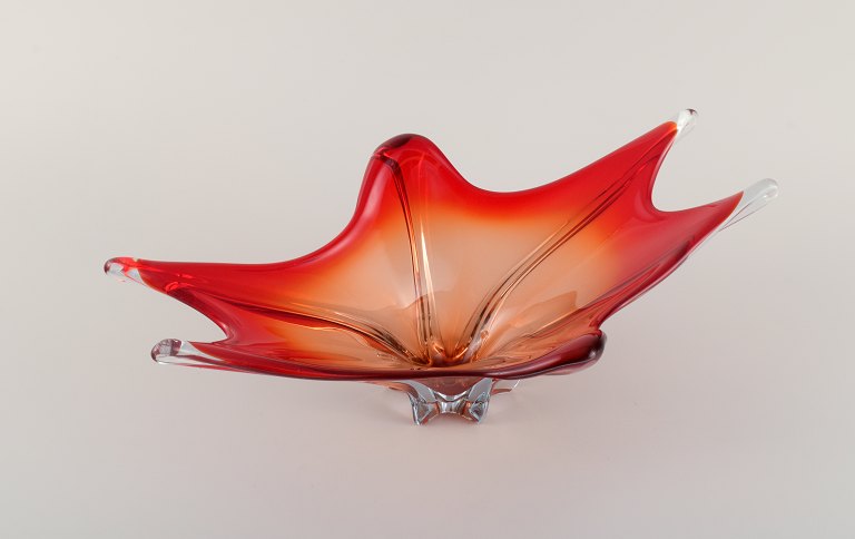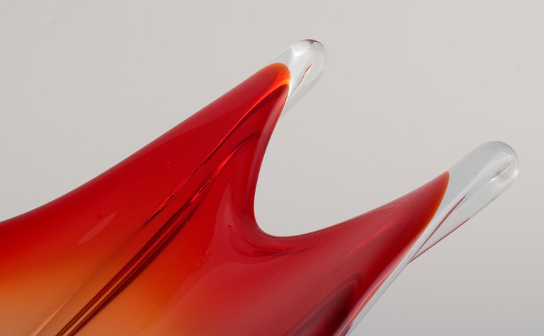 Large Murano bowl in reddish and clear mouth blown art glass. 1960s/70s.
