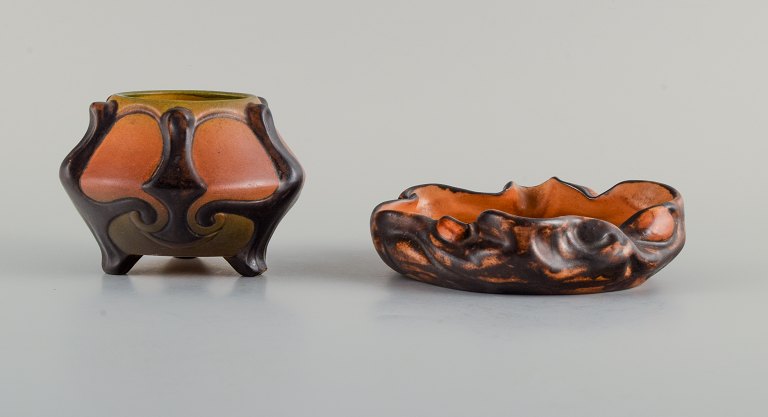 Ipsens Denmark. Two Art Nouveau bowls in hand-painted glazed ceramic.