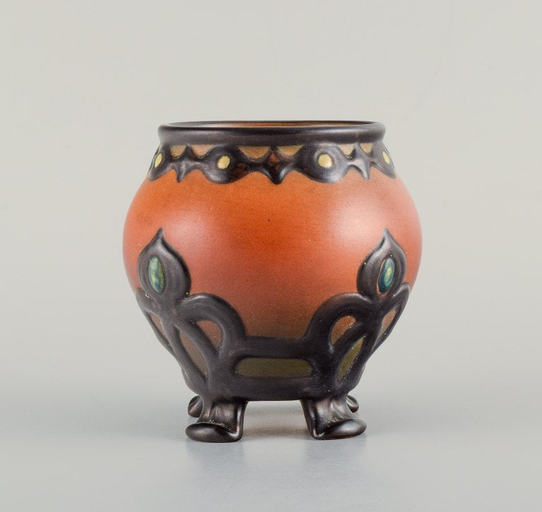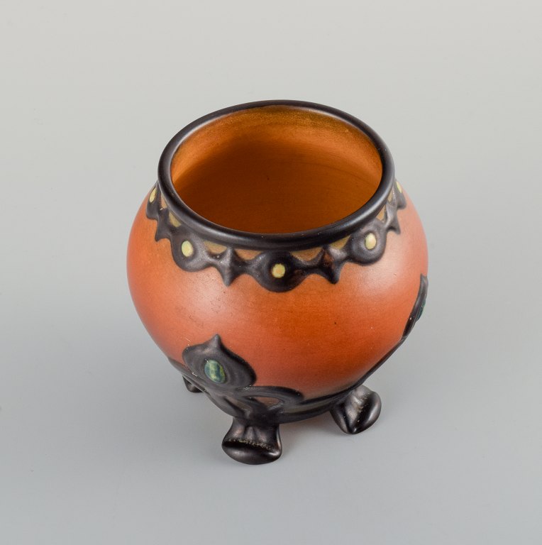 Ipsens Denmark. Art Nouveau jar in hand-painted glazed ceramic.
