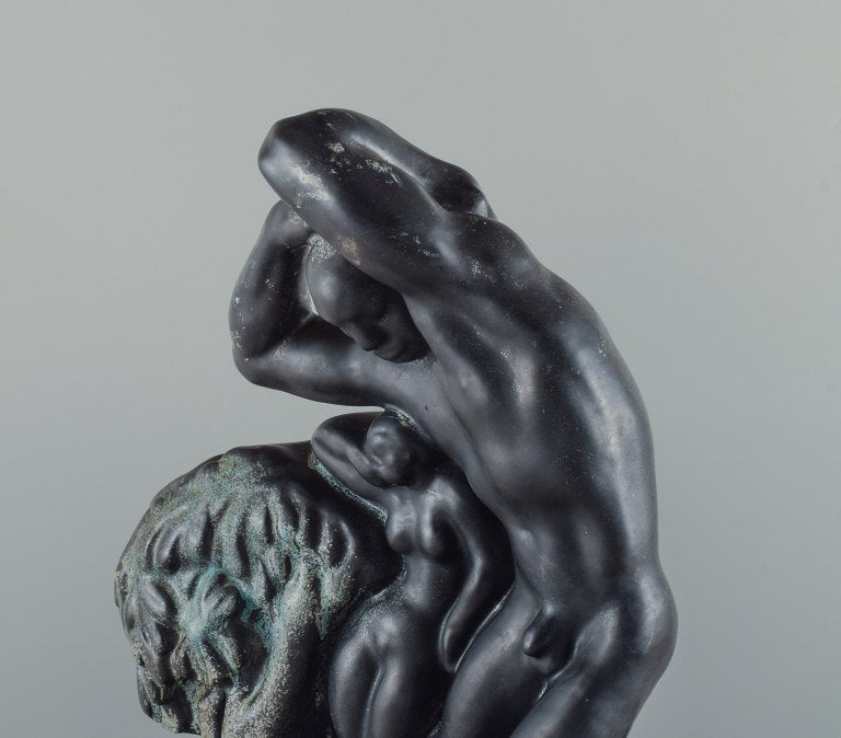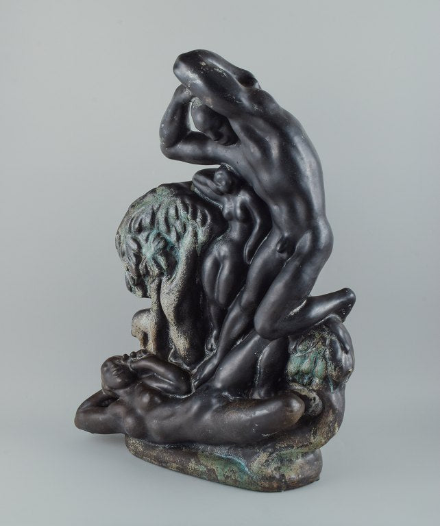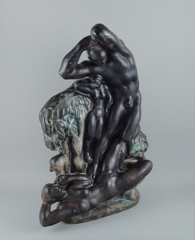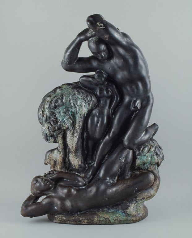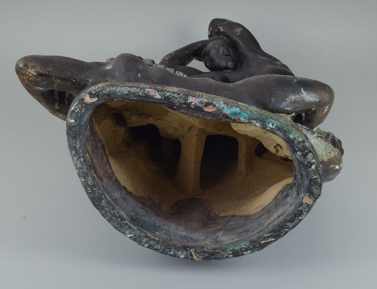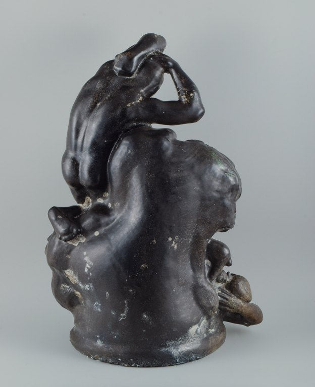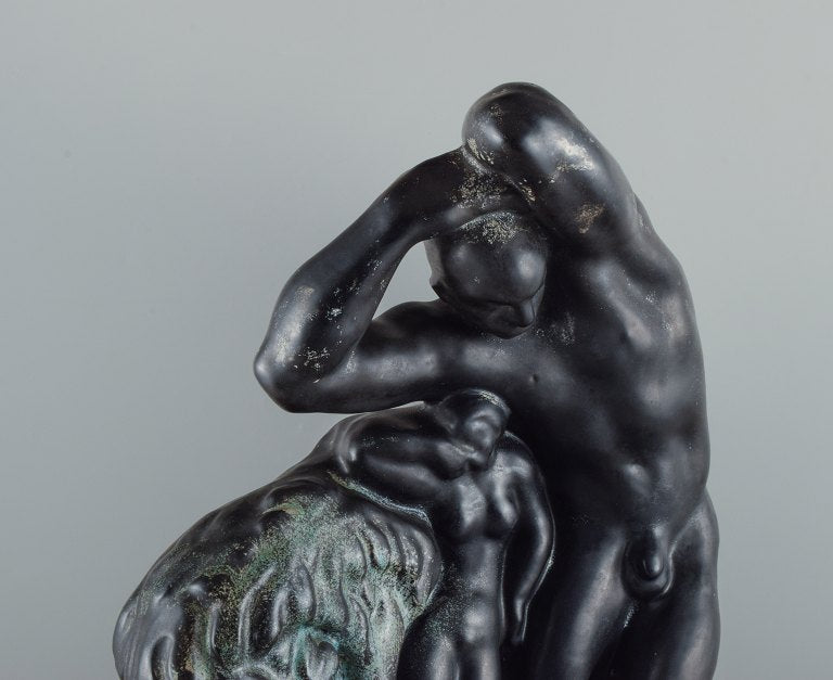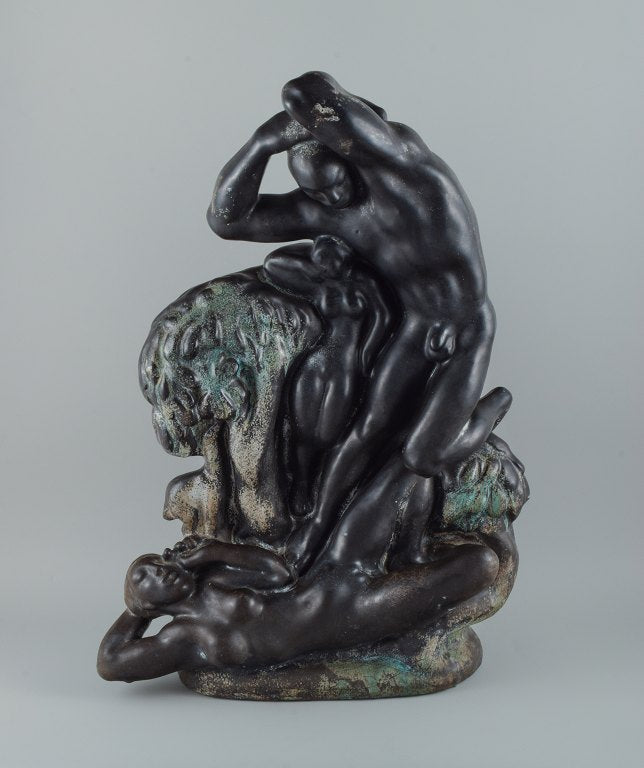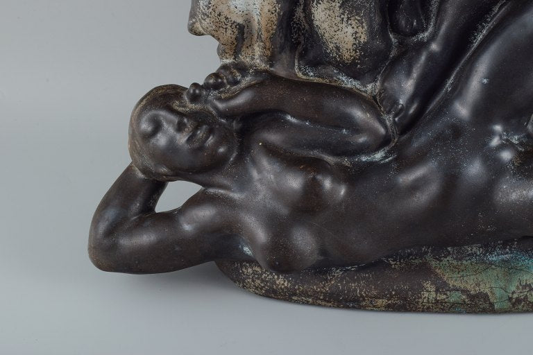 Unique Kai Nielsen for Kähler "Zeus and Io". Colossal sculpture group of ceramic, decorated with turquoise, green and black double glaze.