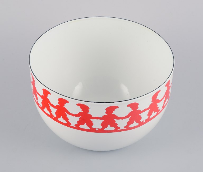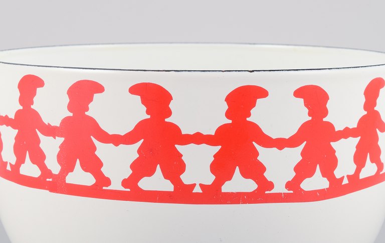 Kaj Franck, for Arabia, Finland, "Tonttu" enamelled metal bowl, decorated with dancing gnomes.