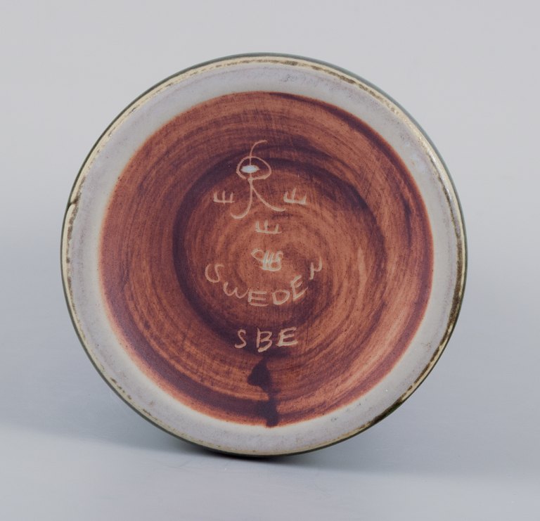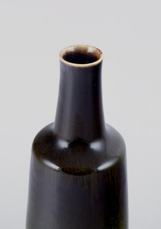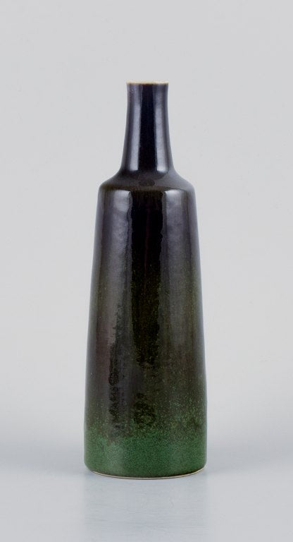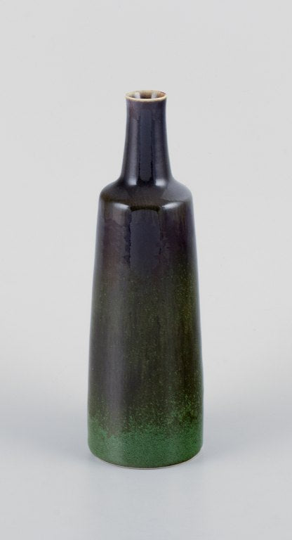 Carl Harry Stålhane for Rörstrand, bottle-shaped ceramic vase decorated in shades of green.
