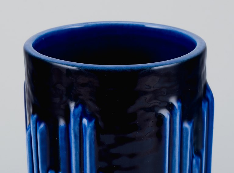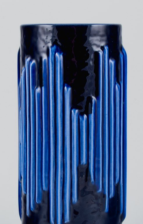Carl Harry Stålhane (1920-1990) for Rörstrand. Large Andalusia vase in glazed ceramics. Beautiful glaze in deep blue tones.