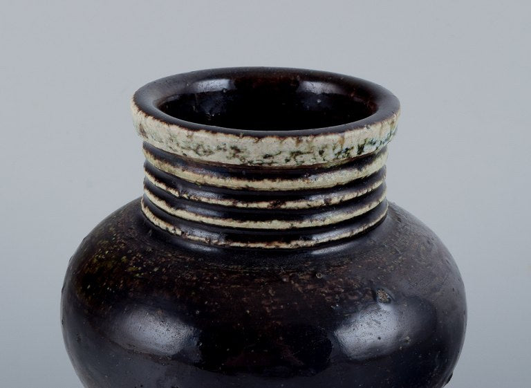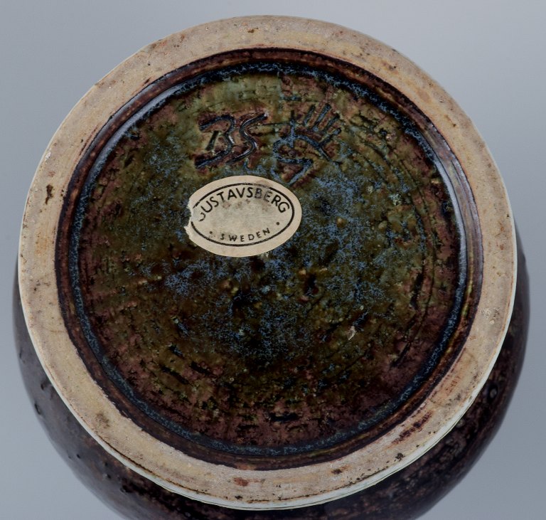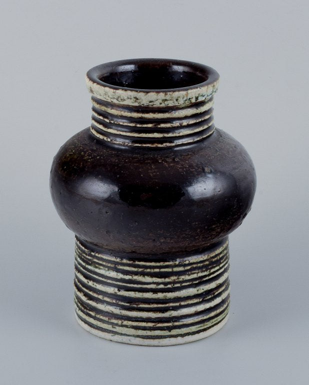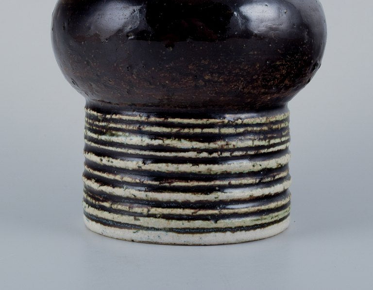 Britt-Louise Sundell (1928-2011) for Gustavsberg Studiohand, Sweden, ceramic vase in dark brown and sand-colored glaze.
