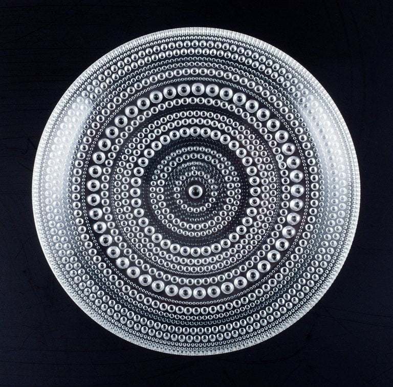 Oiva Toikka for Arabia. A set of twelve Kastehelmi plates in clear glass.