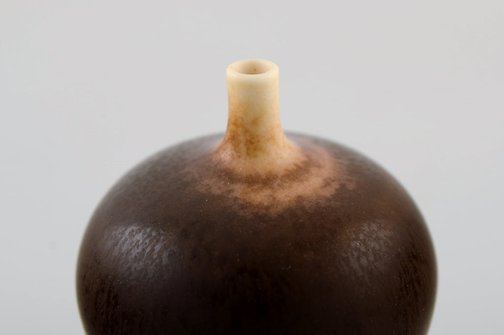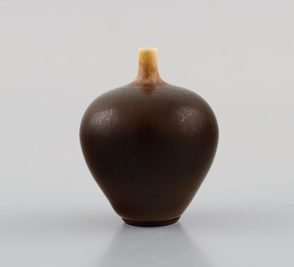 Berndt Friberg (1899-1981) for Gustavsberg Studiohand. Miniature vase in glazed ceramics. Beautiful glaze in brown shades. 1960s / 70s.