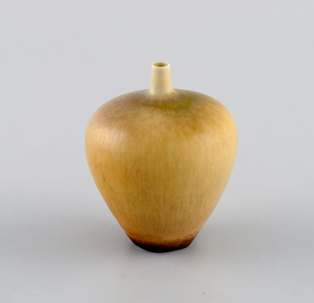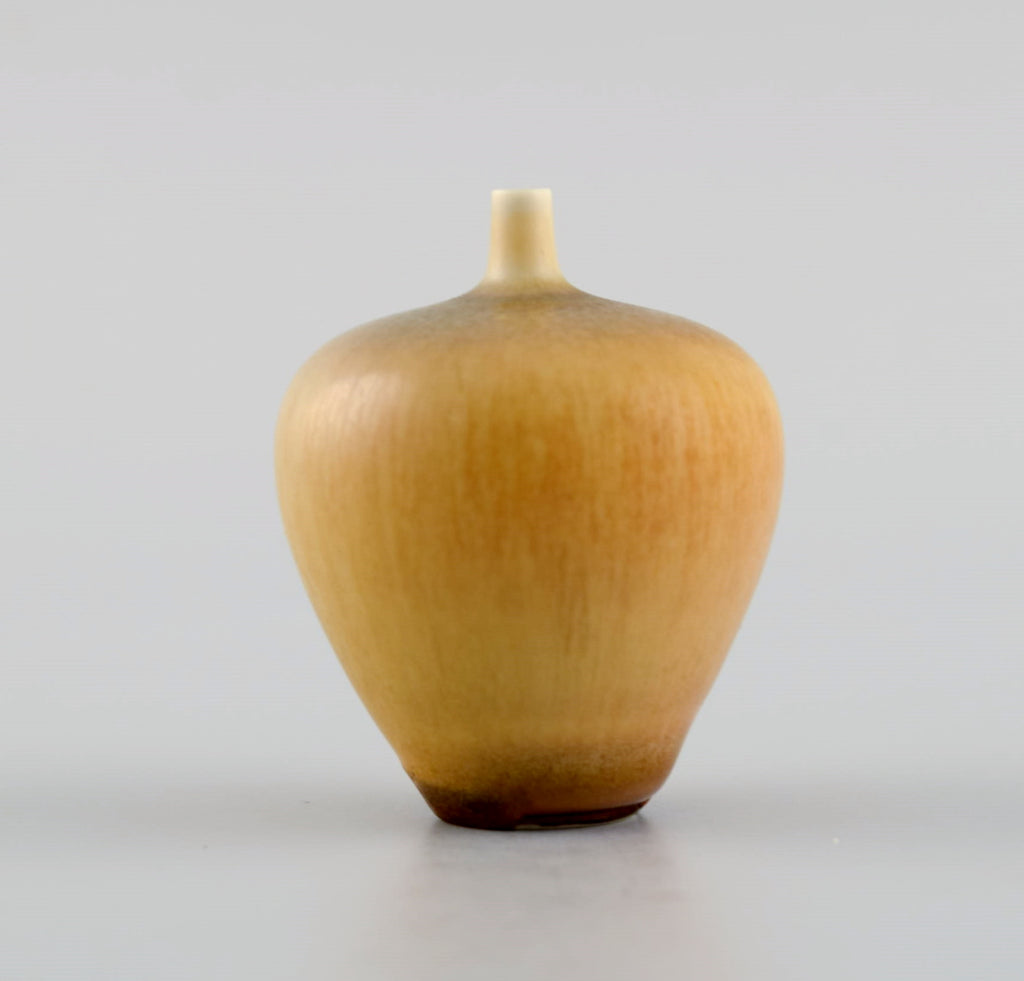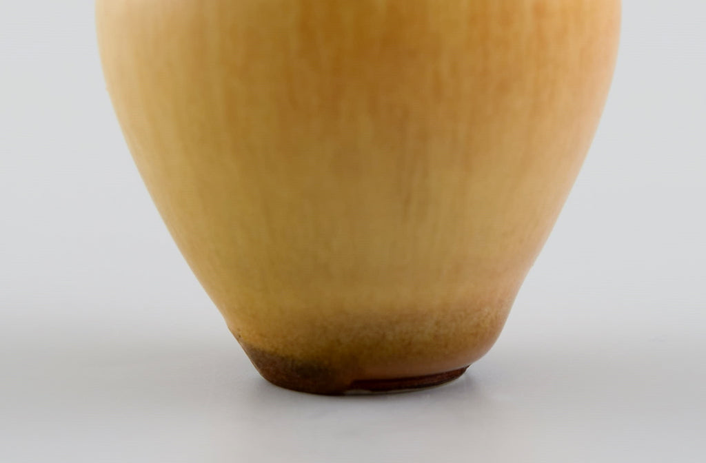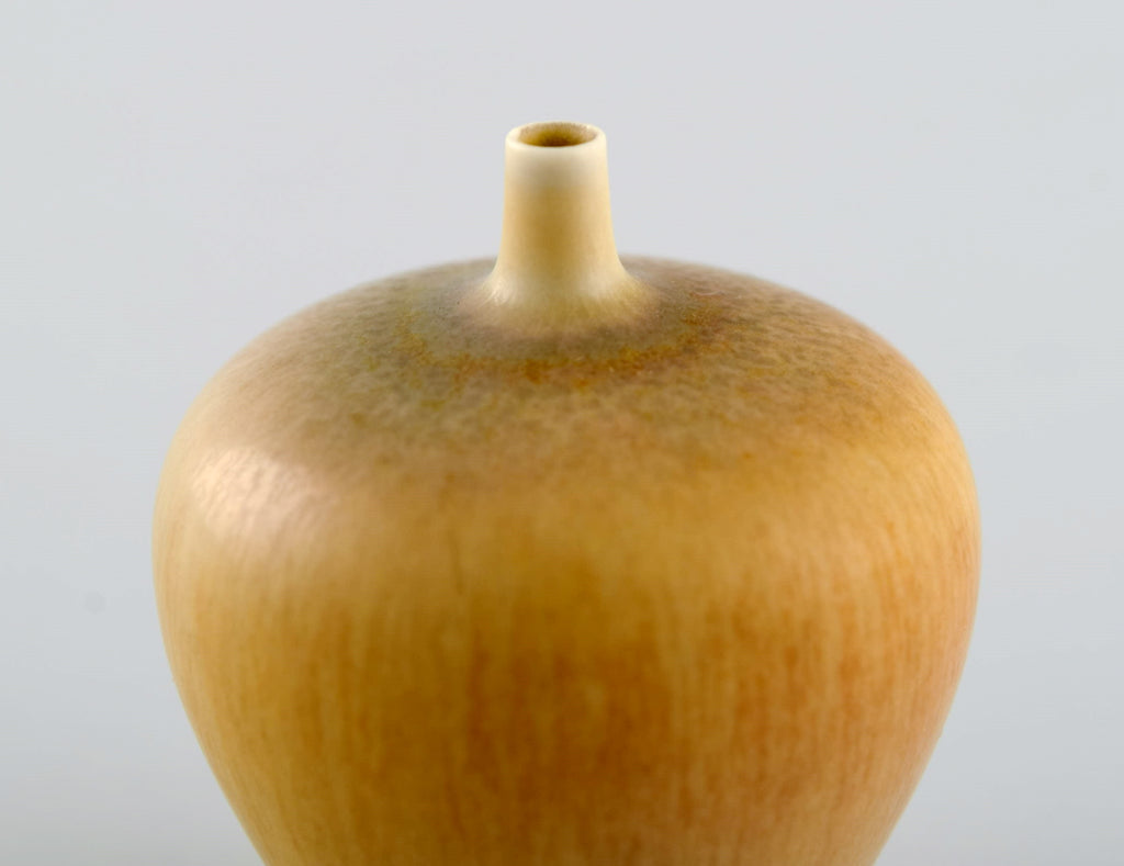 Berndt Friberg (1899-1981) for Gustavsberg Studiohand. Miniature vase in glazed ceramics. Beautiful glaze in light caramel shades. 1960s / 70s.