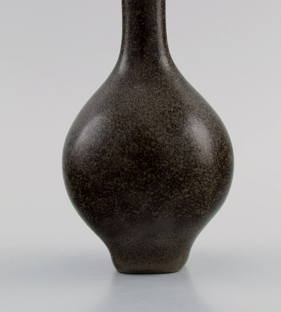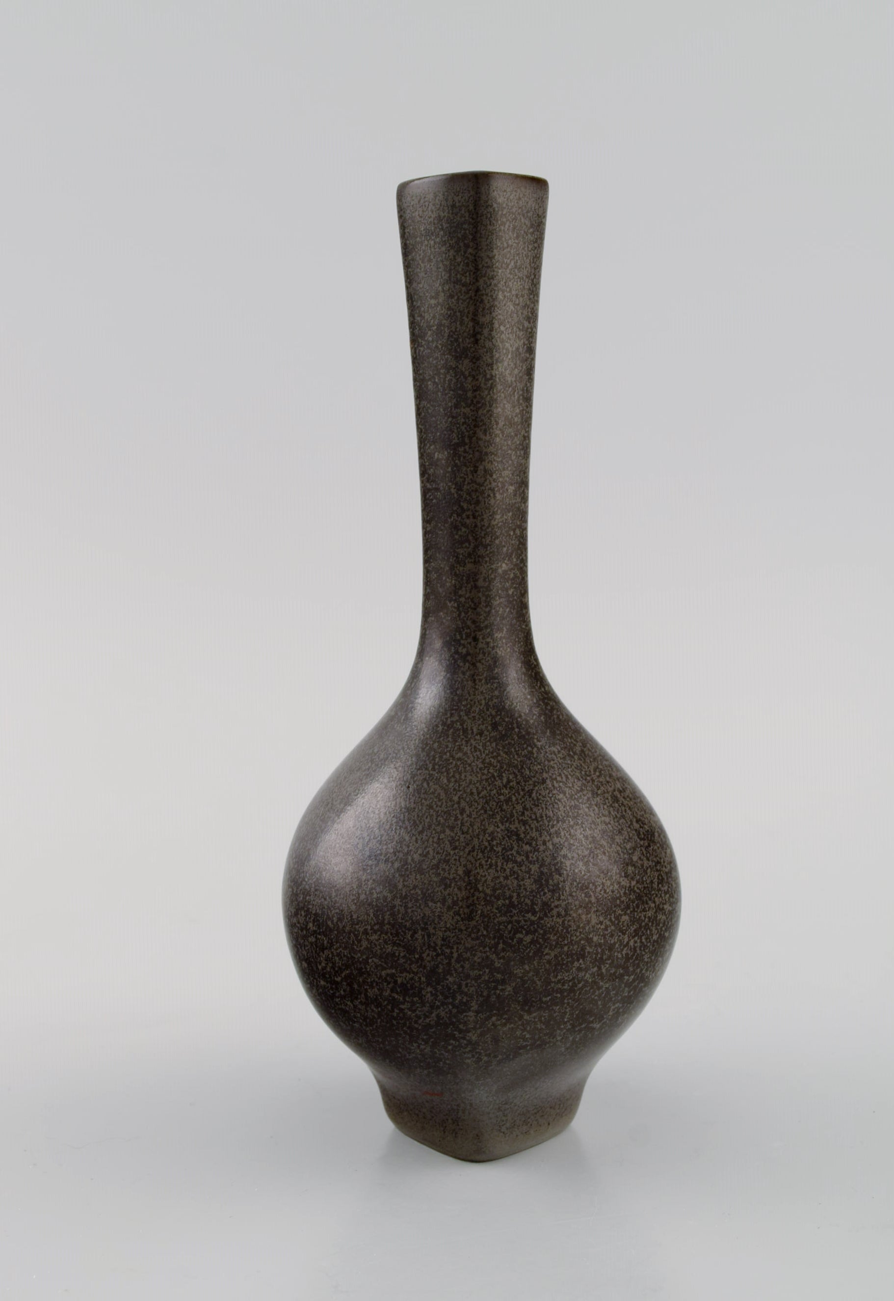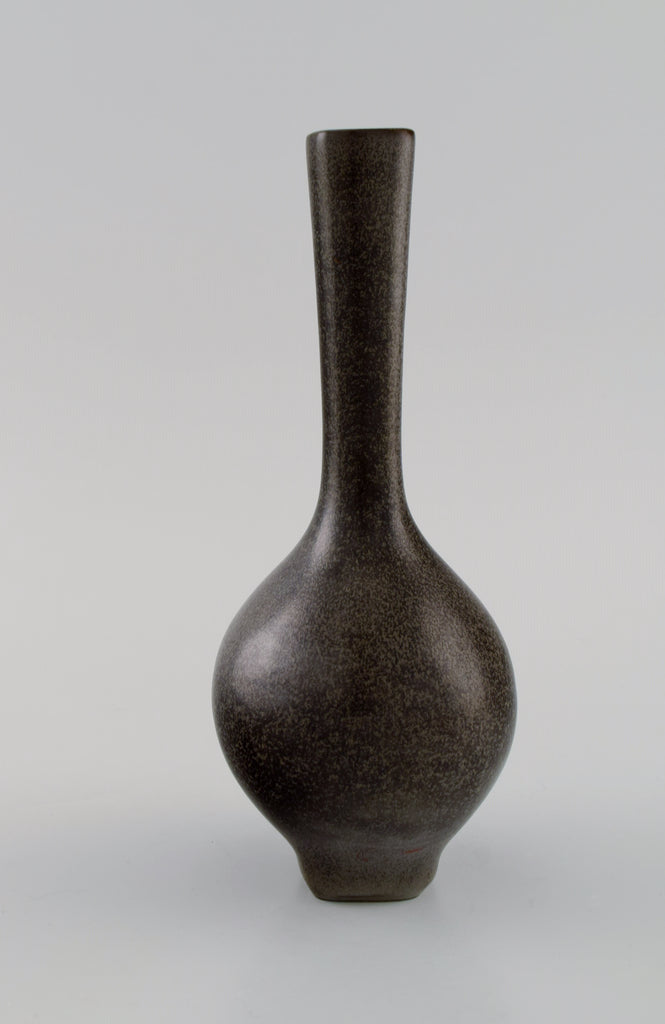Berndt Friberg (1899-1981) for Gustavsberg Studiohand. Vase in glazed ceramics. Beautiful glaze in shades of gray-black. 1960s.