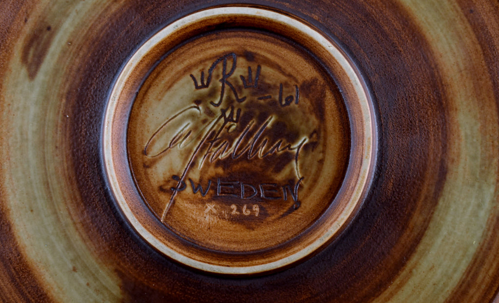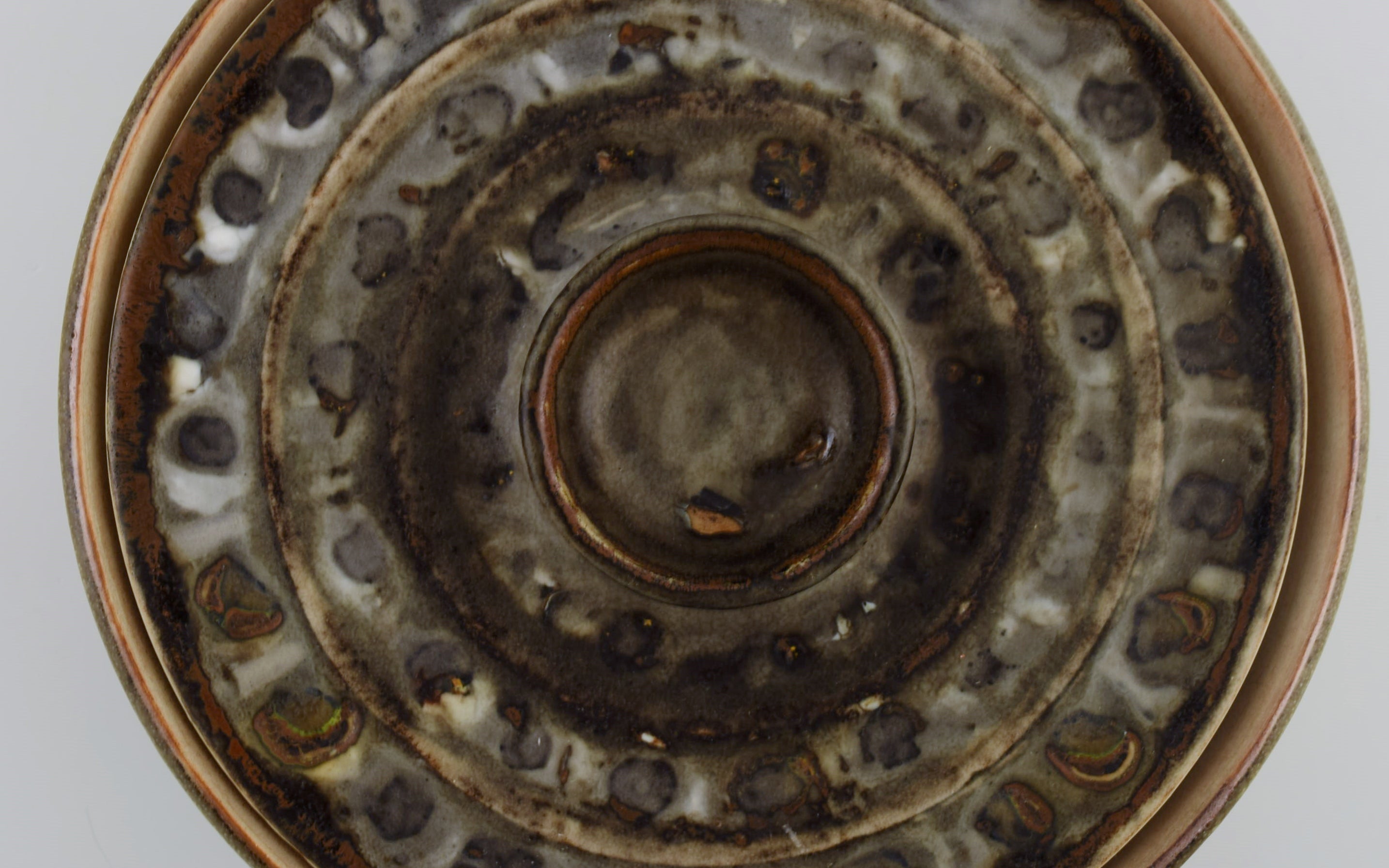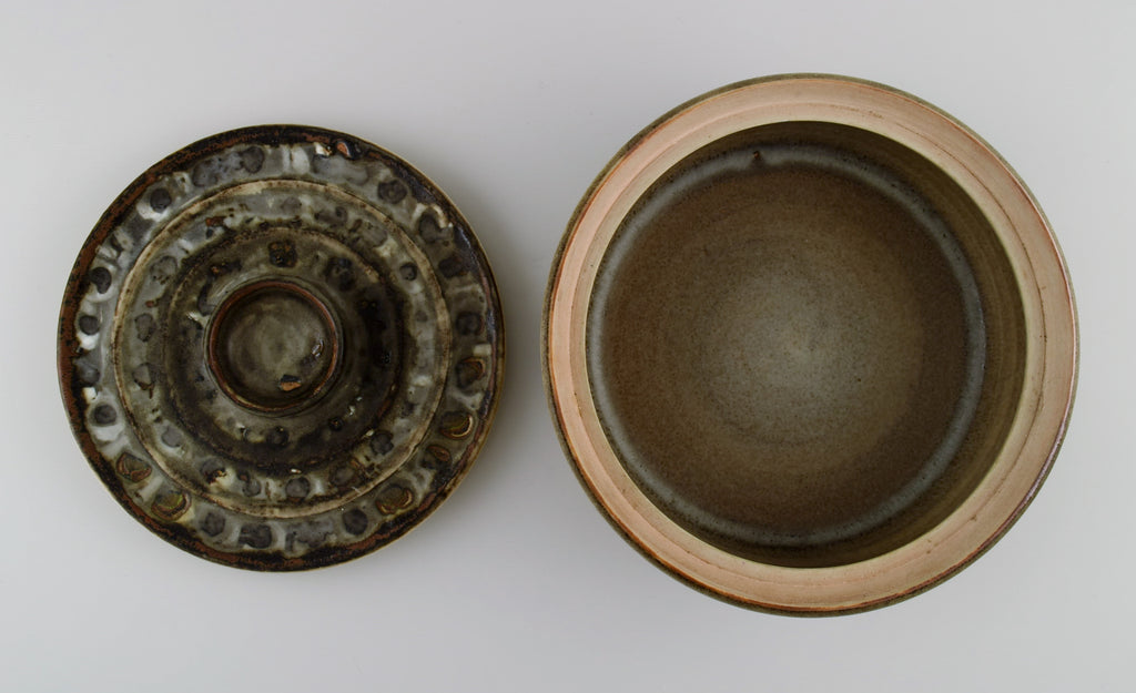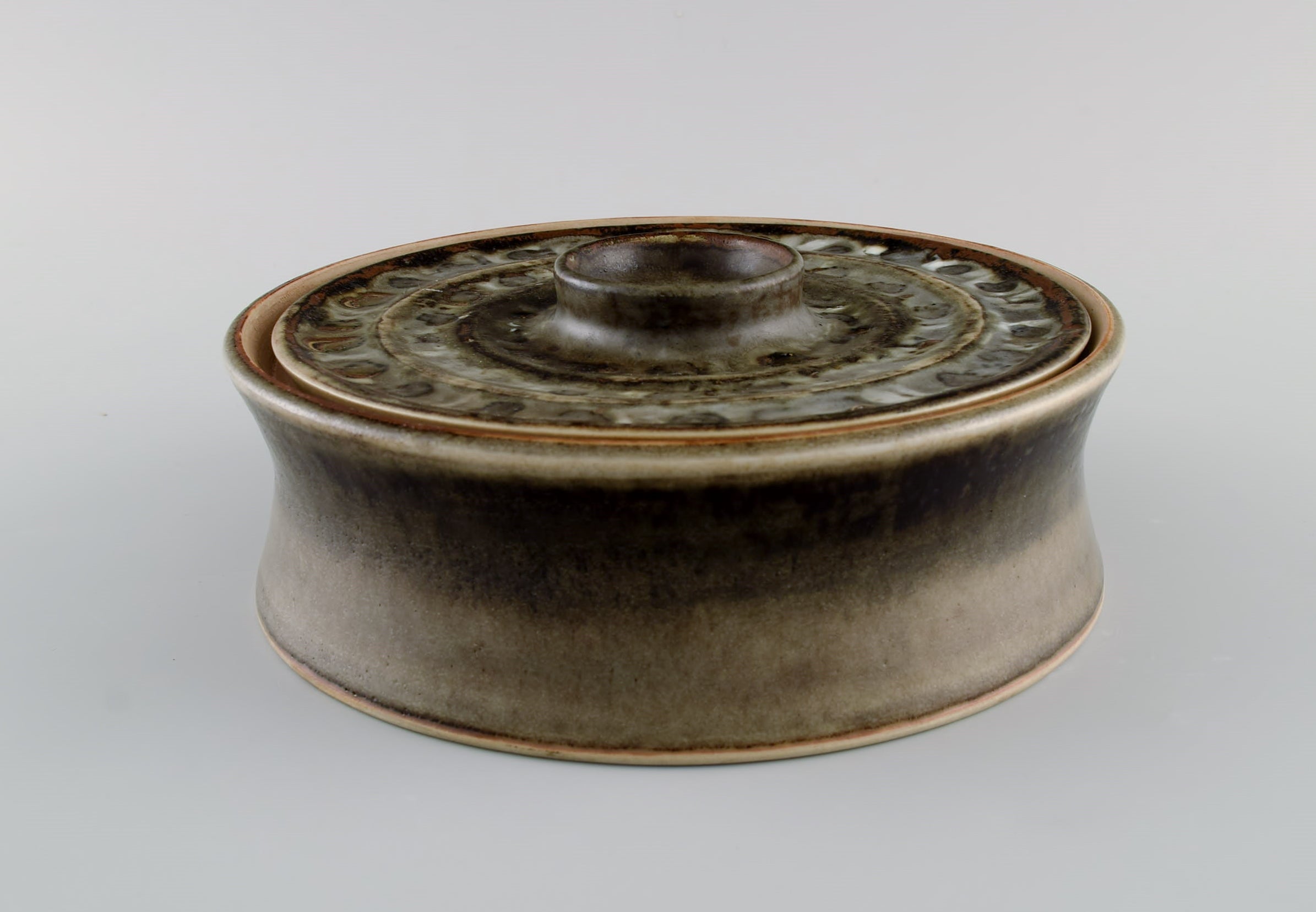 Carl Harry Stålhane (1920-1990) for Rörstrand. Lidded bowl in glazed ceramics. Beautiful glaze in light soil shades. Dated 1961.