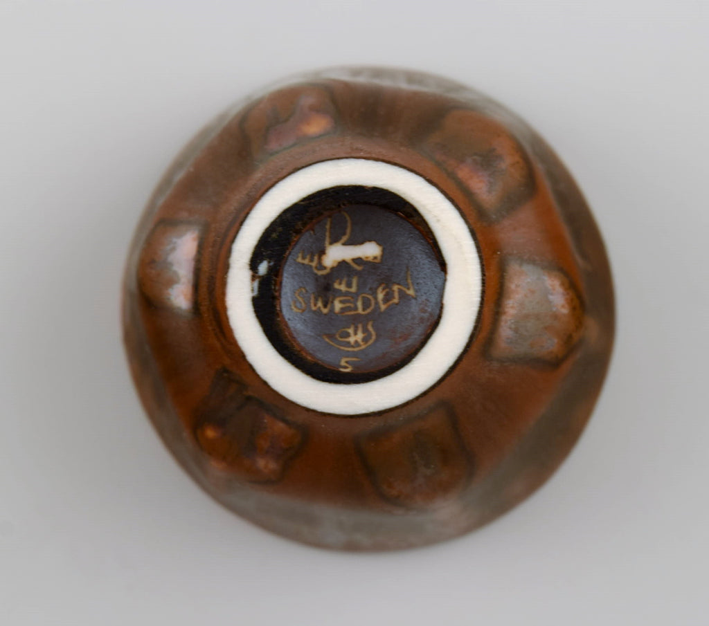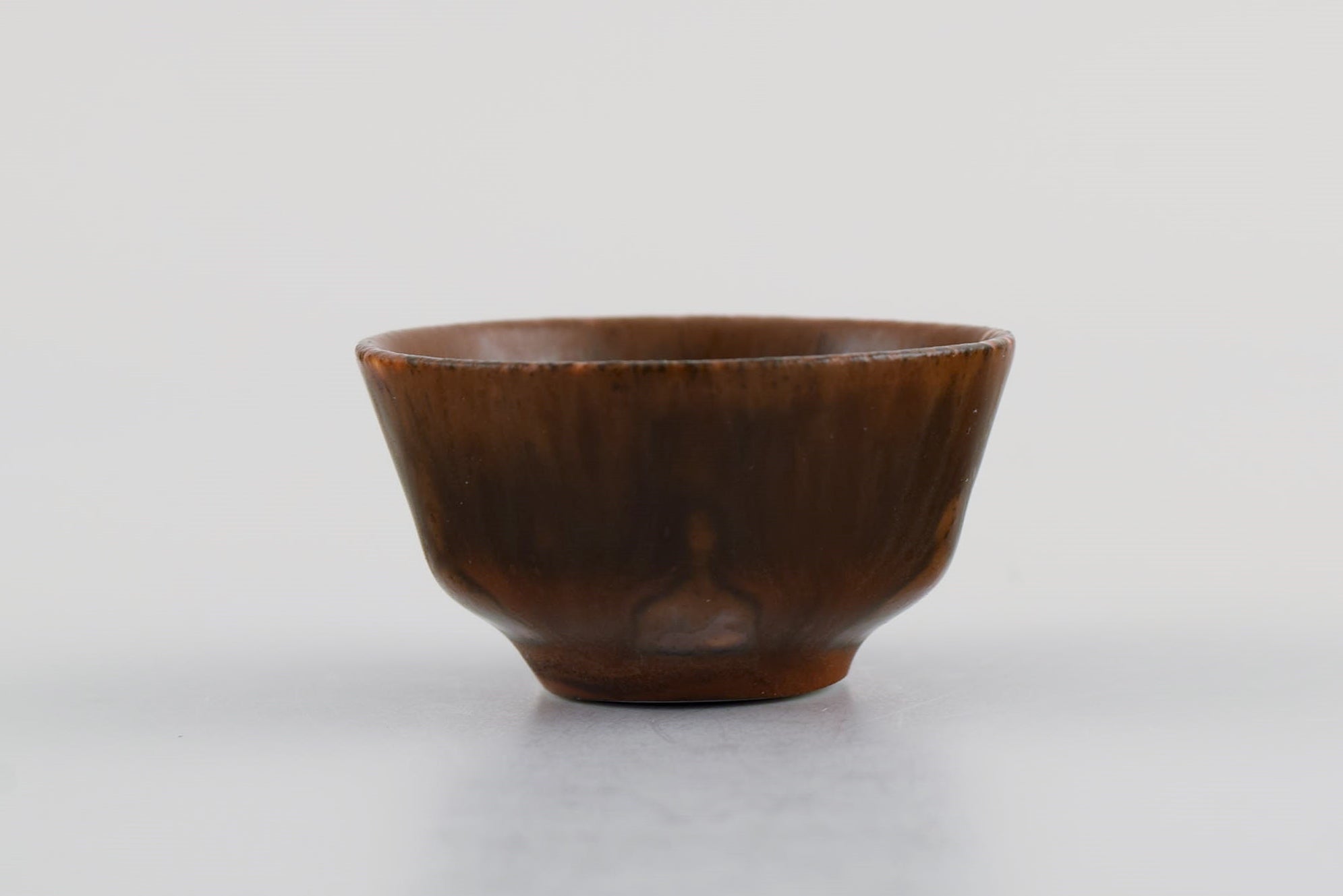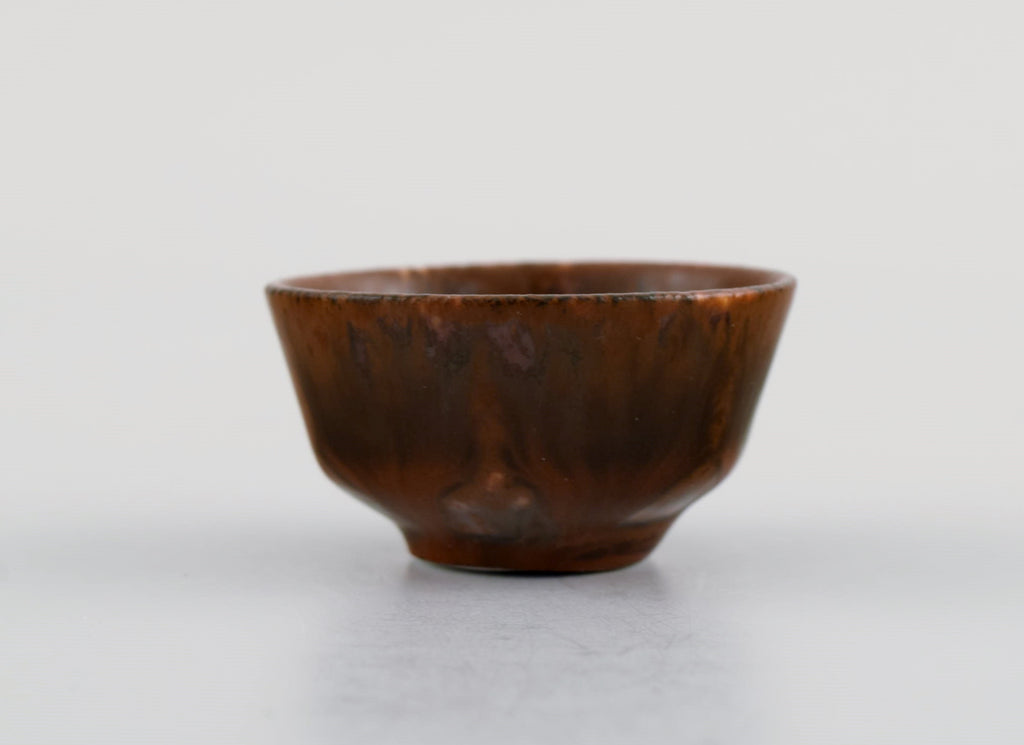 Carl Harry Stålhane (1920-1990) for Rörstrand. Miniature bowl in glazed ceramics. Beautiful glaze in brown shades. Mid-20th century.
