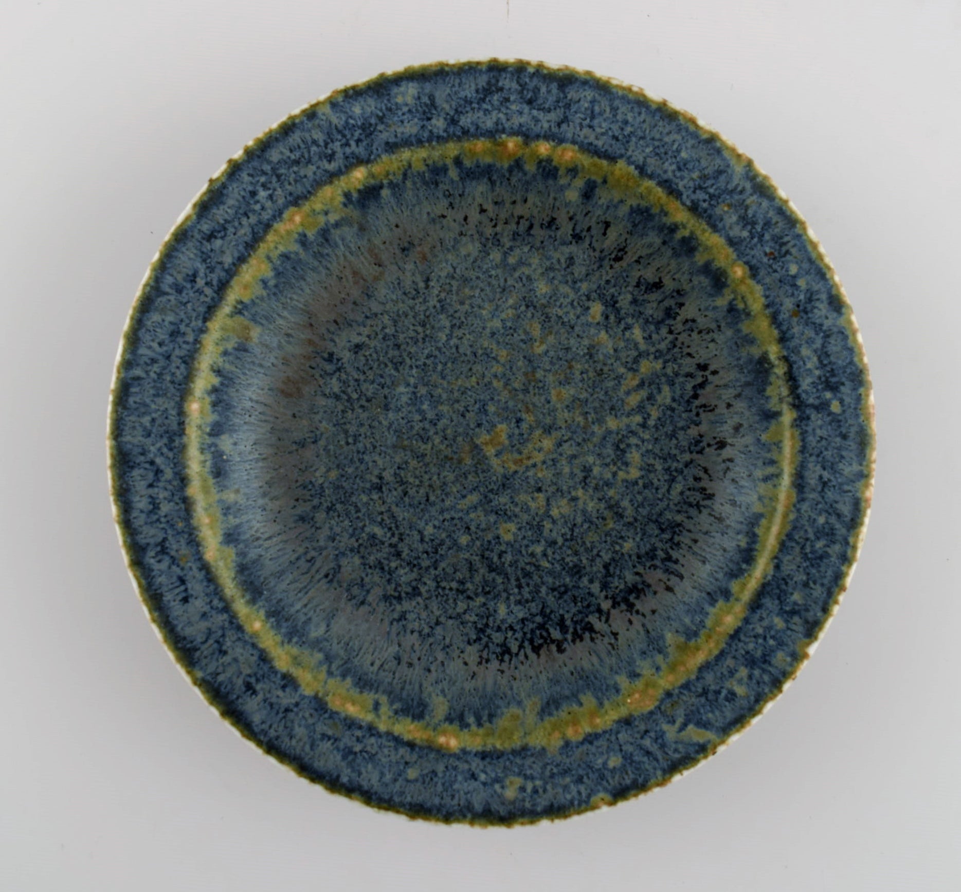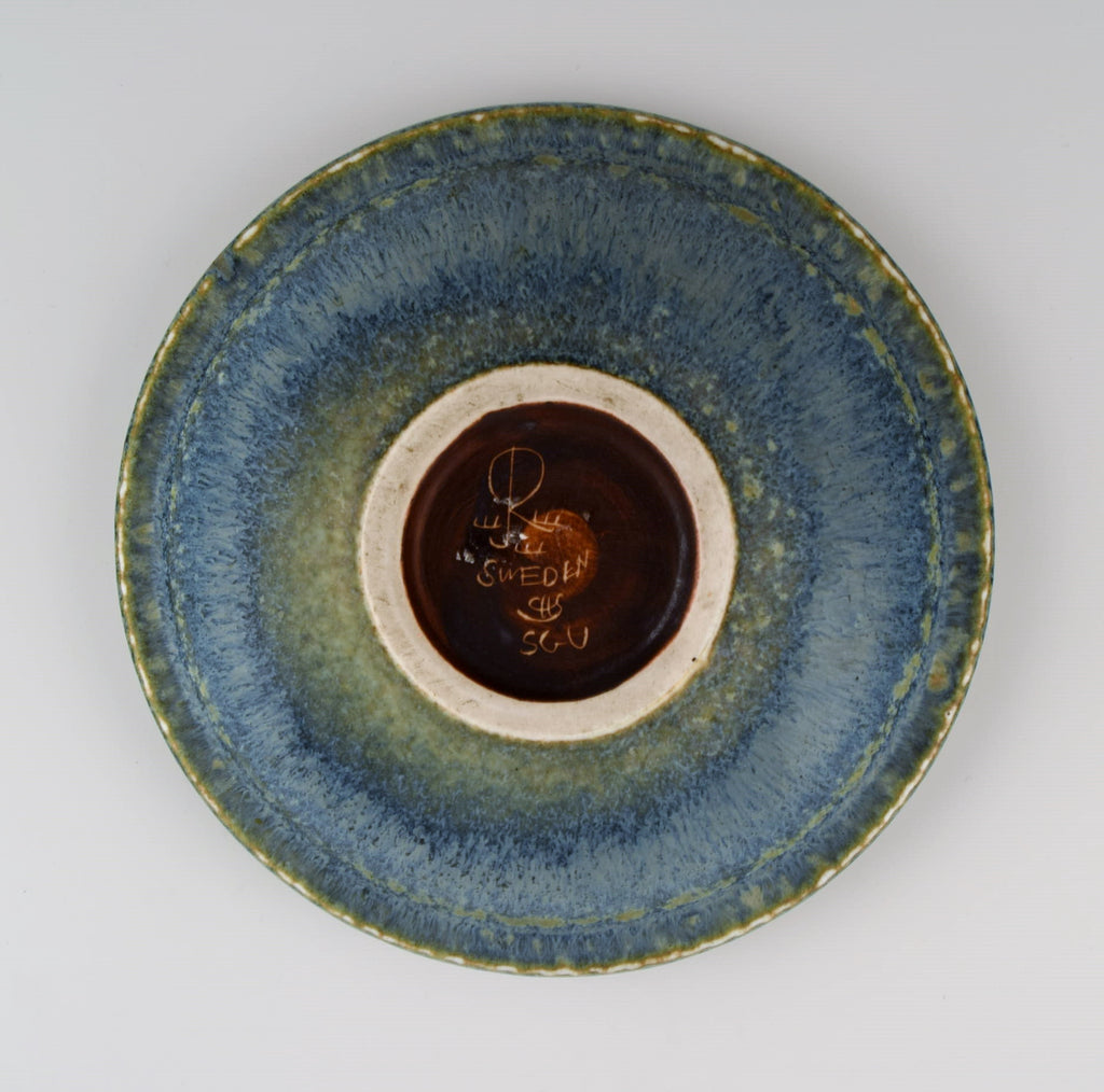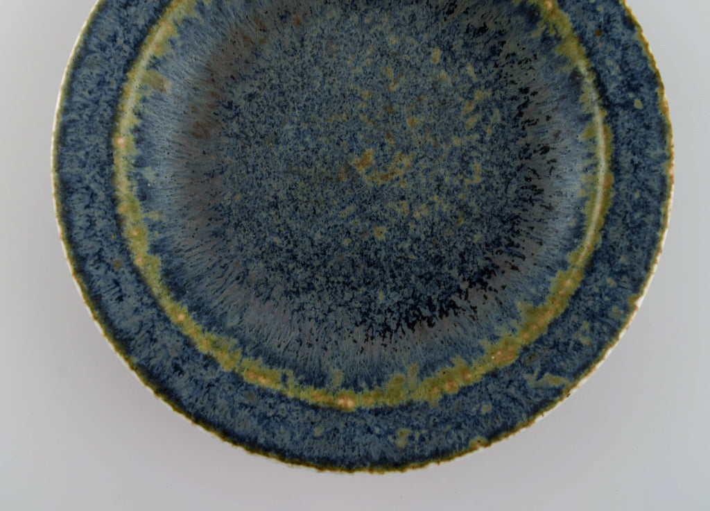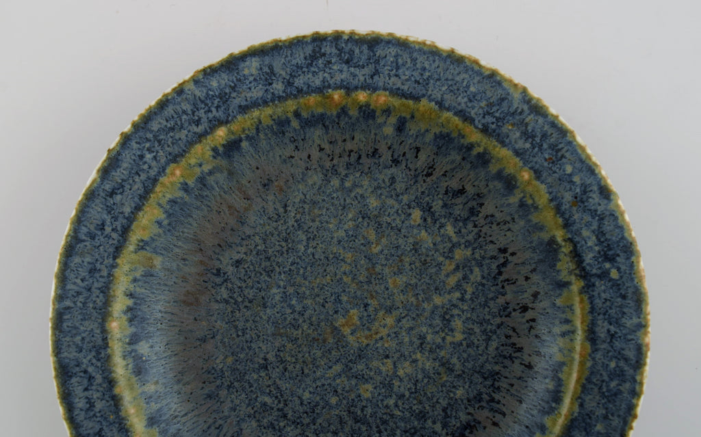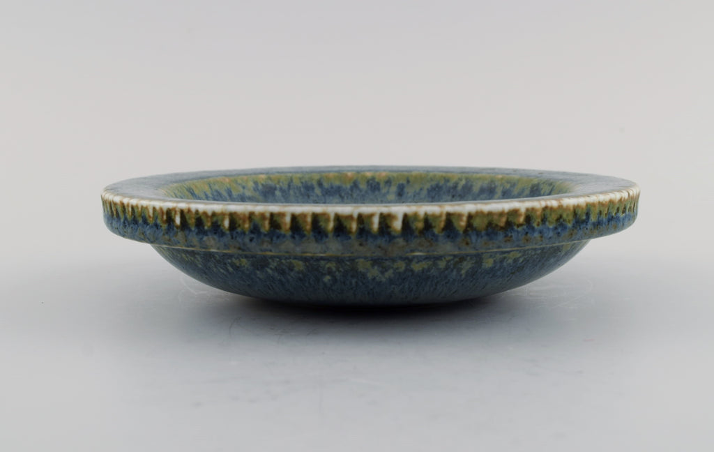 Carl Harry Stålhane (1920-1990) for Rörstrand. Round bowl / dish in glazed ceramics. Beautiful glaze in shades of blue-green. Mid-20th century.