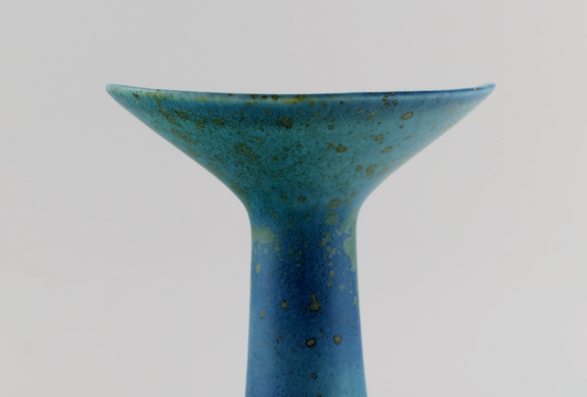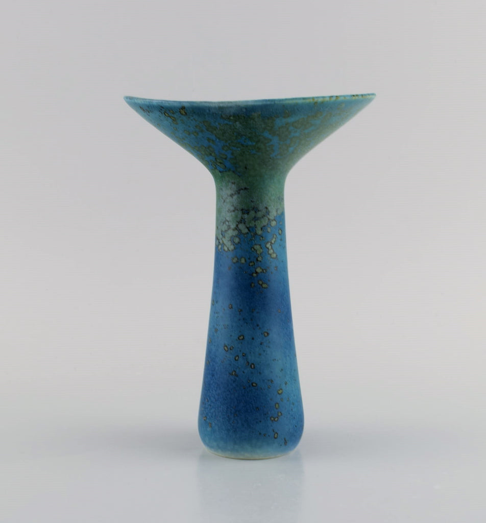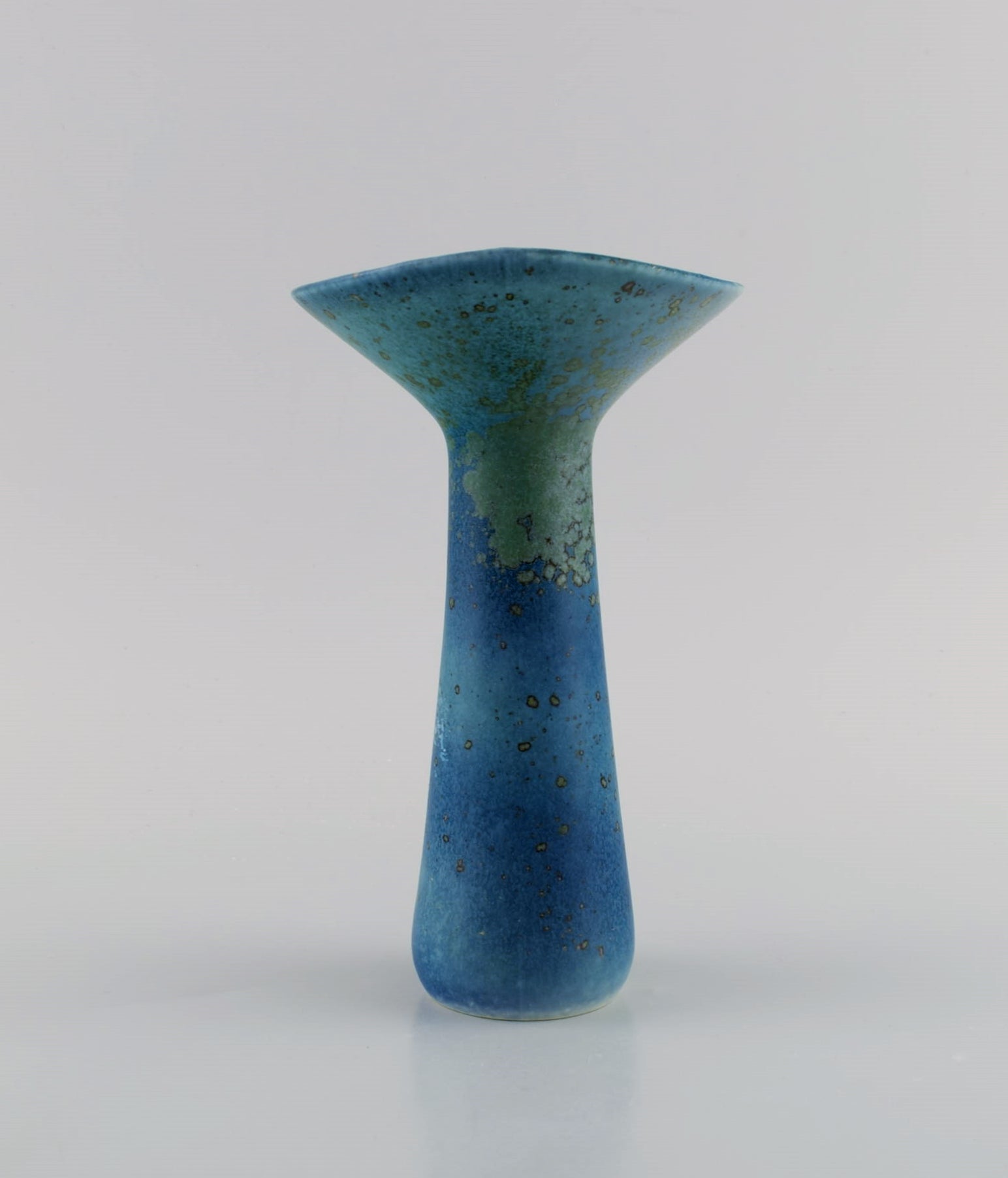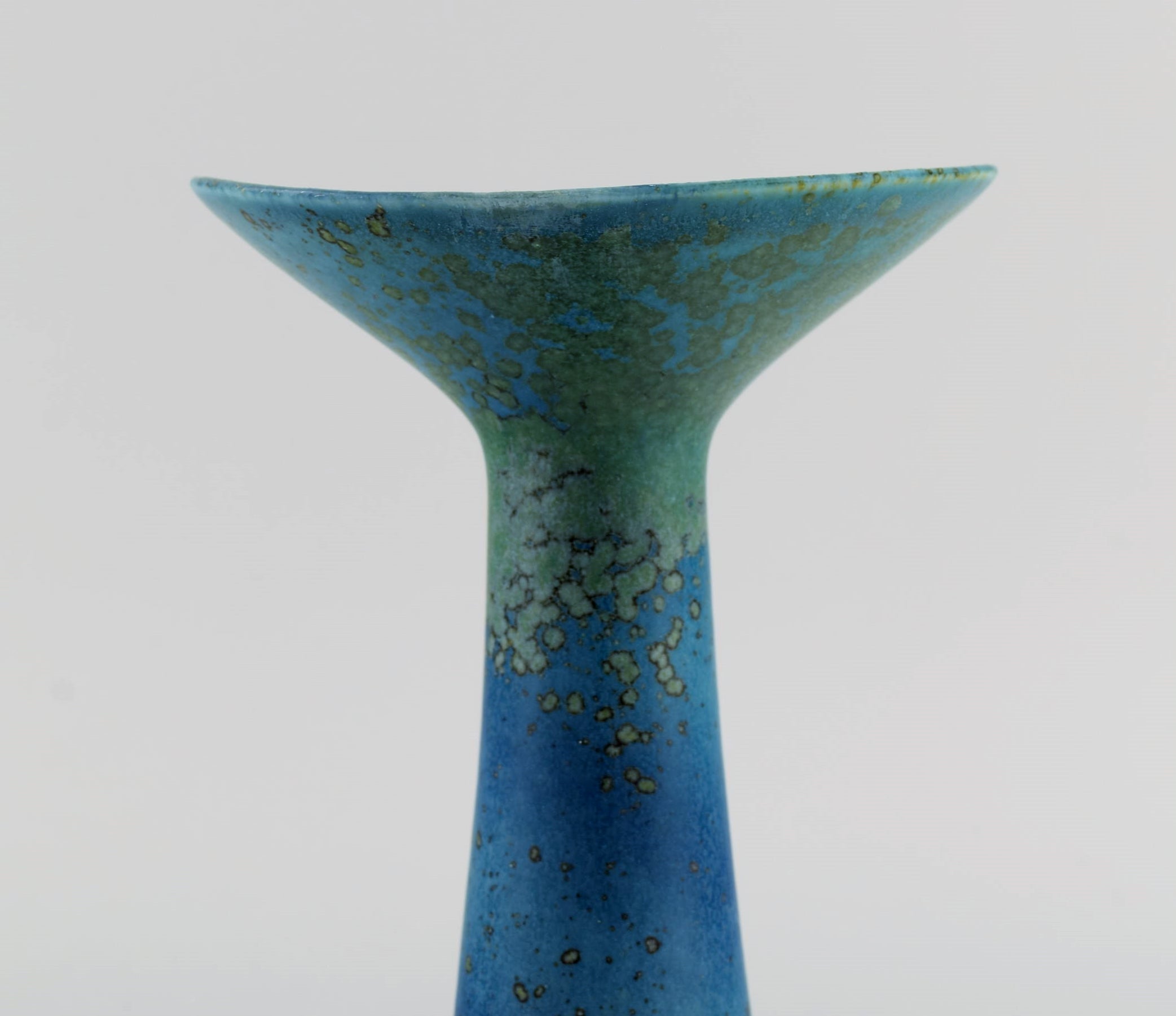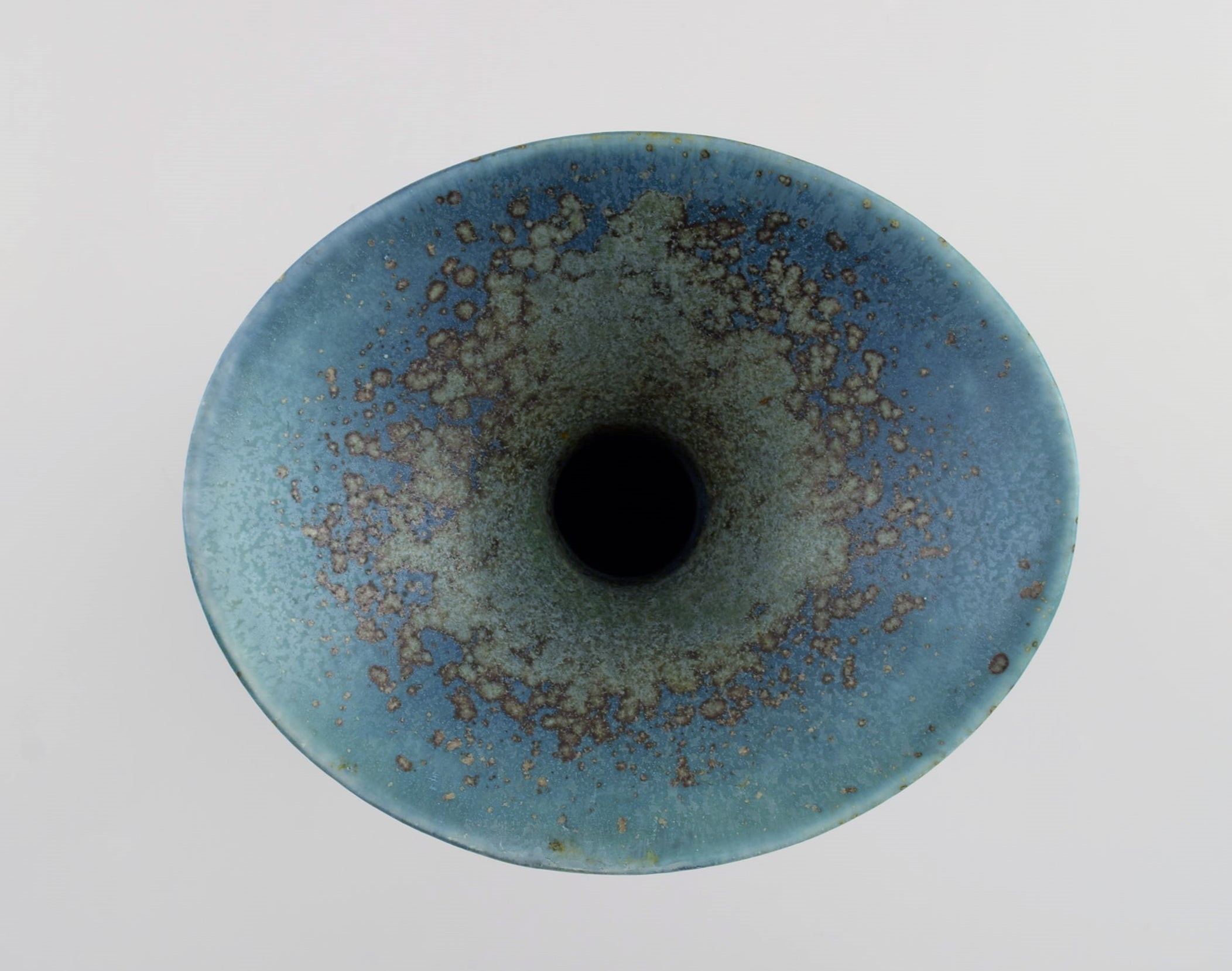 Carl Harry Stålhane (1920-1990) for Rörstrand. Vase in glazed ceramics. Magnificent rare shape and glaze. Mid-20th century.