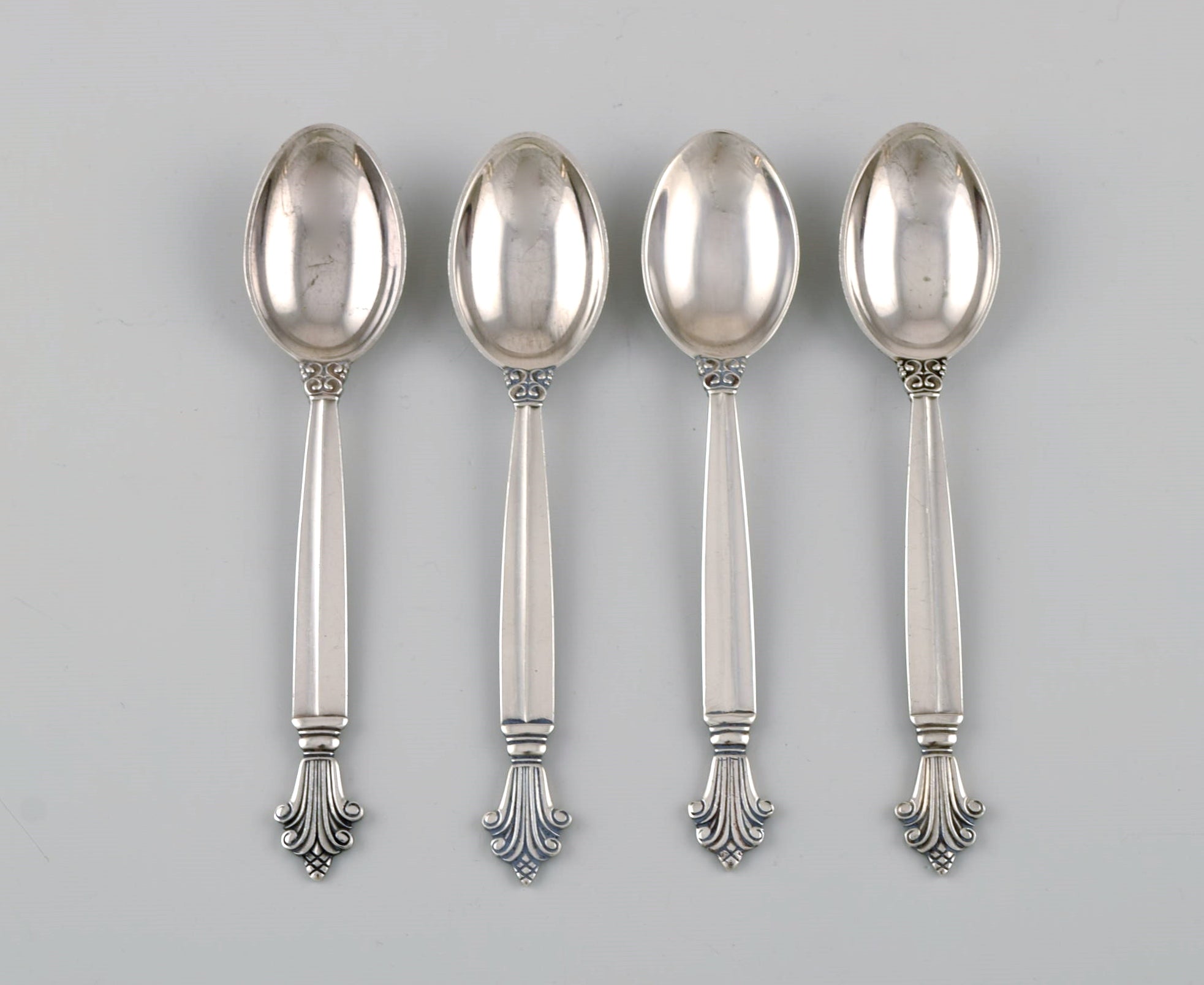 Four Georg Jensen Acanthus coffee spoons in sterling silver.