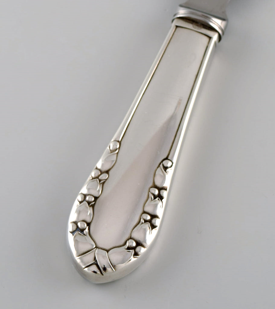 Georg Jensen Lily of the valley cake knife in sterling silver and stainless steel.