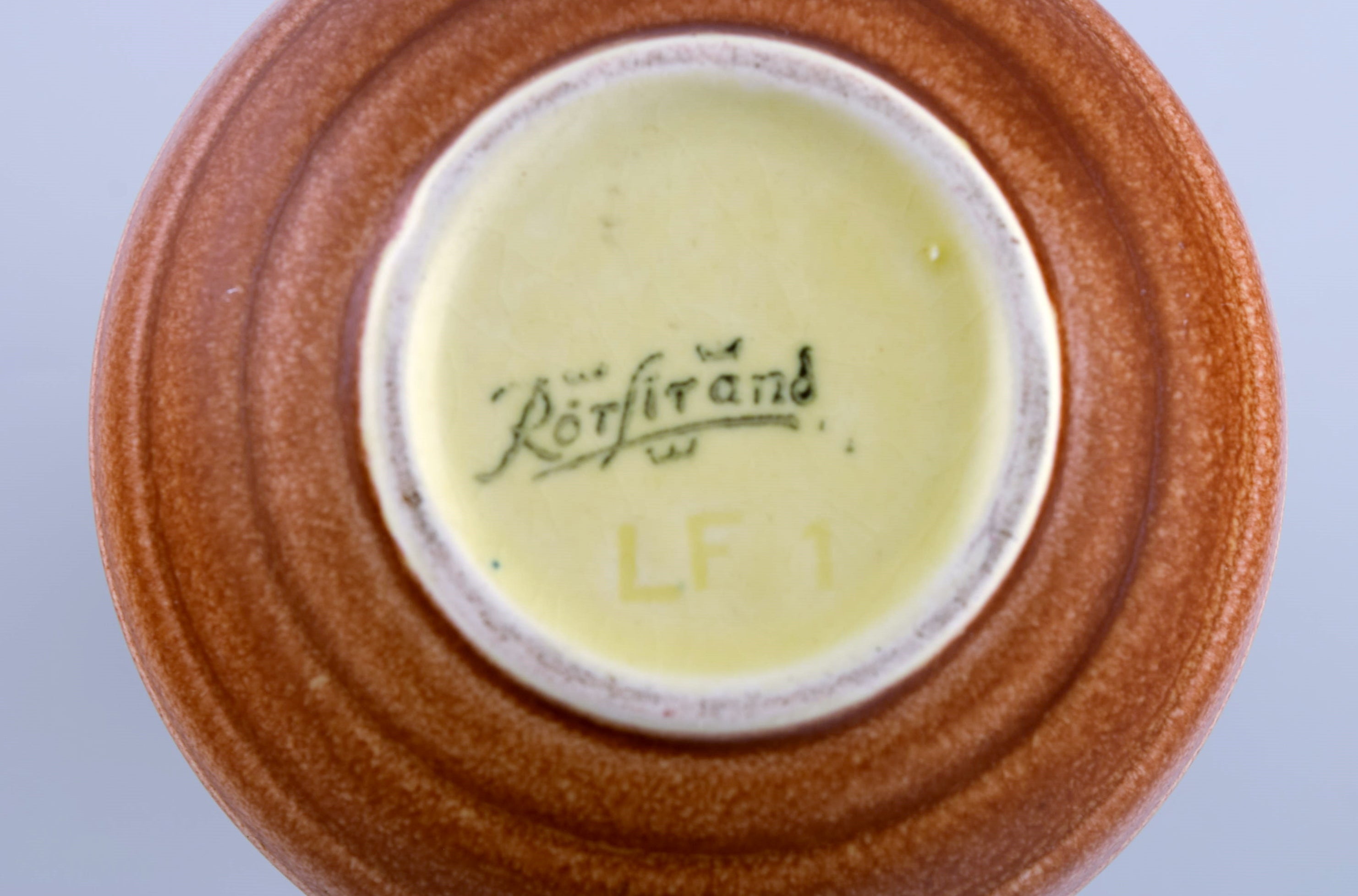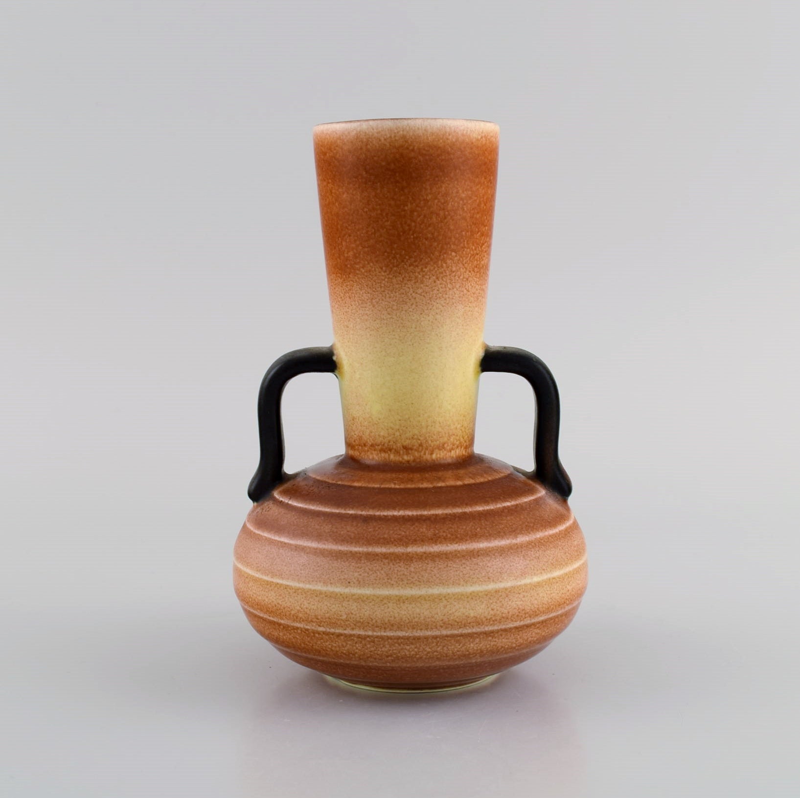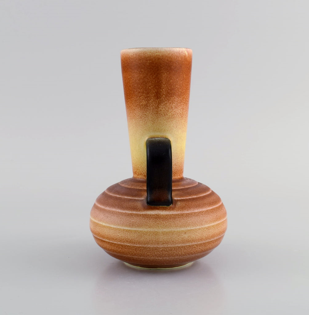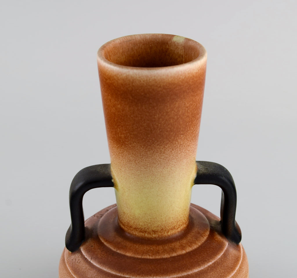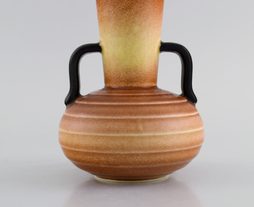 Gertrud Lönegren (1905–1970) for Rörstrand. Two vases with handles in glazed ceramics. Beautiful peach glaze. 1930s / 40s.