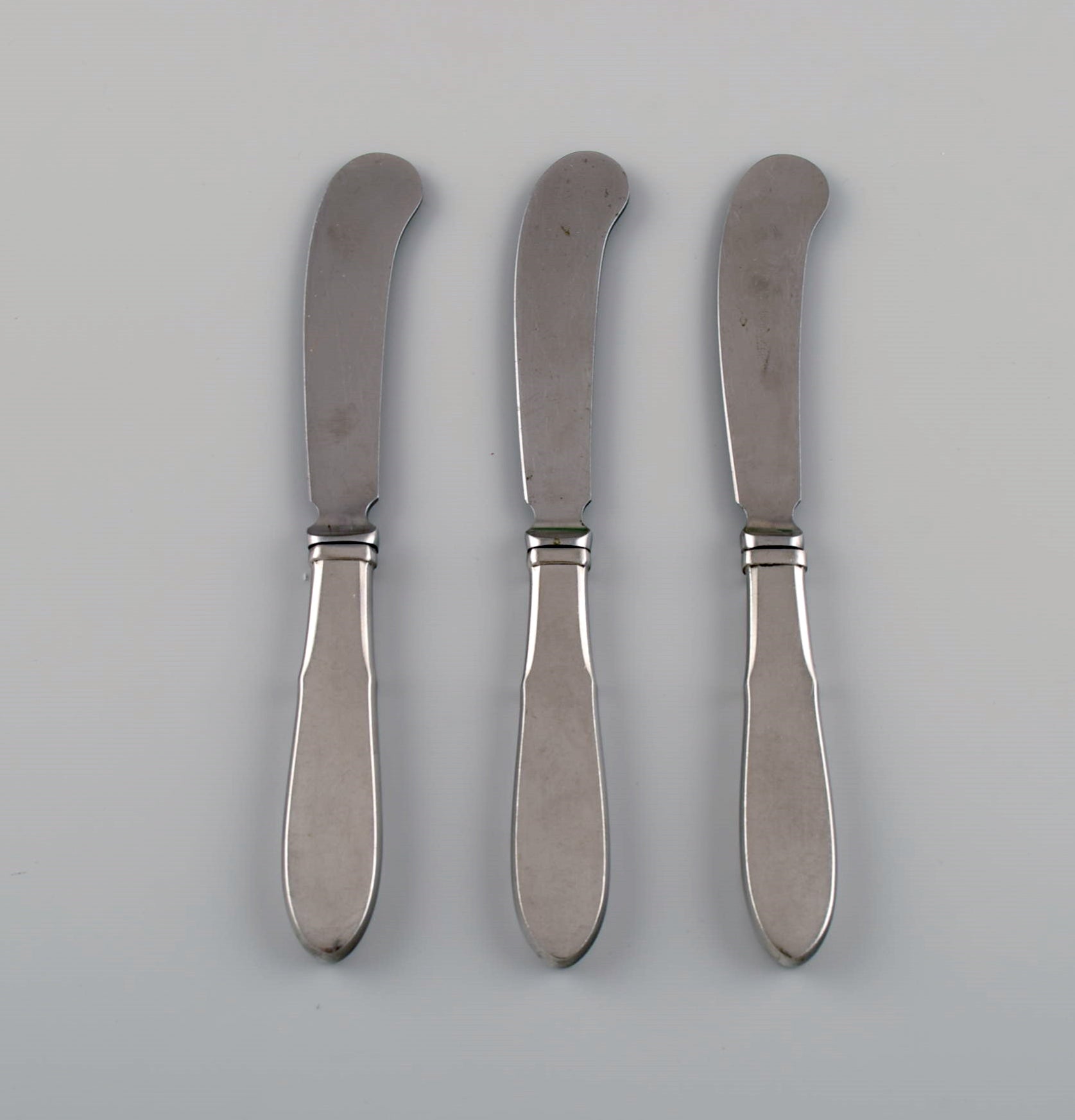 Gundorph Albertus for Georg Jensen. Three Mitra butter knives in stainless steel. 1970s.