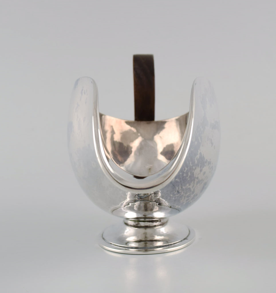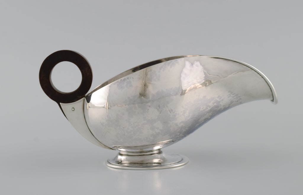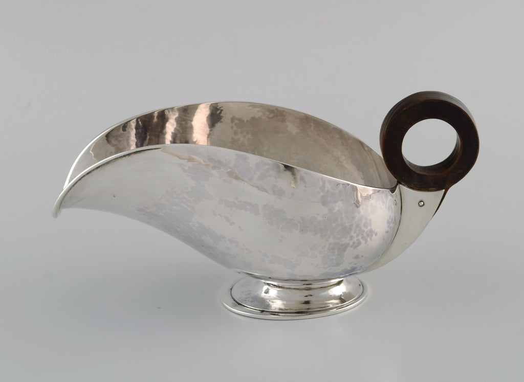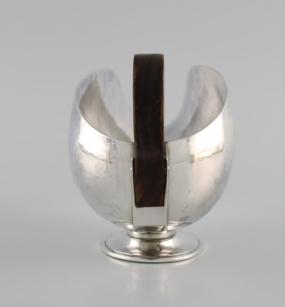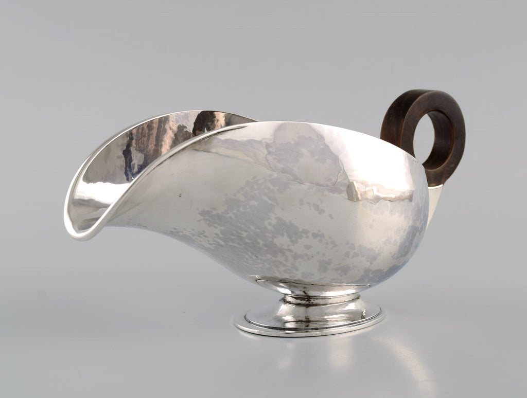 Hans Hansen (1884 - 1940), Denmark. Art deco / funkis sauce jug in sterling silver with handle in ebony. Dated 1938.