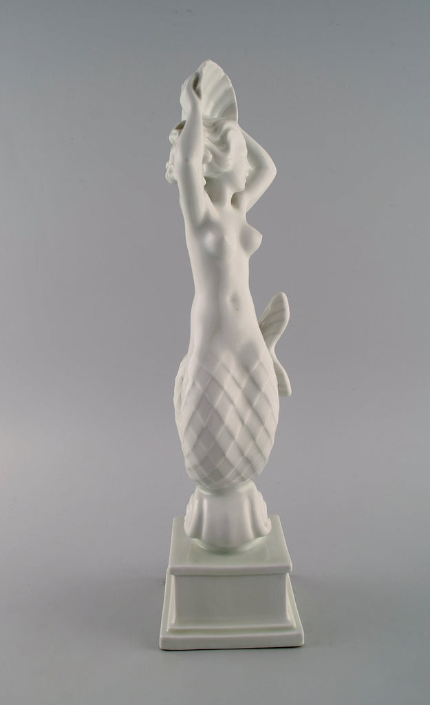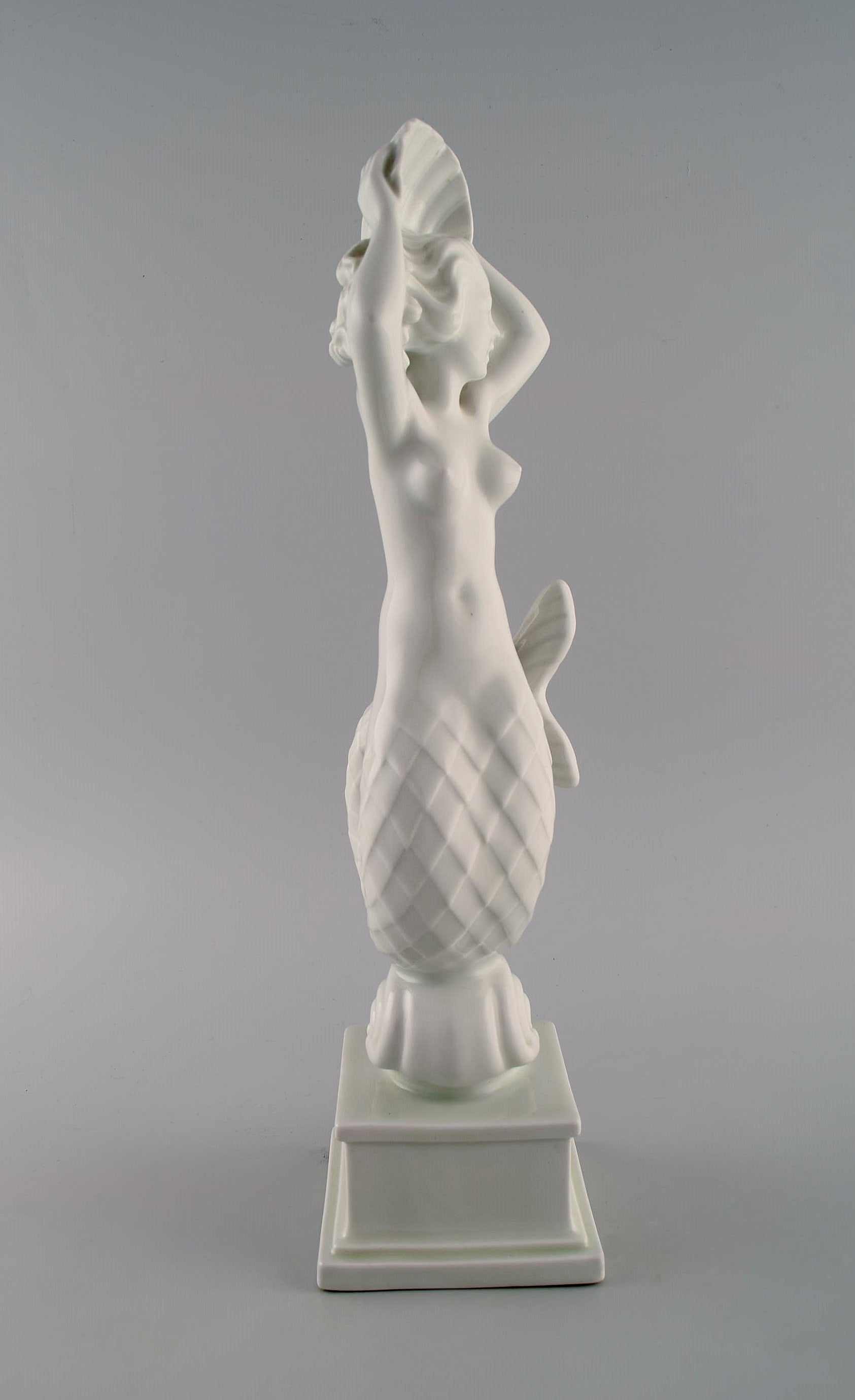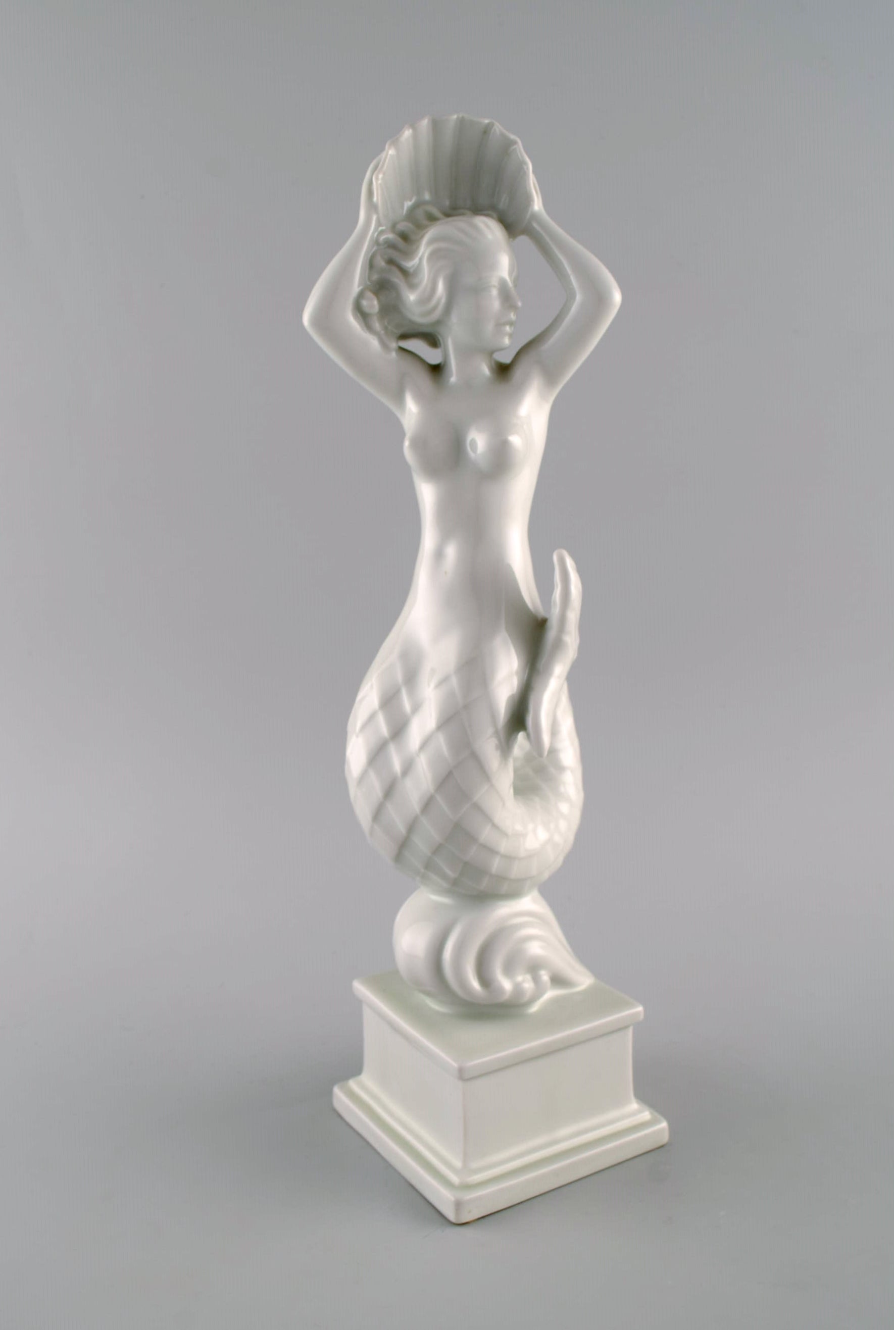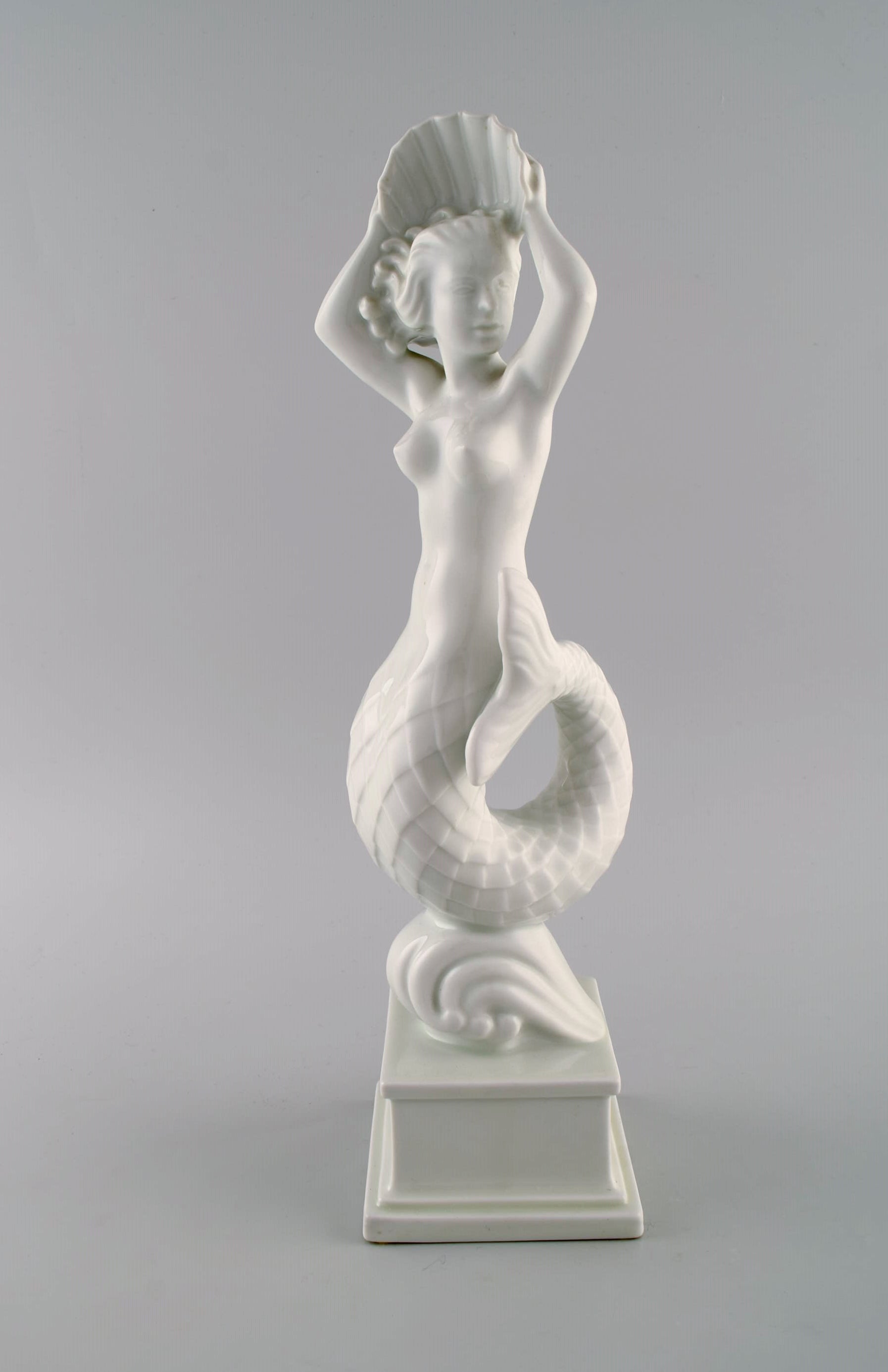 Harald Salomon (1900-1990) for Rörstrand. Art deco blanc de chine figure depicting mermaid. 1930s.