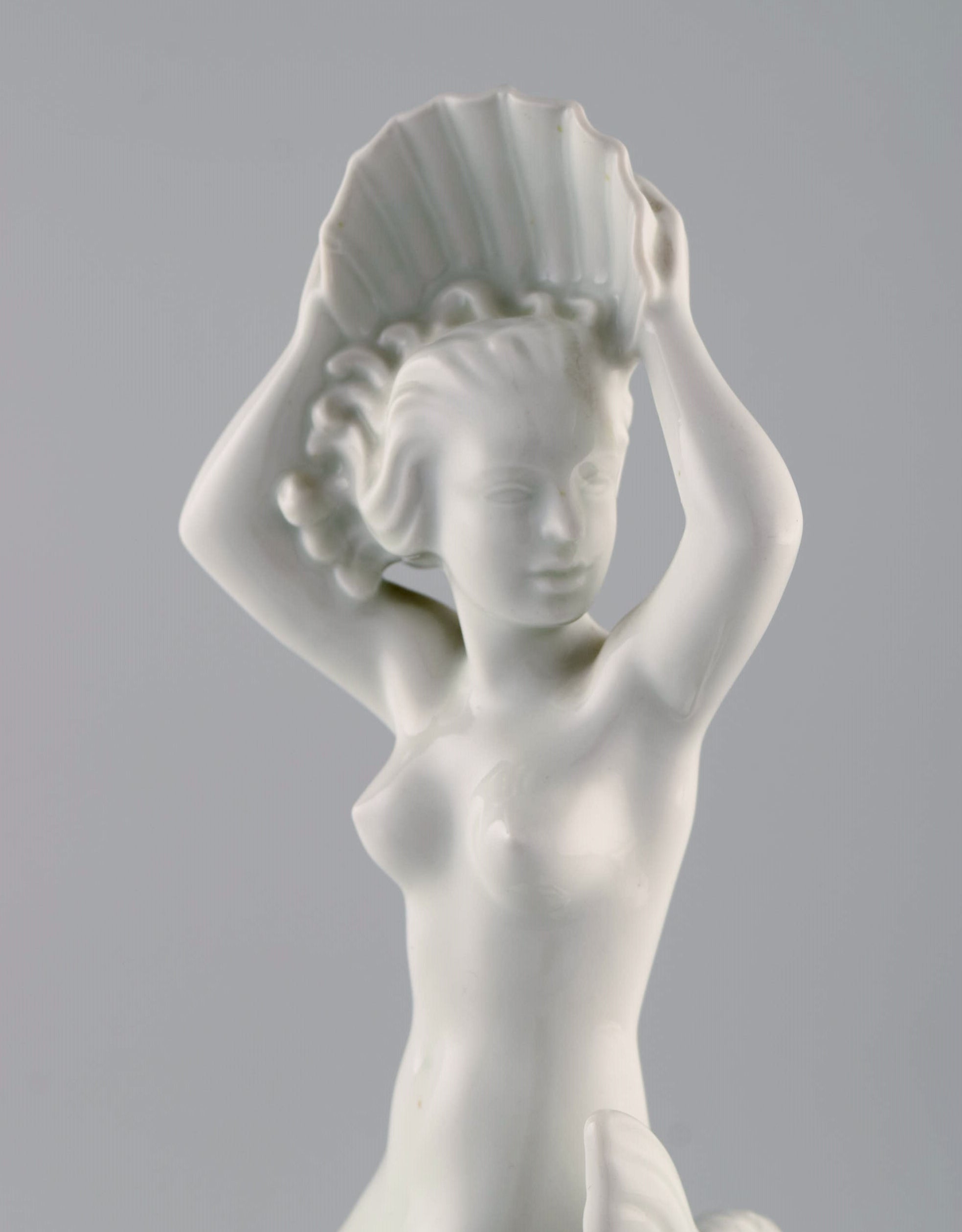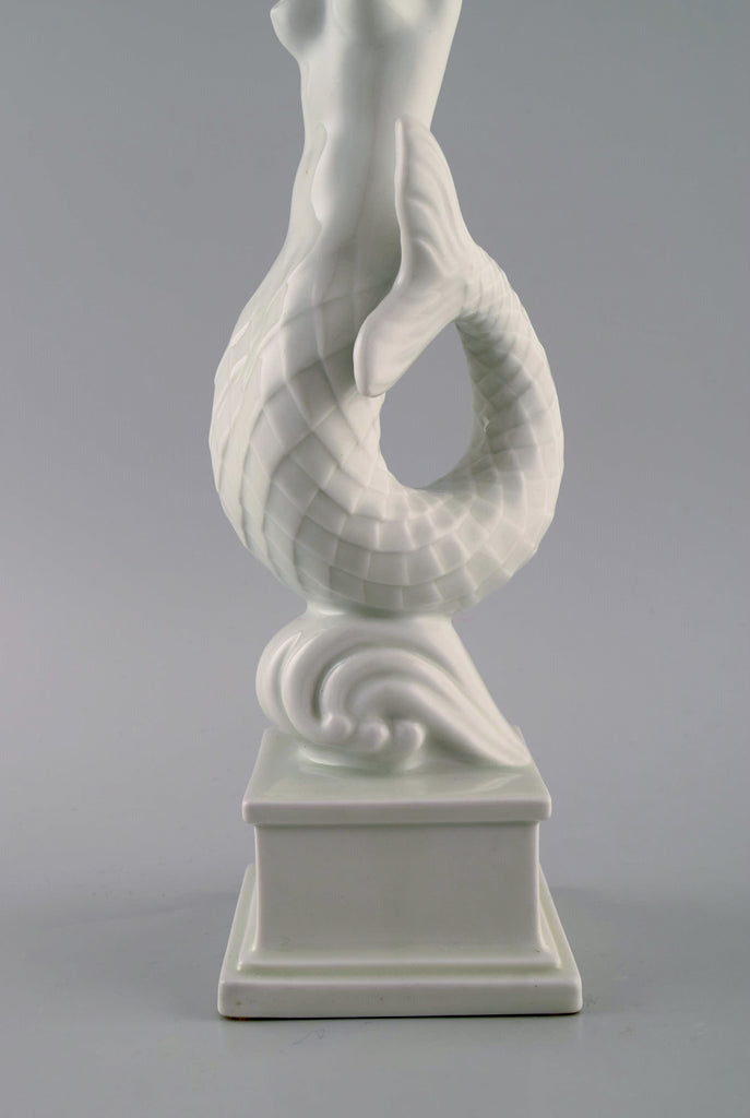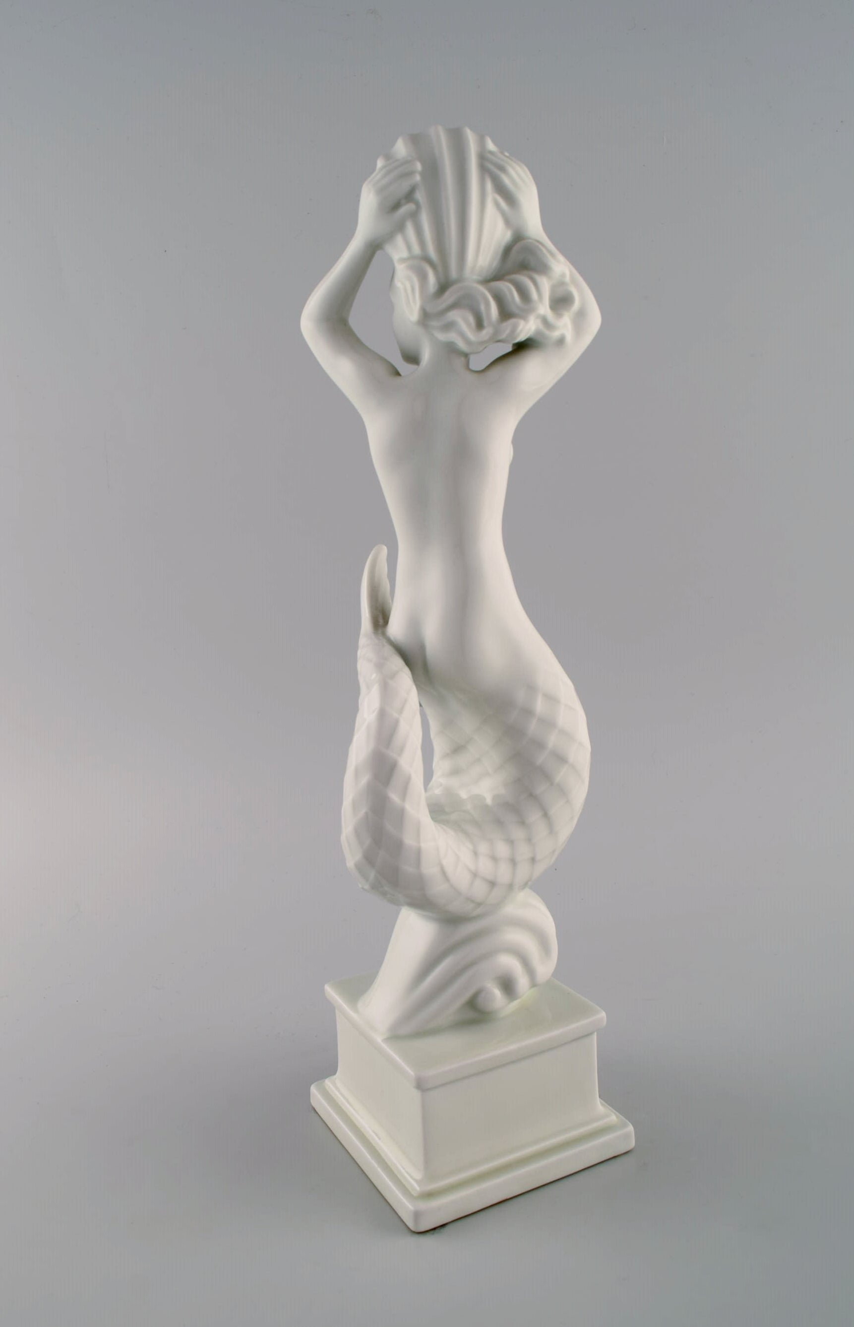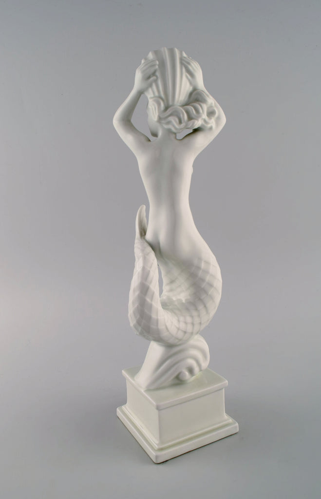Harald Salomon (1900-1990) for Rörstrand. Art deco blanc de chine figure depicting mermaid. 1930s.