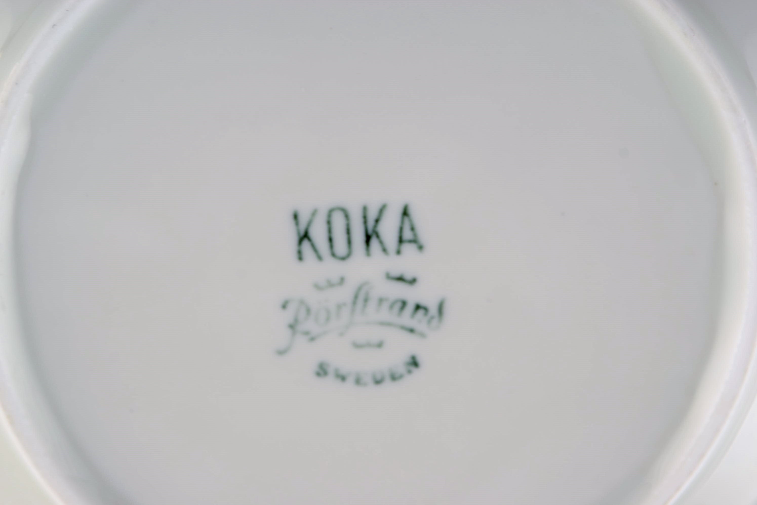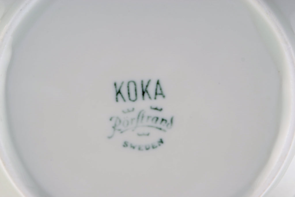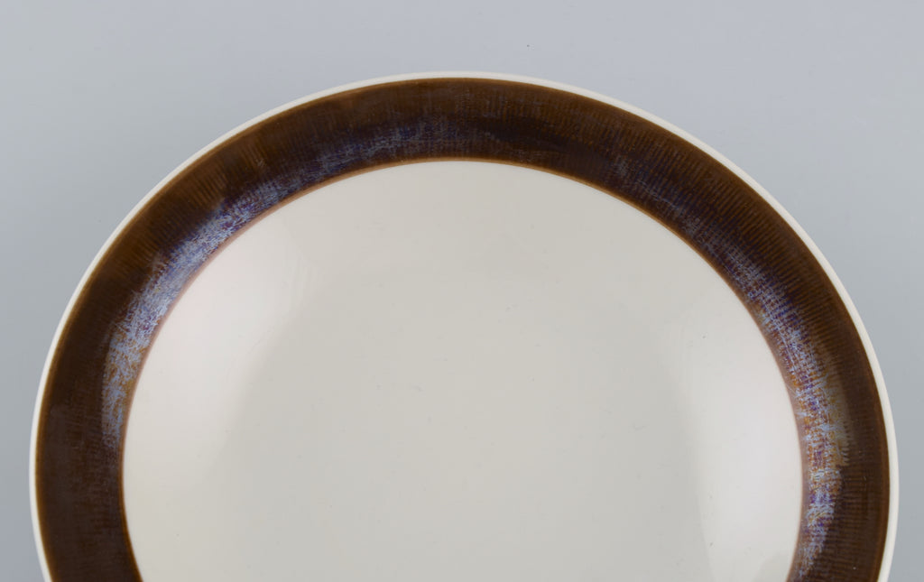 Hertha Bengtson (1917-1993) for Rörstrand. Six deep Koka plates in glazed stoneware. 1960s.