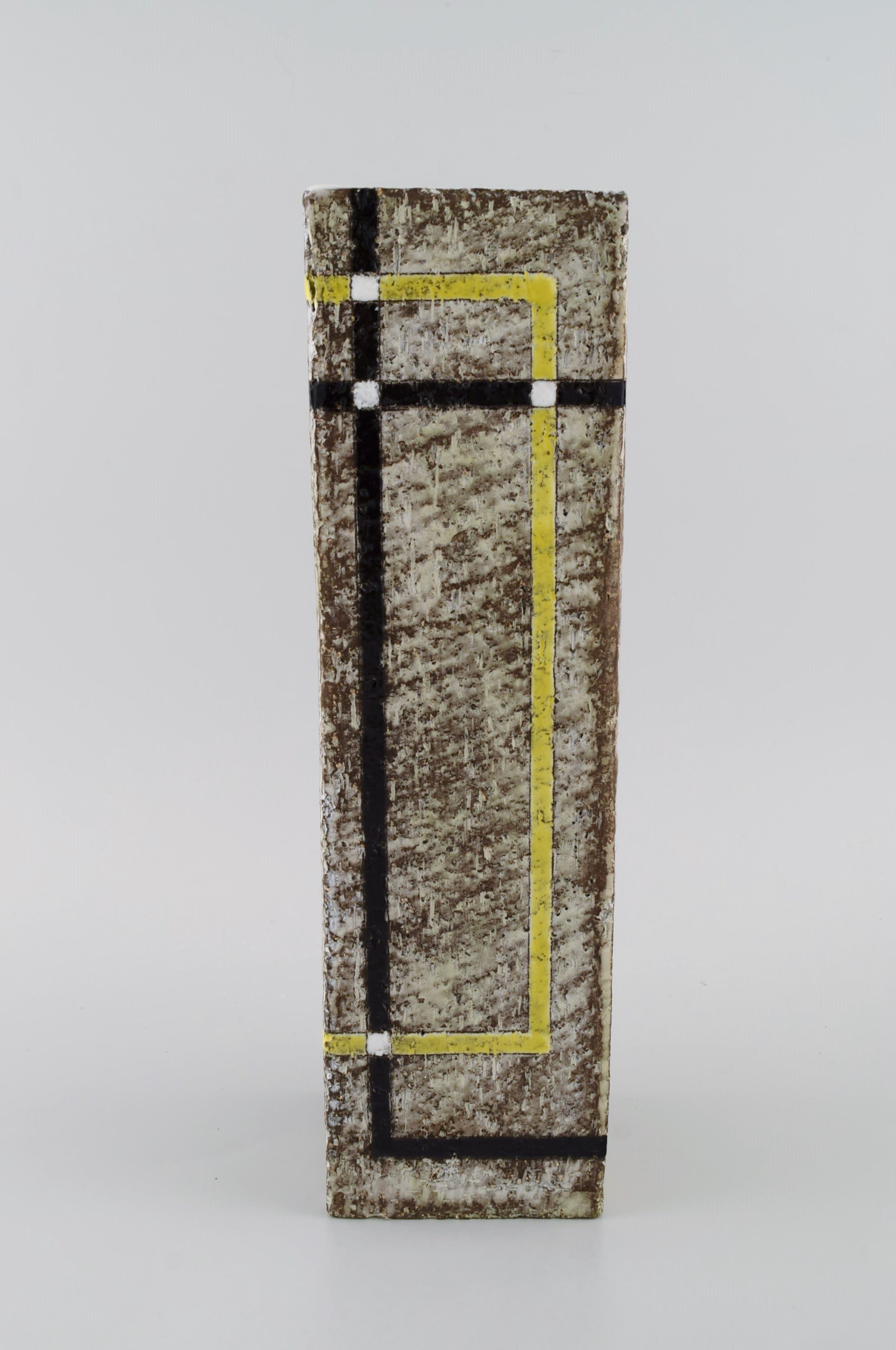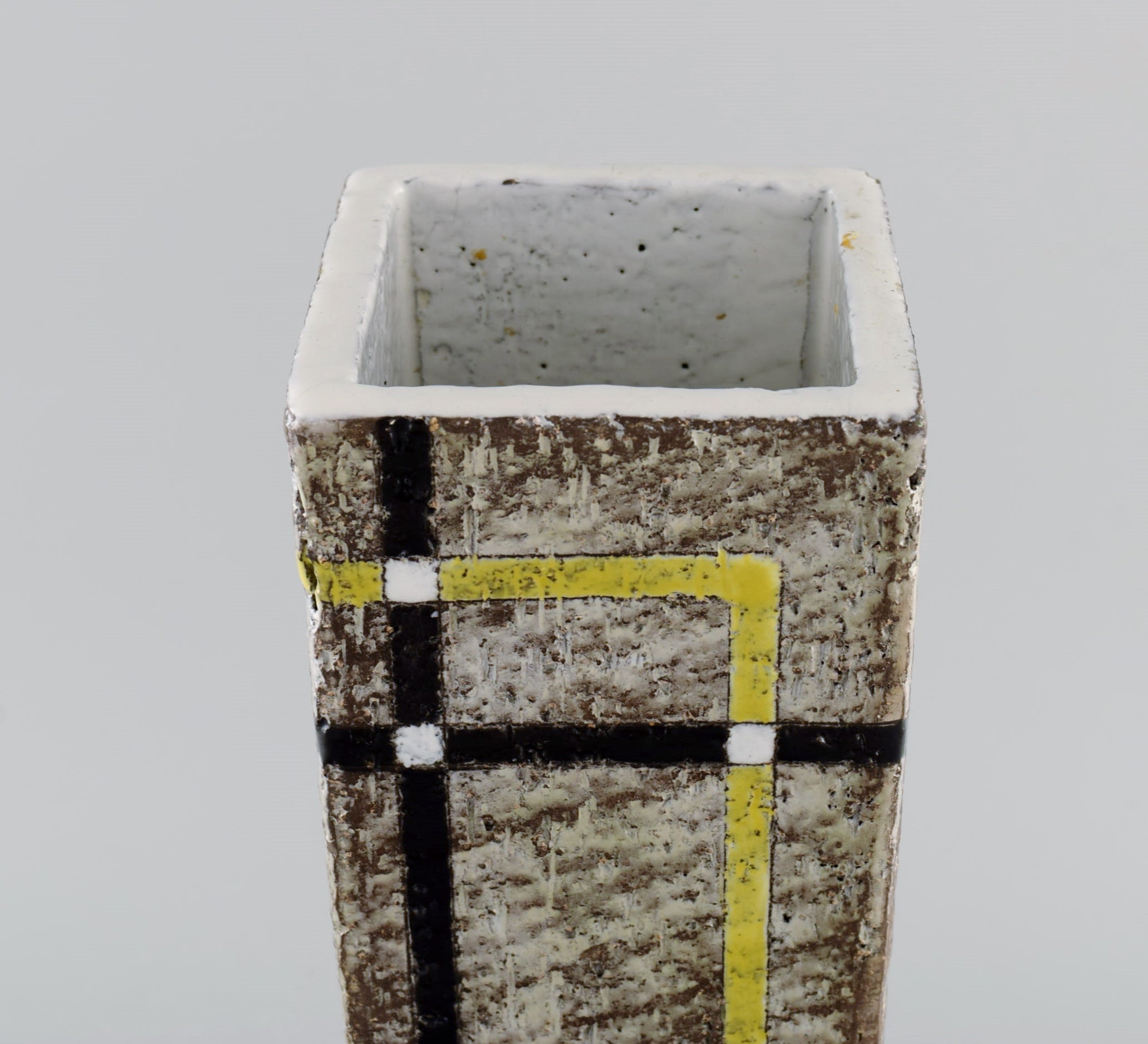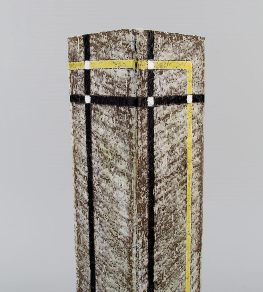 Ingrid Atterberg (1920-2008) for Upsala-Ekeby. Rare square vase in glazed stoneware with hand-painted abstract motif. 1960s.