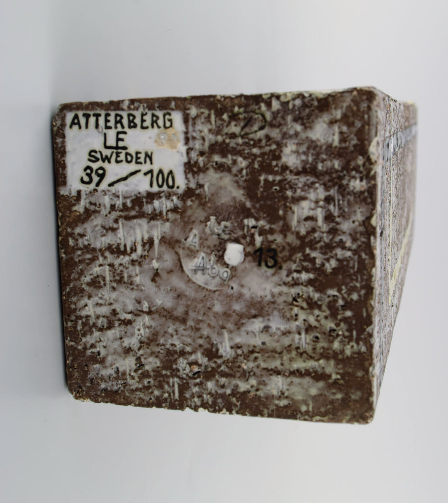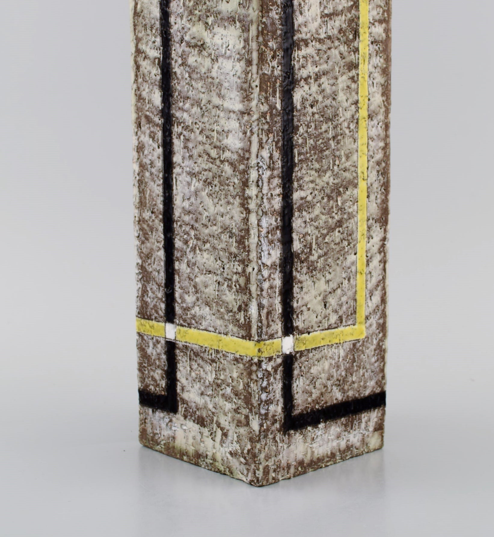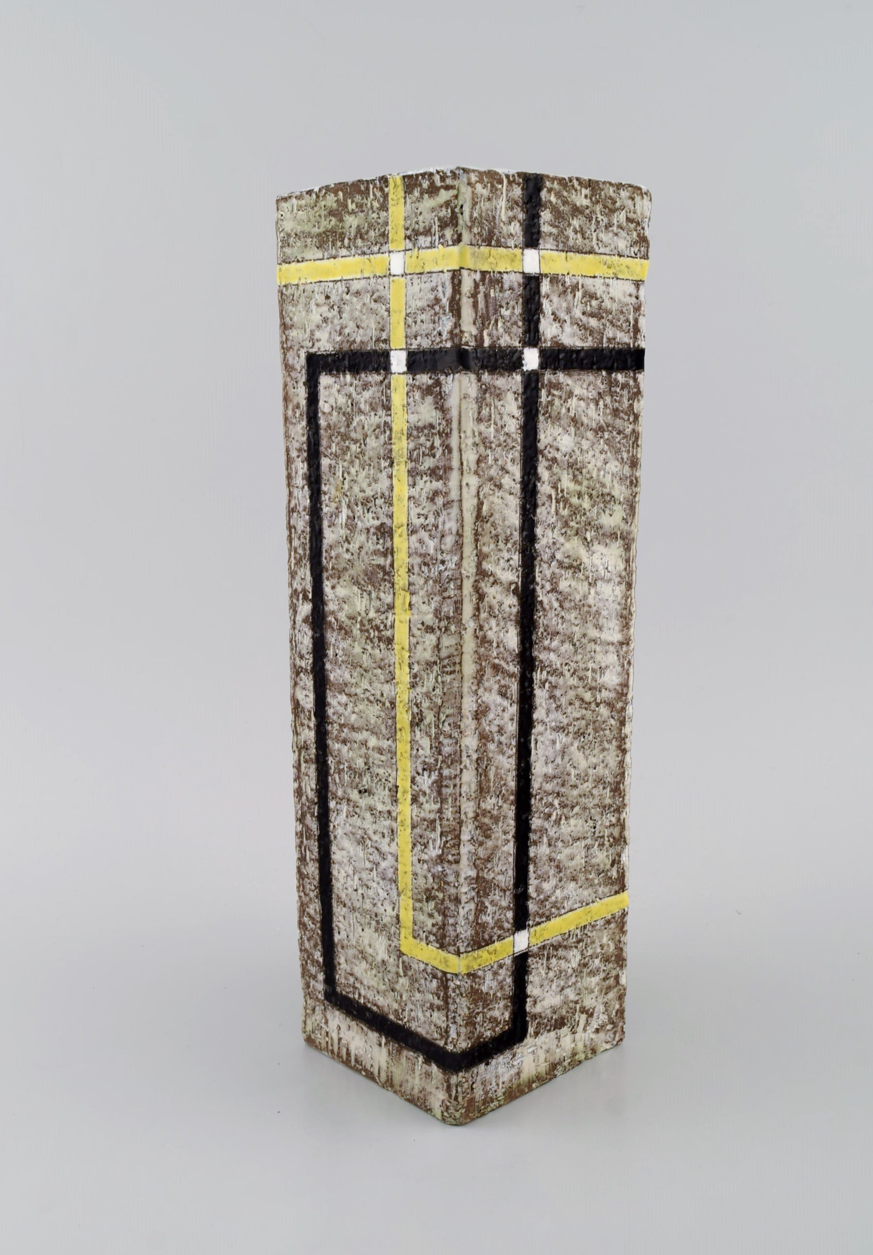 Ingrid Atterberg (1920-2008) for Upsala-Ekeby. Rare square vase in glazed stoneware with hand-painted abstract motif. 1960s.