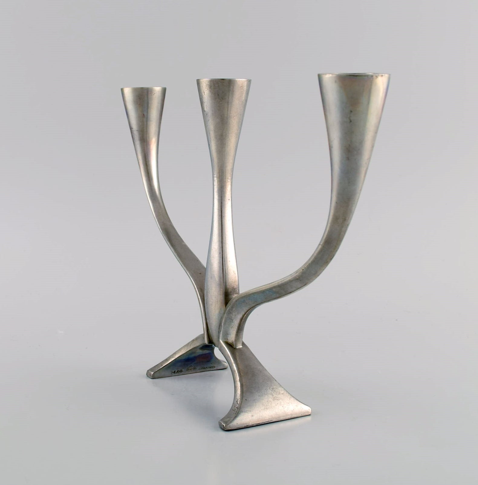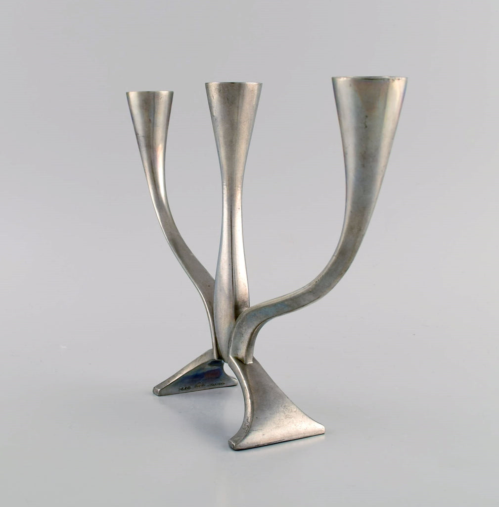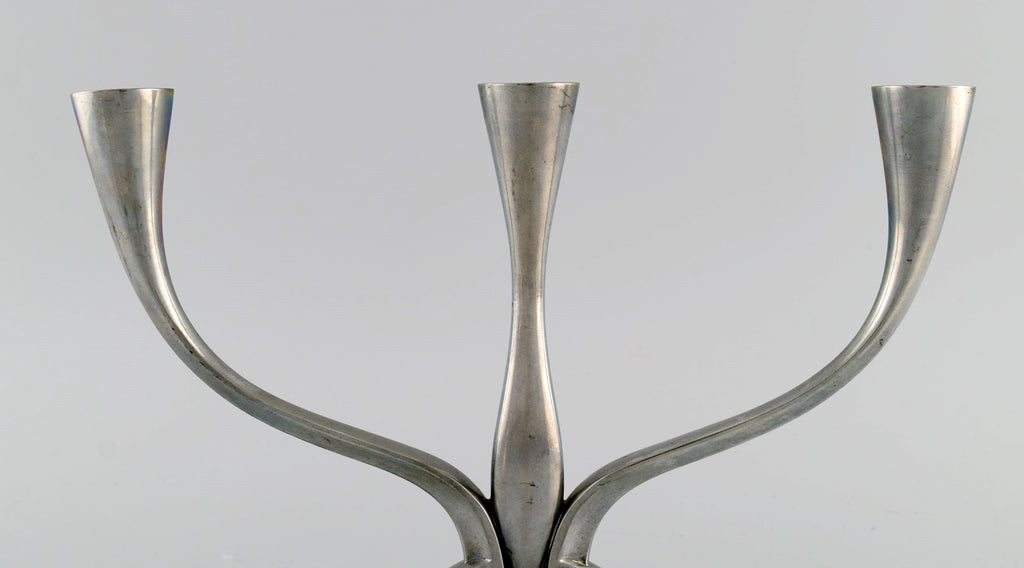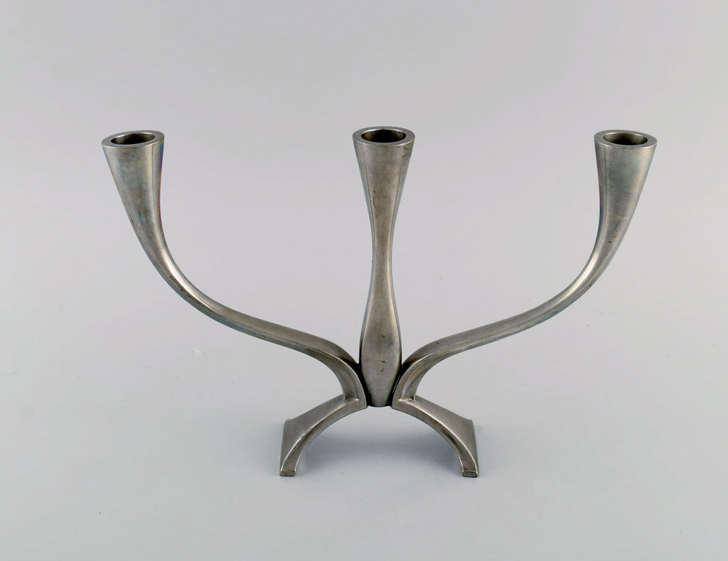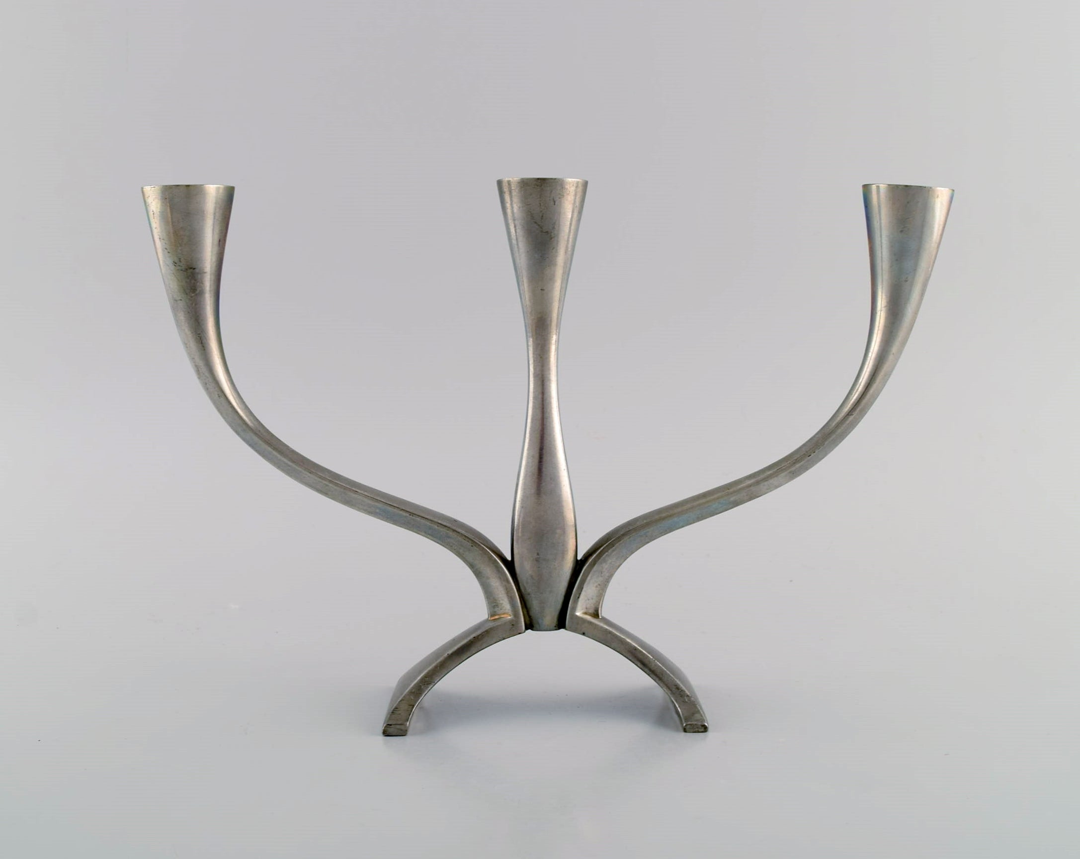 Just Andersen. Rare three armed candlestick in pewter. 1940s / 50s. Model number 2696.