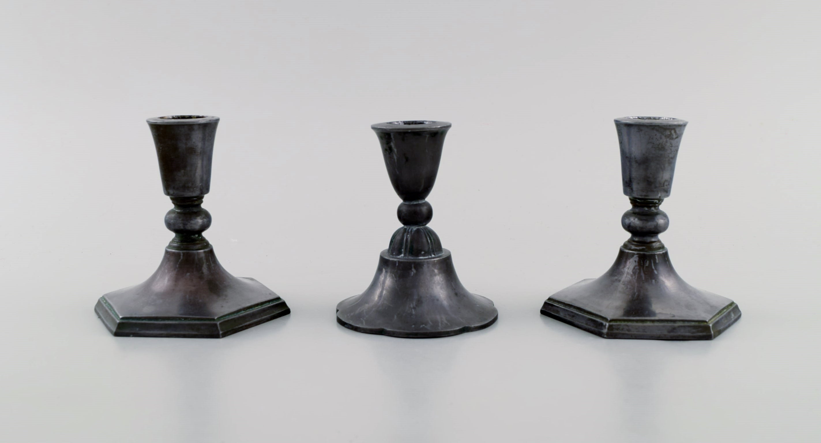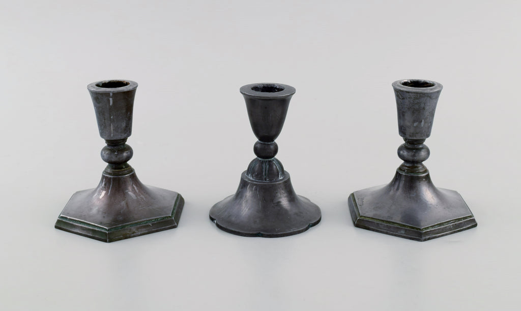 Just Andersen. Three candlesticks in disko metal. 1940s.