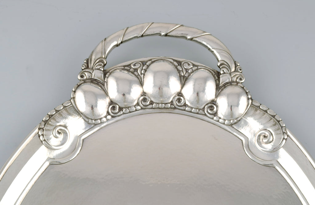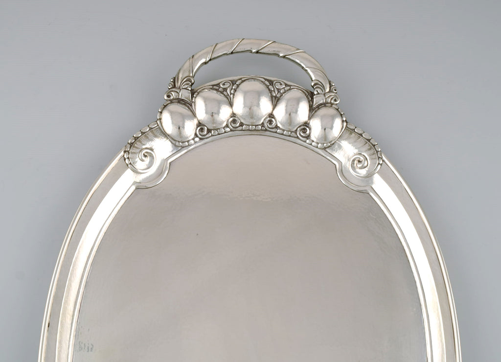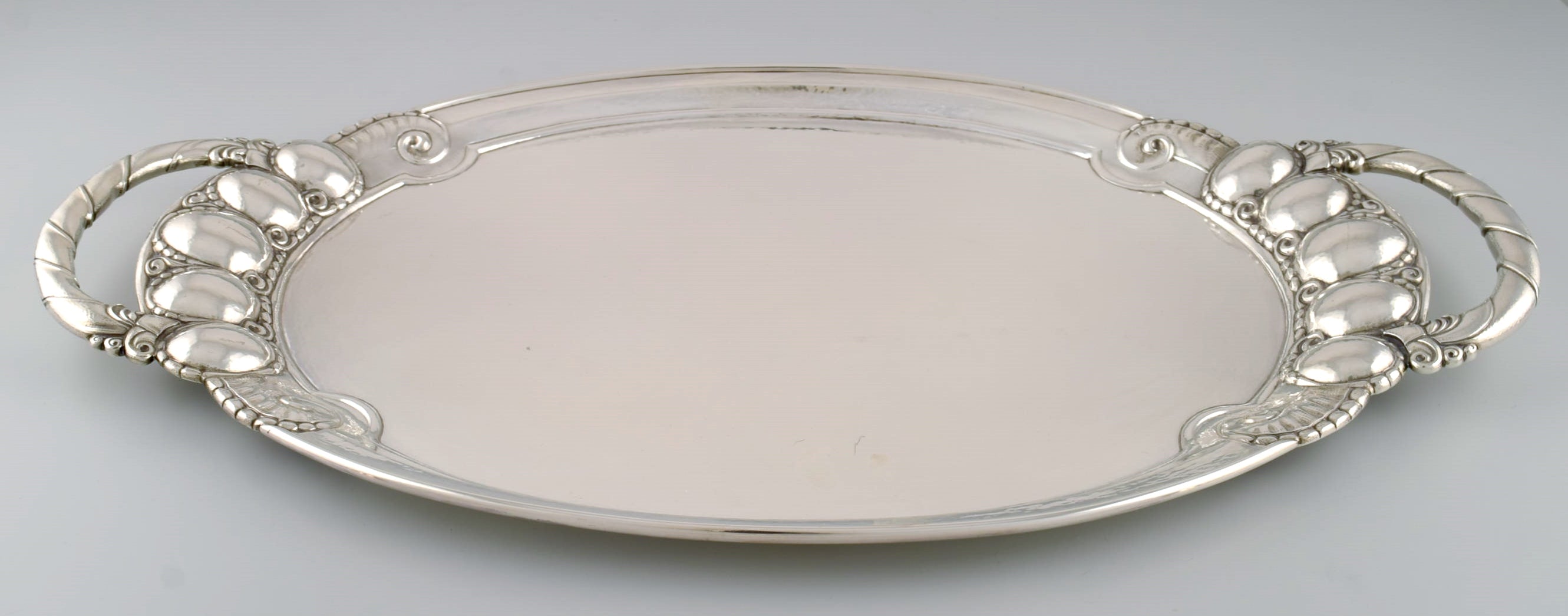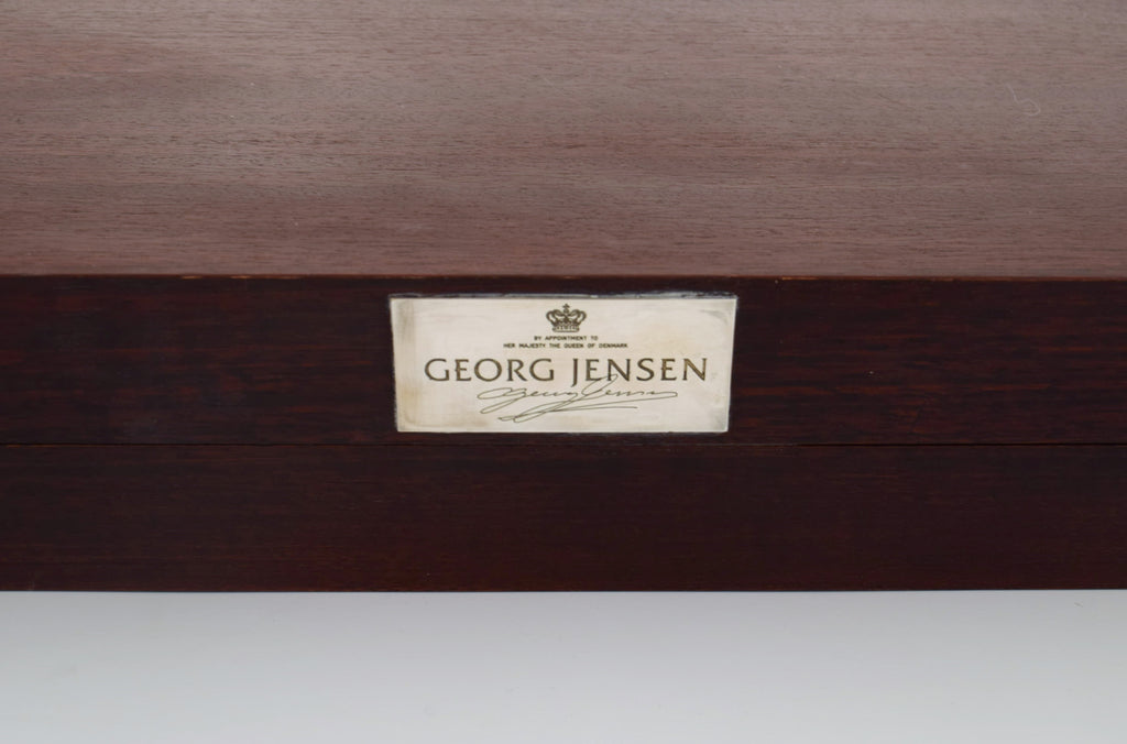 Large Georg Jensen "Melon" serving platter in sterling silver. Model number 159B. In a mahogany case from Georg Jensen.