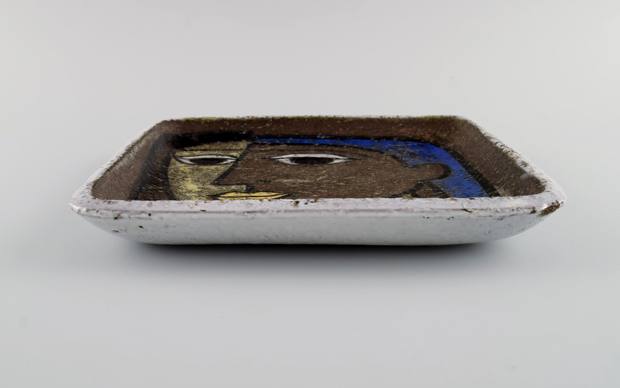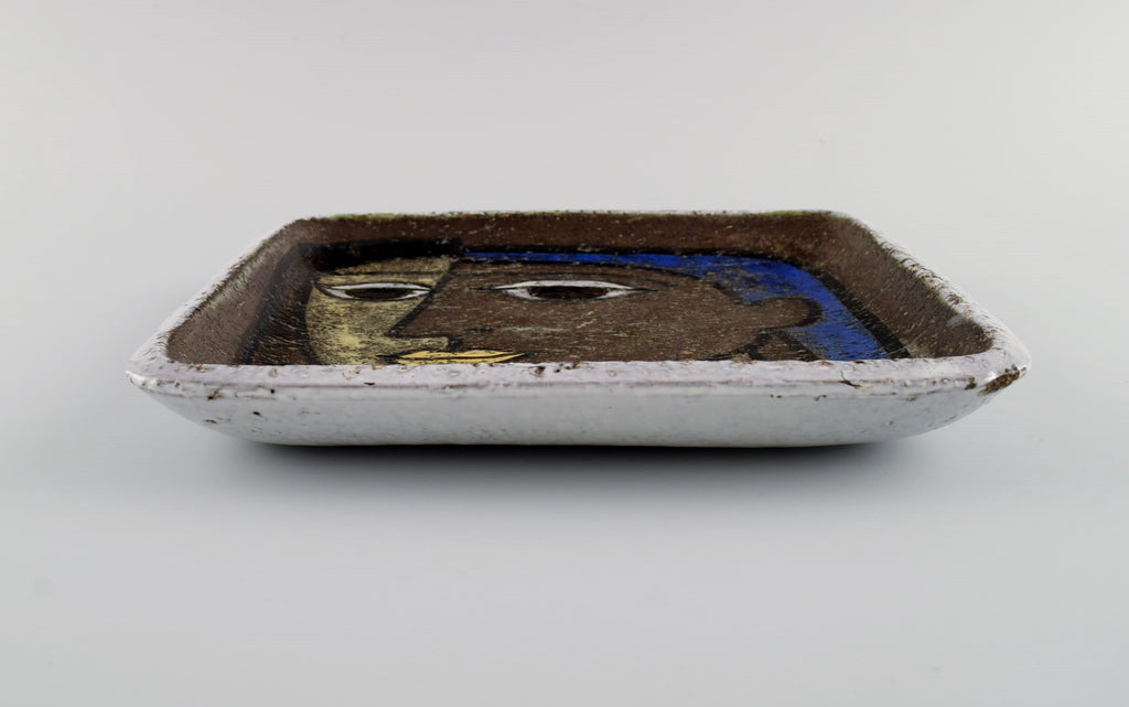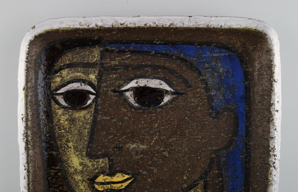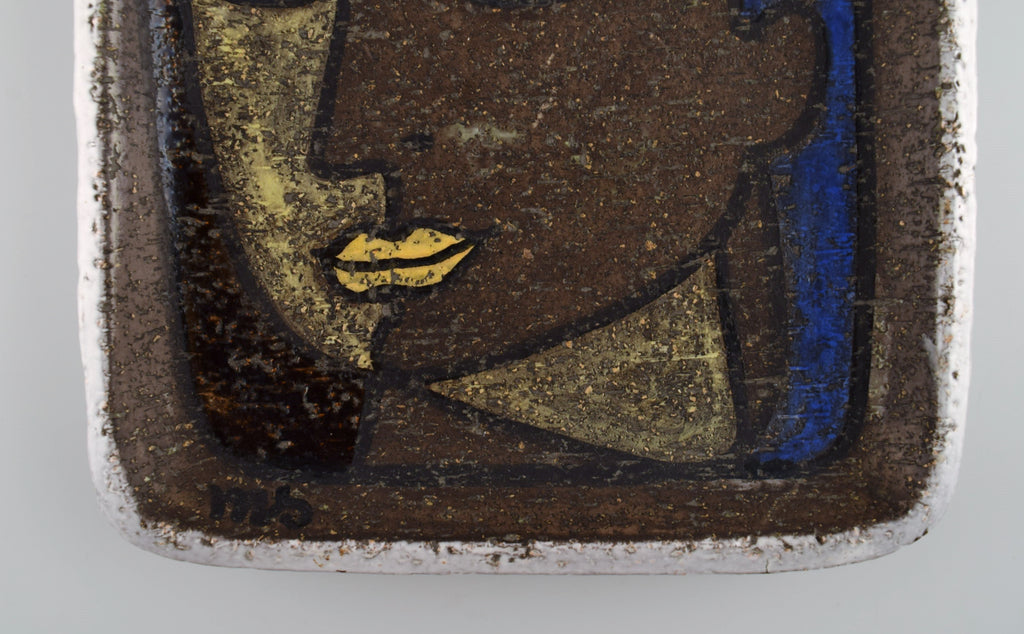 Mari Simmulson (1911-2000) for Upsala-Ekeby. Dish in glazed stoneware with hand-painted female portrait. Mid-20th century.