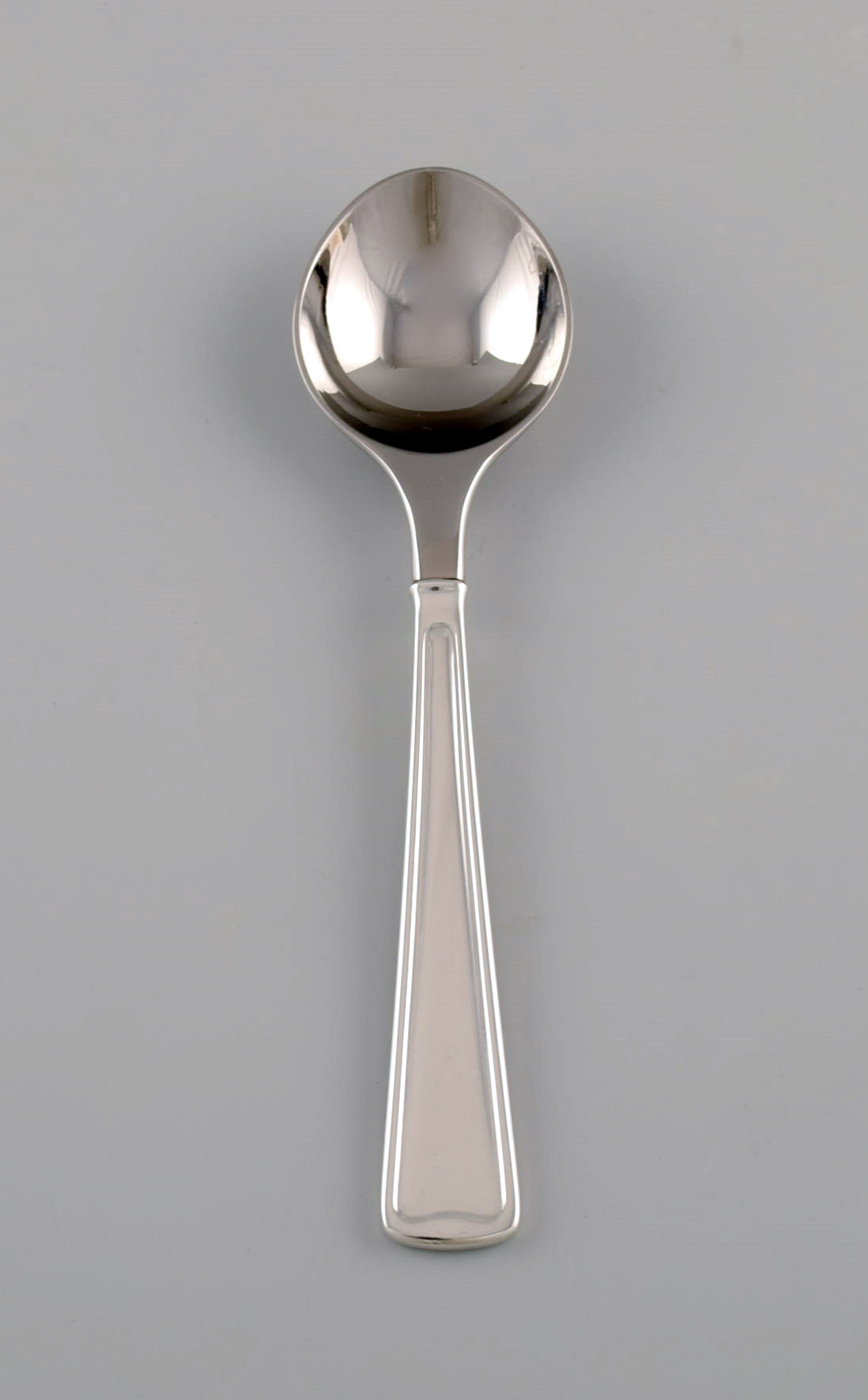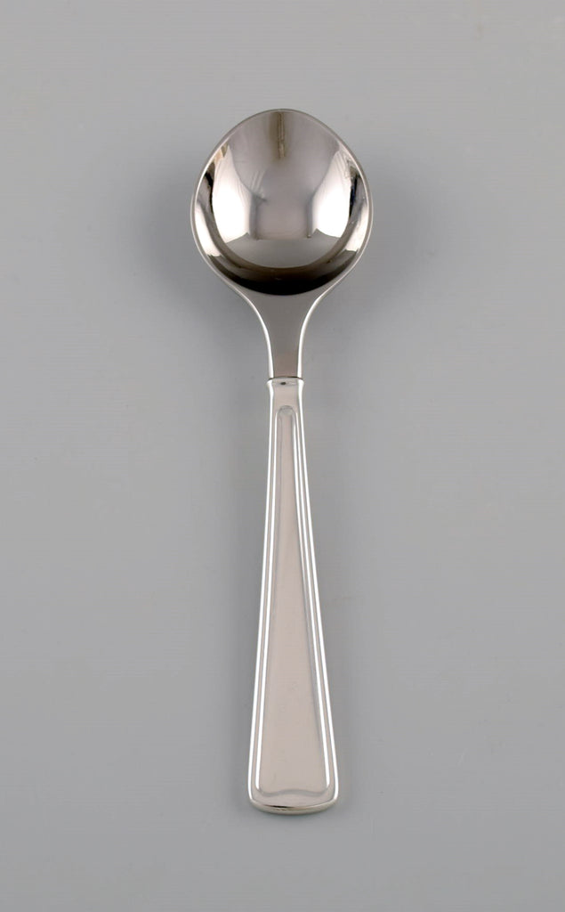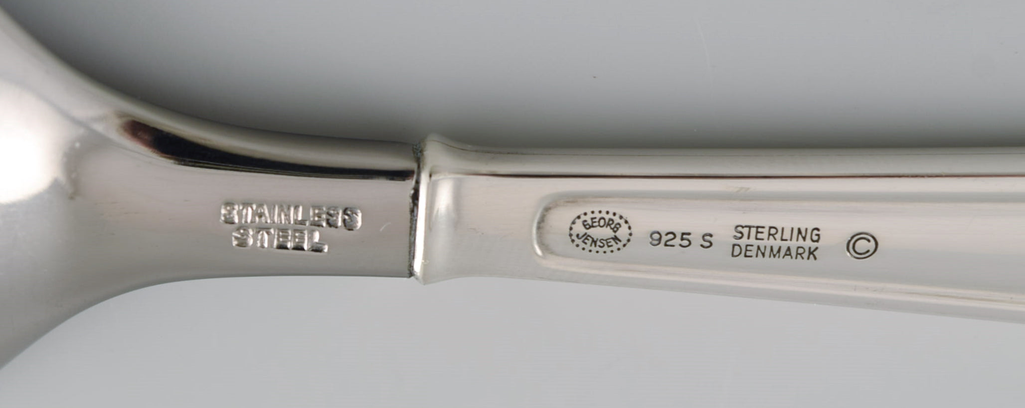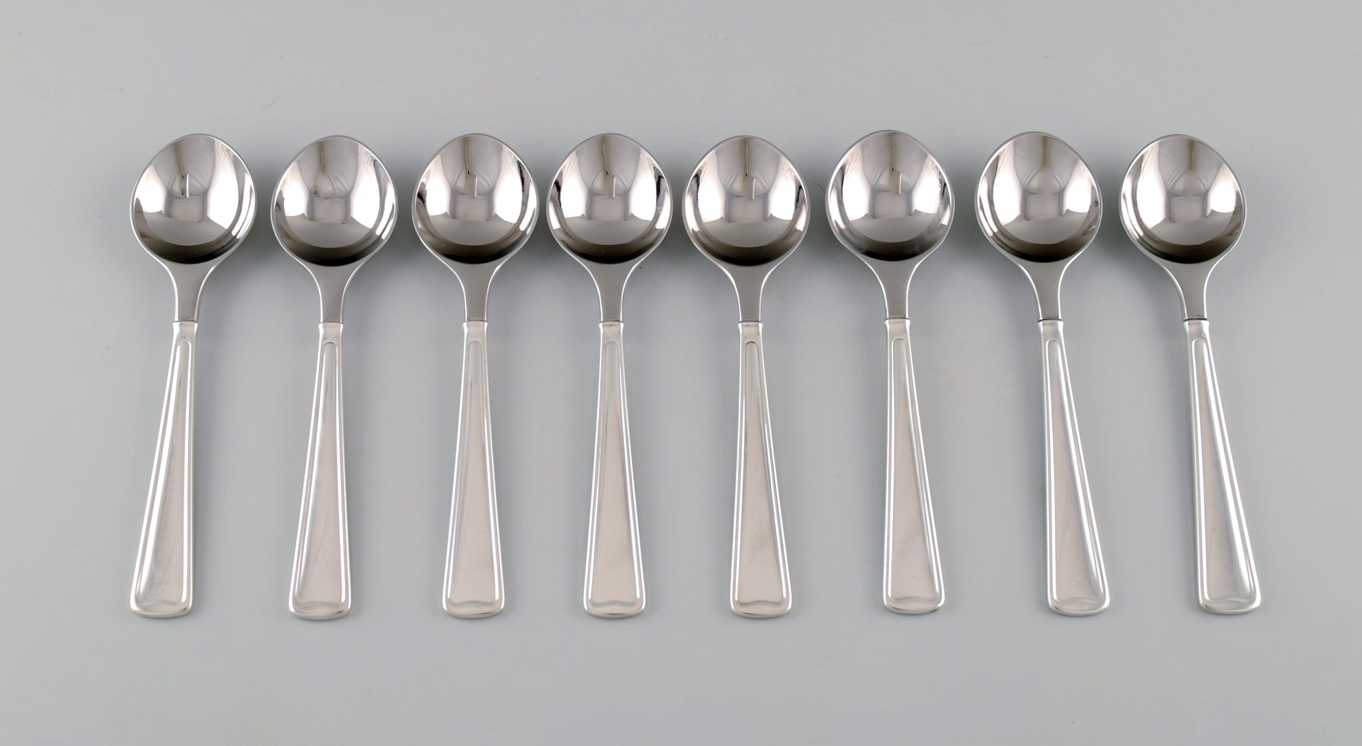 Rare Georg Jensen Koppel cutlery. Eight sorbet spoons in sterling silver and stainless steel.