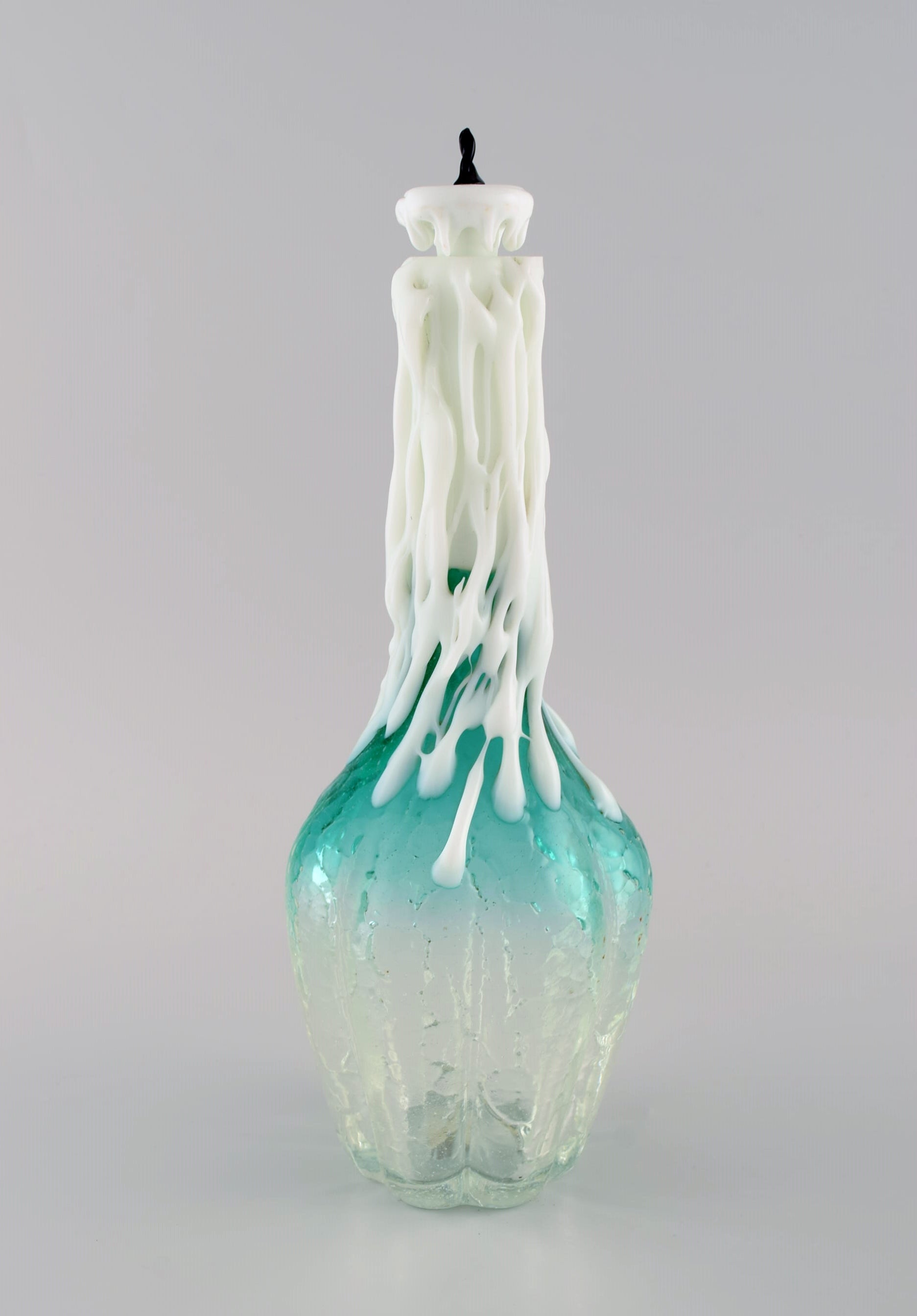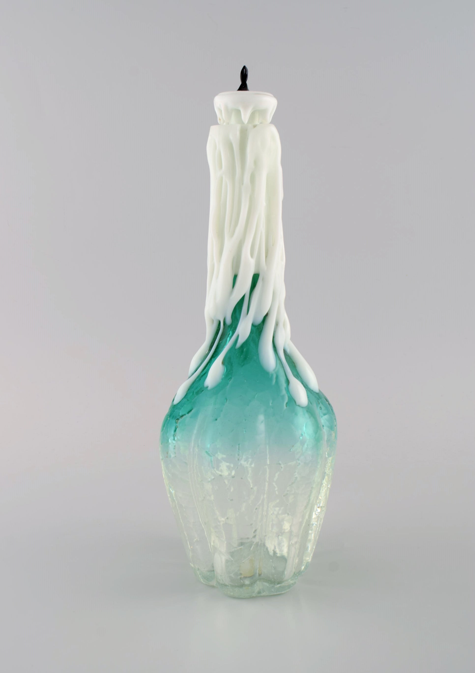 Rare Murano decanter in mouth blown art glass shaped like a candle in a bottle. Italian design, 1960s / 70s.