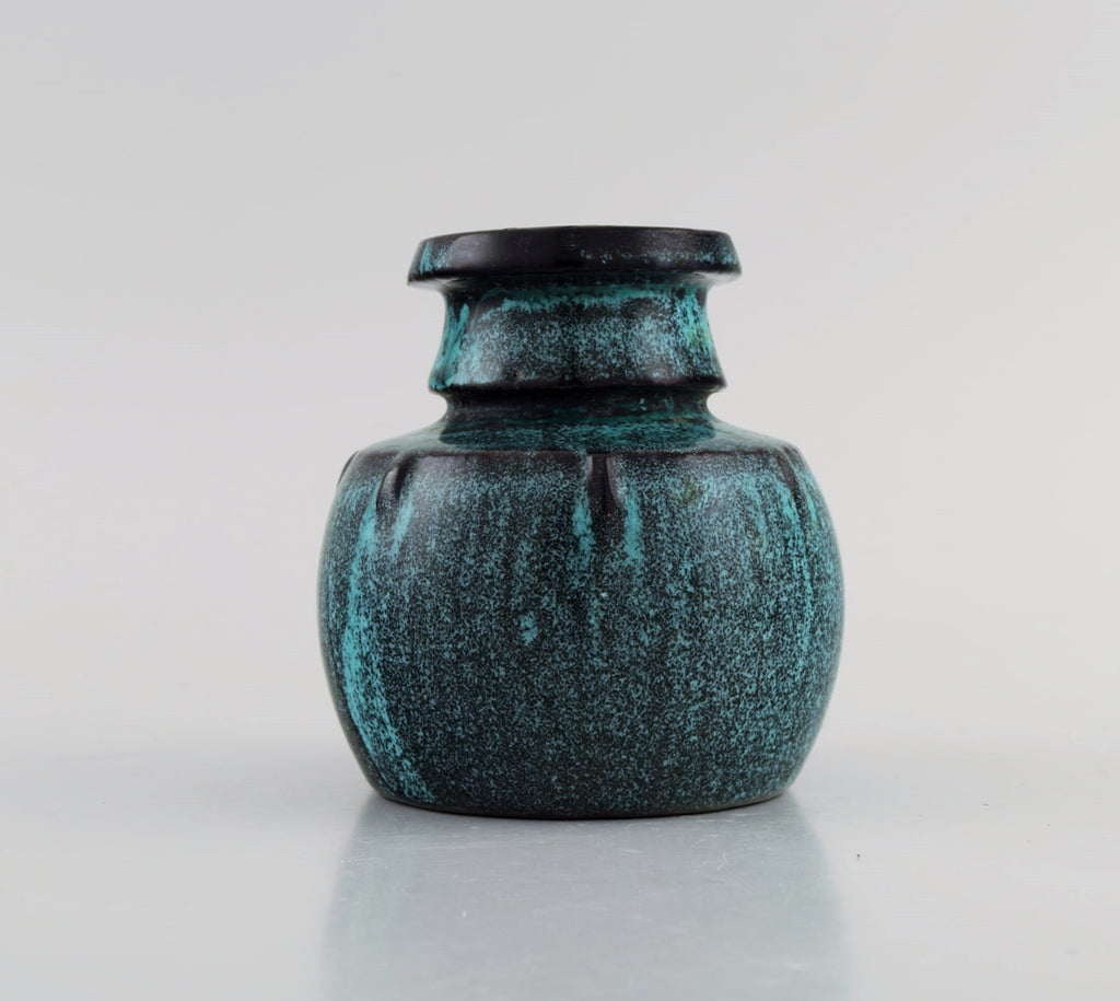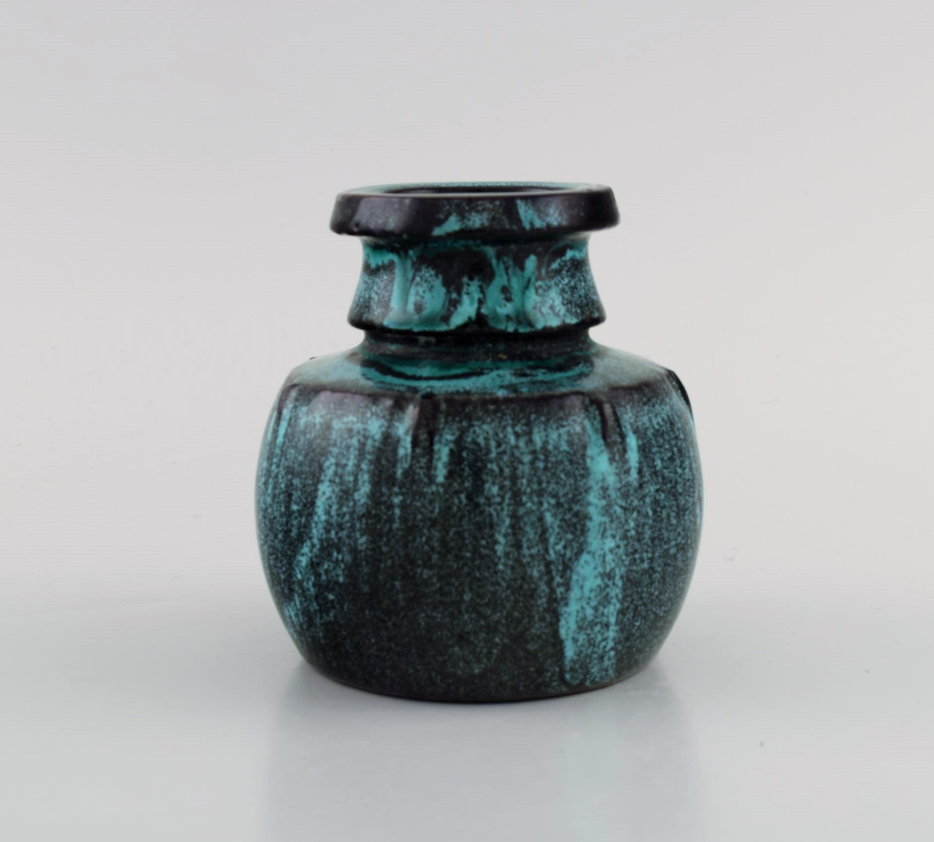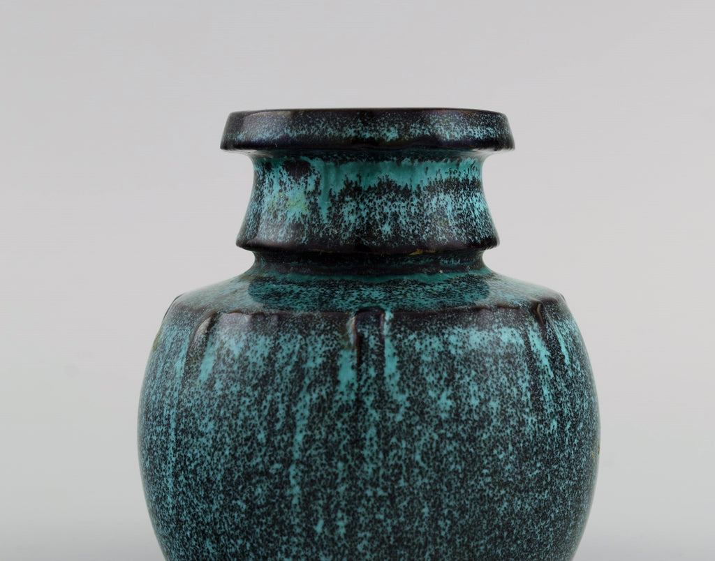 Svend Hammershøi for Kähler, Denmark. Vase in glazed stoneware. Beautiful black-green double glaze. 1930s / 40s.