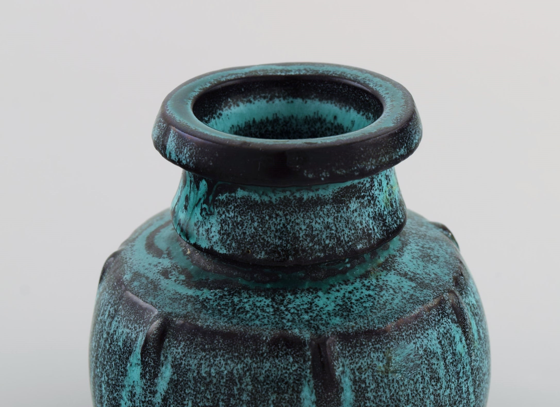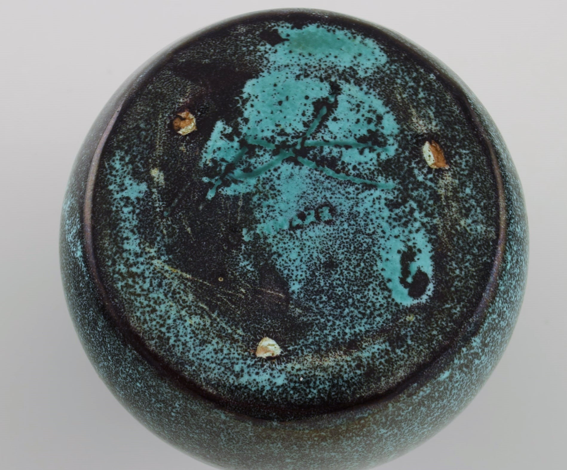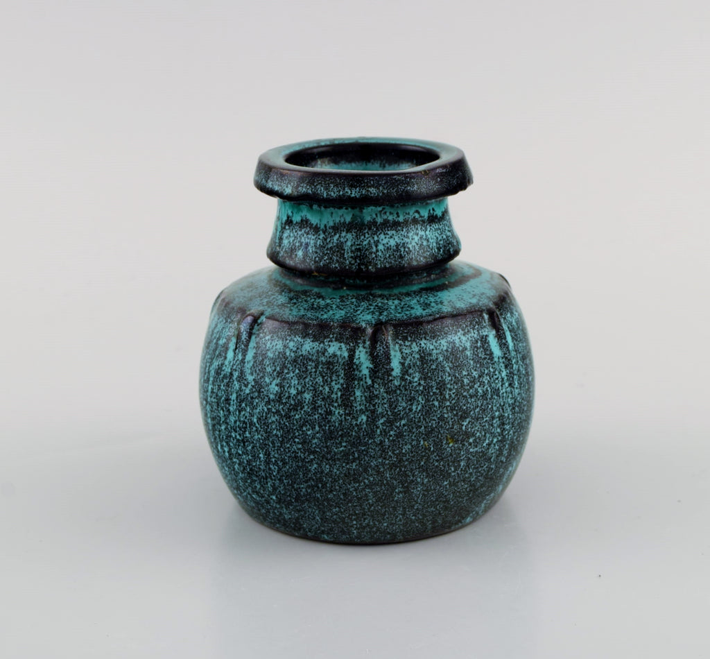 Svend Hammershøi for Kähler, Denmark. Vase in glazed stoneware. Beautiful black-green double glaze. 1930s / 40s.