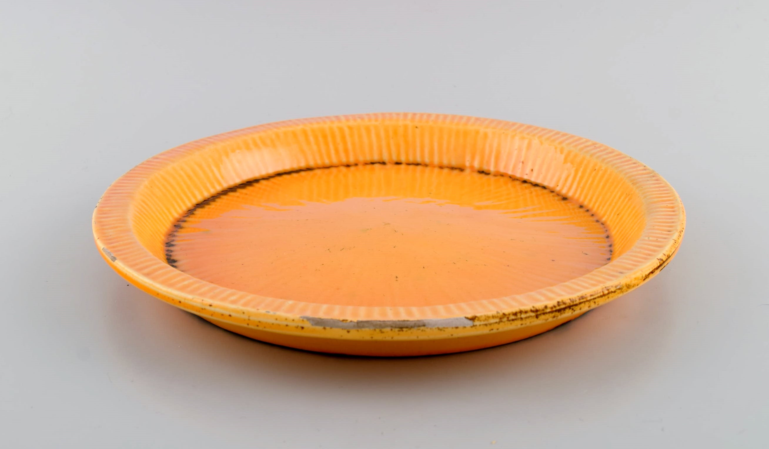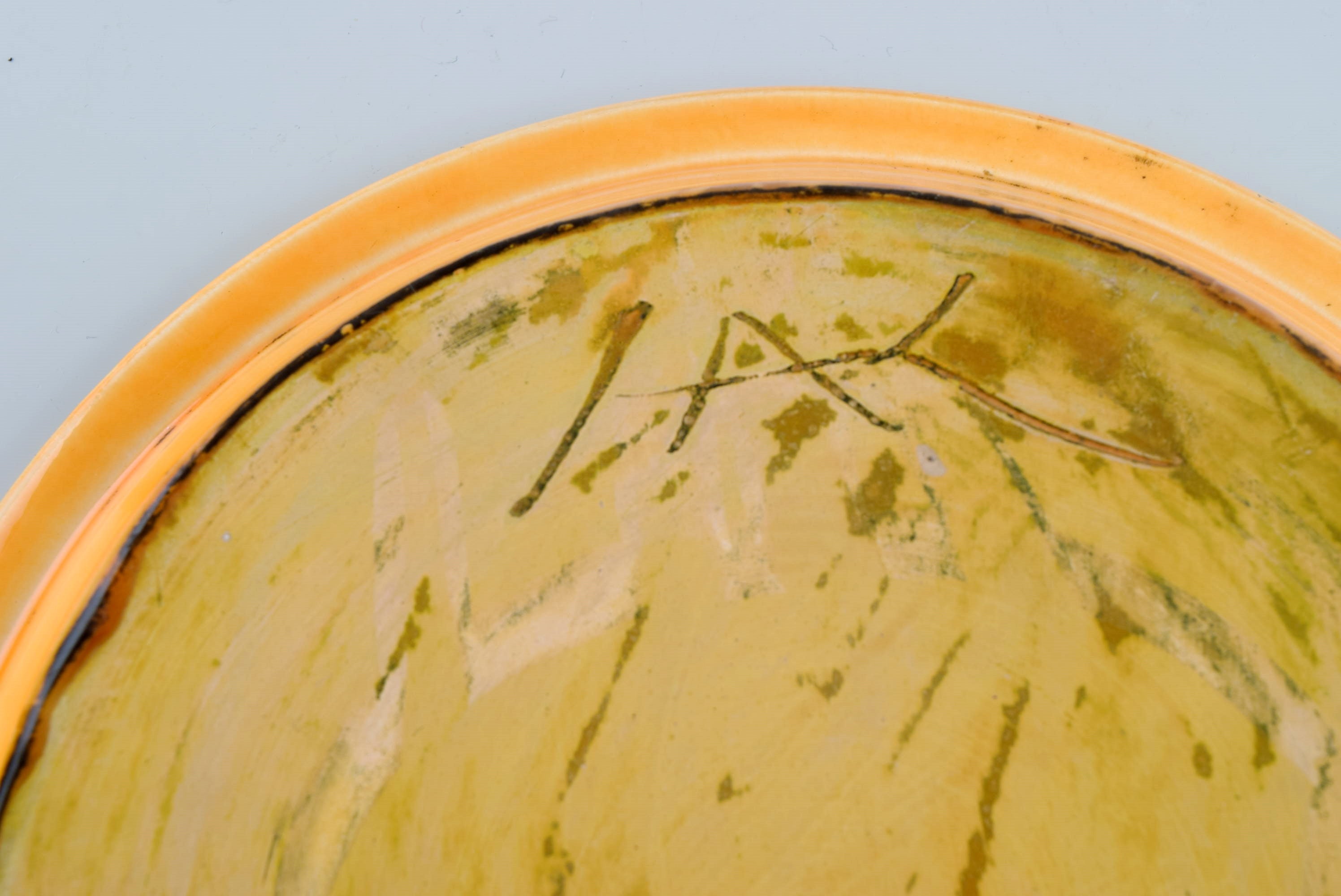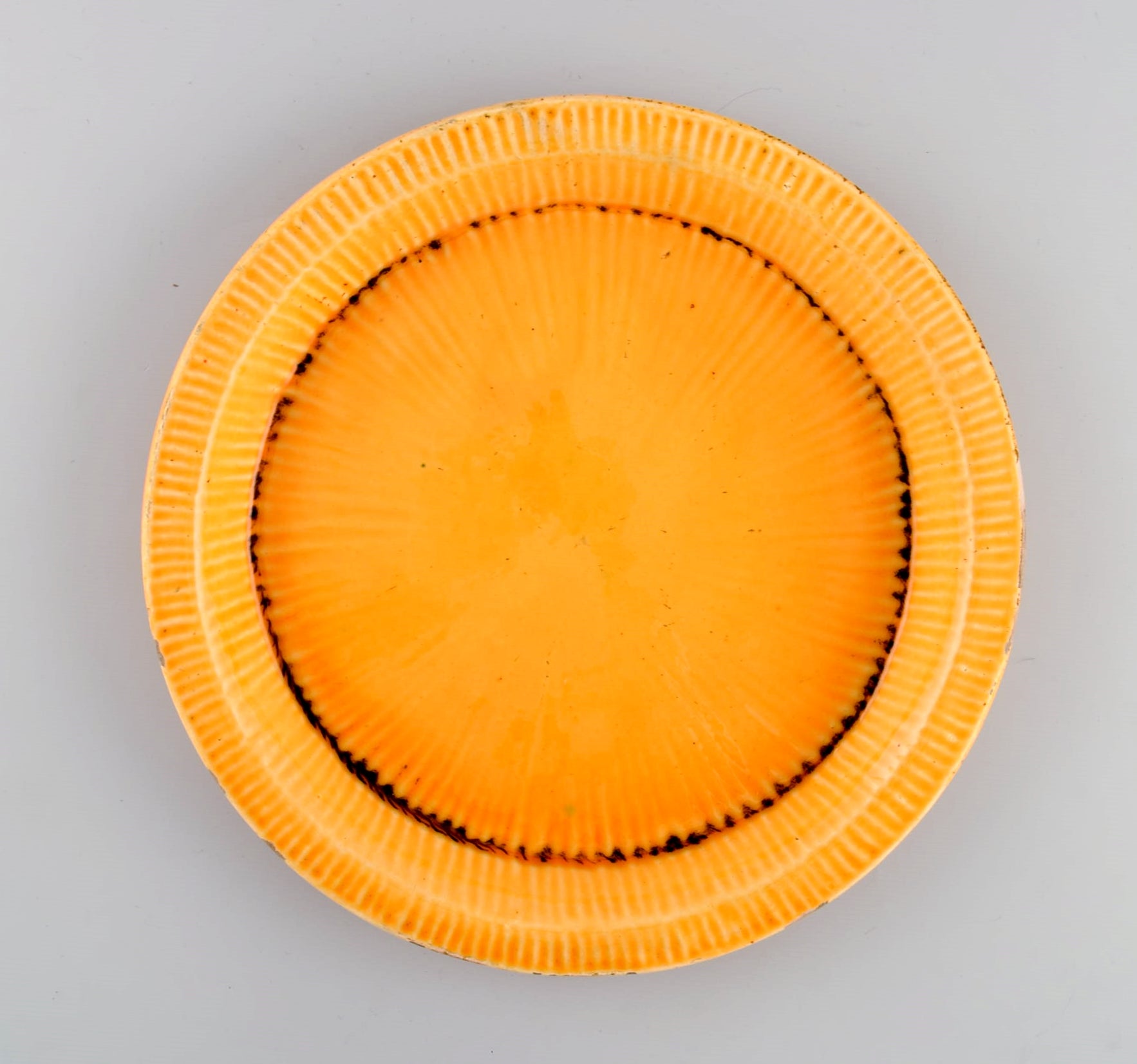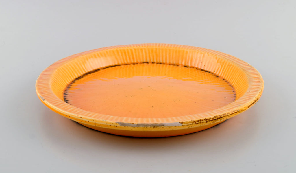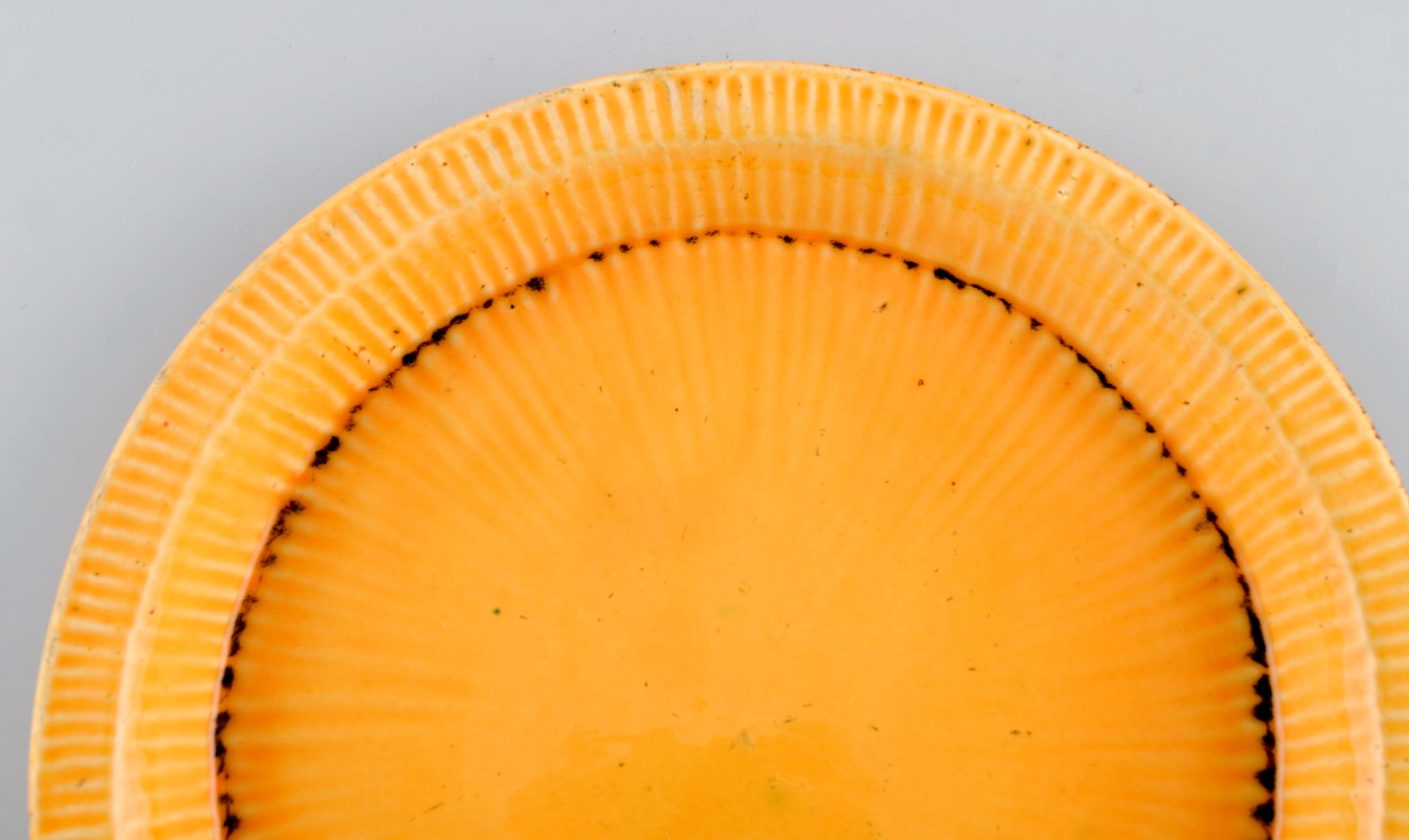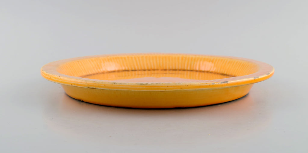 Svend Hammershøi for Kähler, HAK. Fluted dish in glazed stoneware. Beautiful yellow uranium glaze. 1930s / 40s.