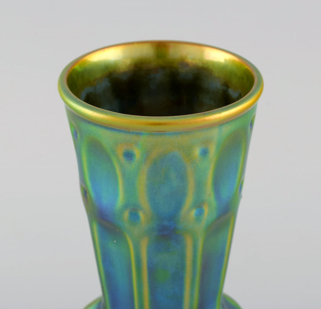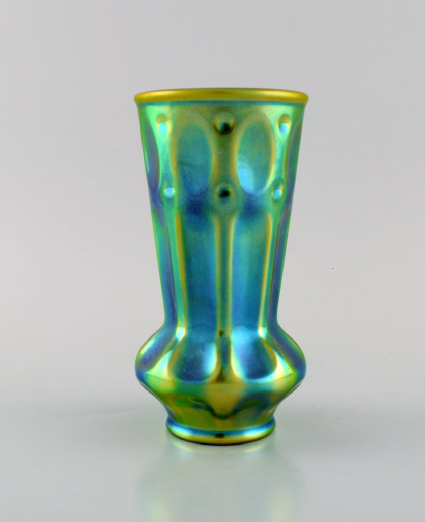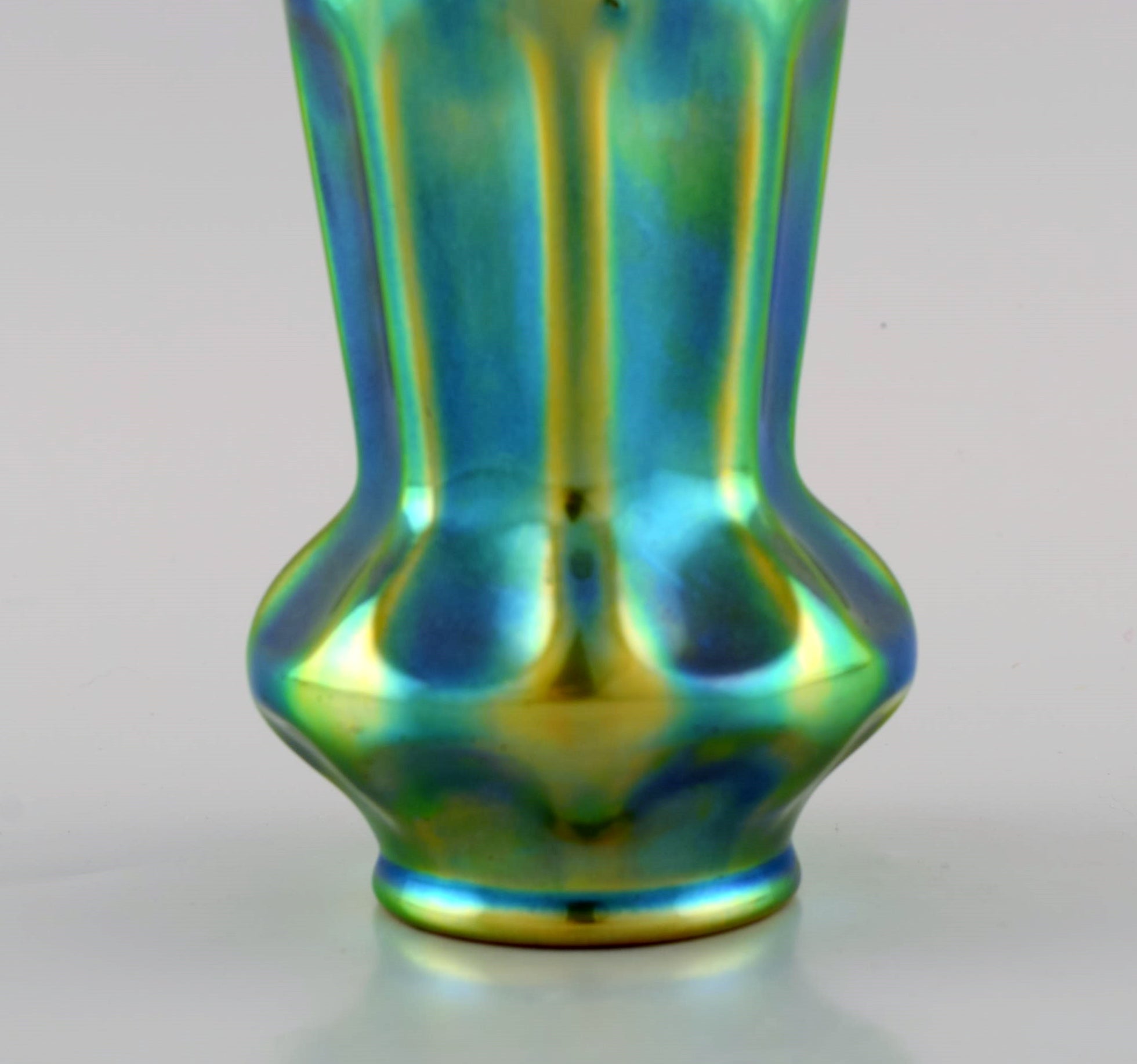 Zsolnay art deco vase in glazed ceramics. Beautiful luster glaze. 20th century.