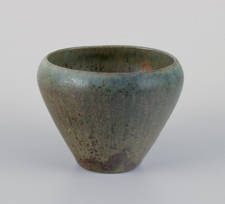 Carl Harry Stålhane for Rörstrand, small narrow-necked ceramic vase with glaze in green-brown tones.