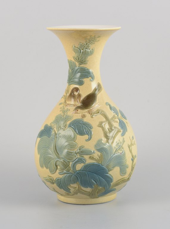 Lladro, Spain, large porcelain vase with flowers and birds in relief.
