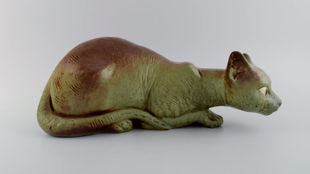 Lladro, Spain. Large and rare sculpture in glazed ceramics. Lying cat. 1960s.